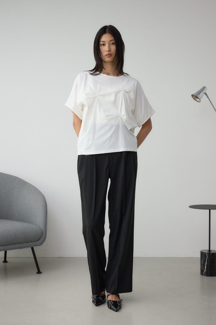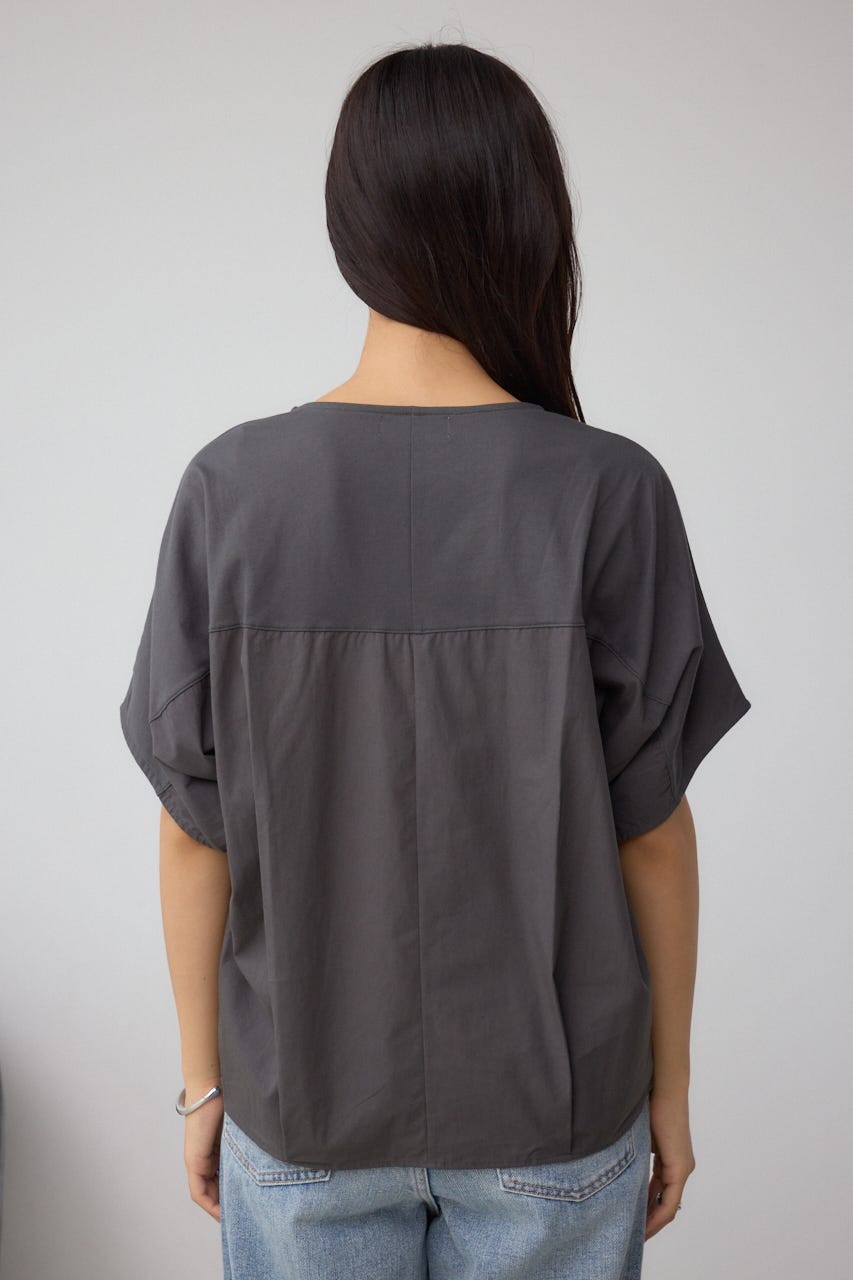 落ち感と柔らかさのある天竺とマットな布帛を使用。