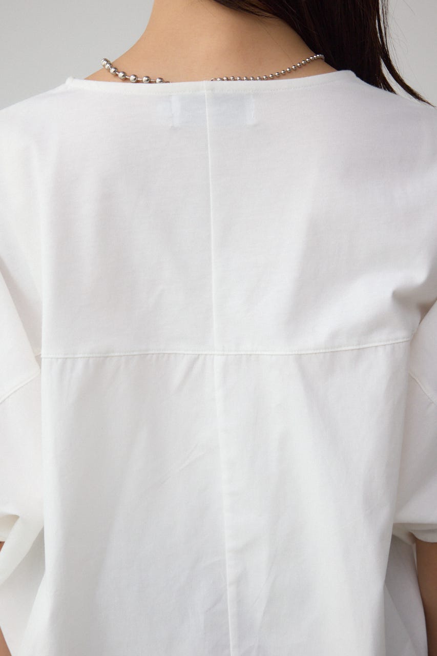 異素材をドッキングすることで高級感と存在感のあるトップスです。