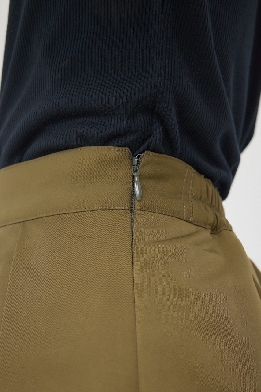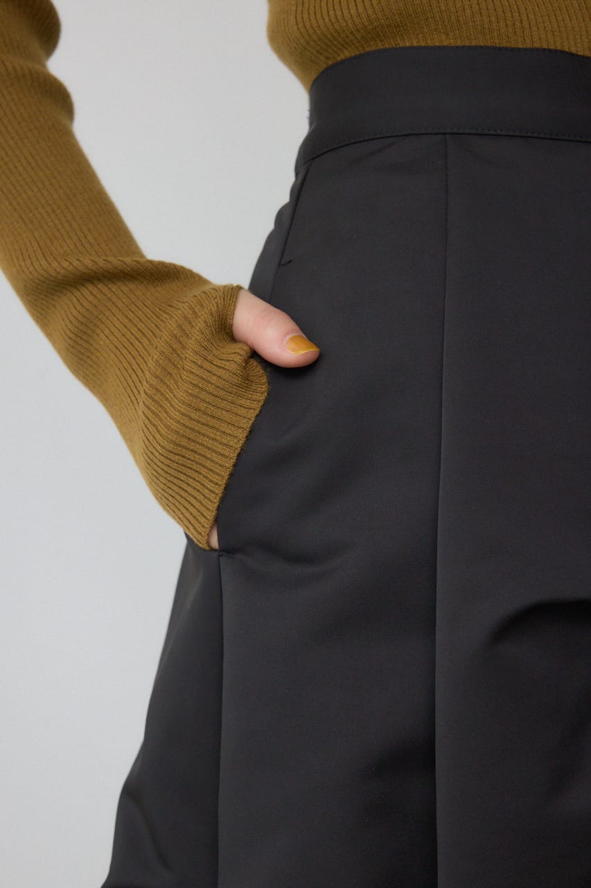 タックのディテールが立体感を生み出し、シンプルなトップスとも合わせやすく、コーディネートに独特のアクセントを加えます。