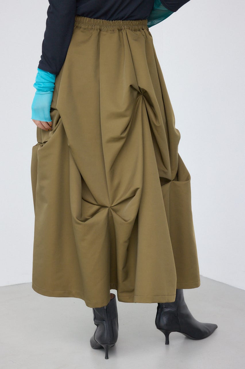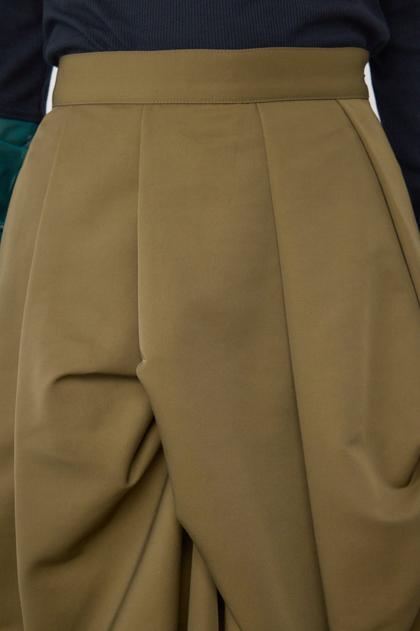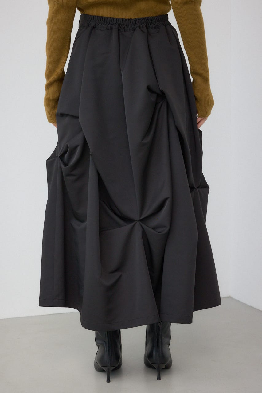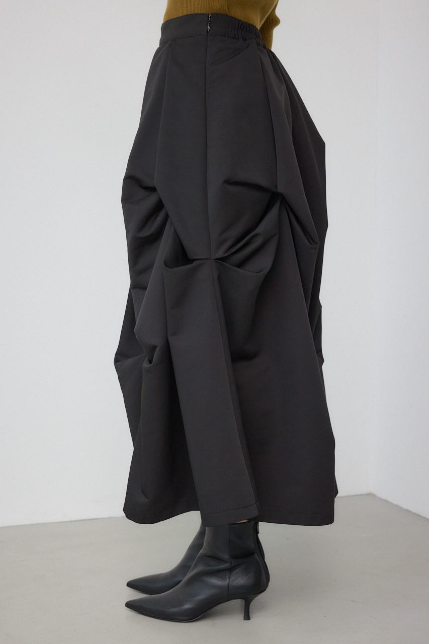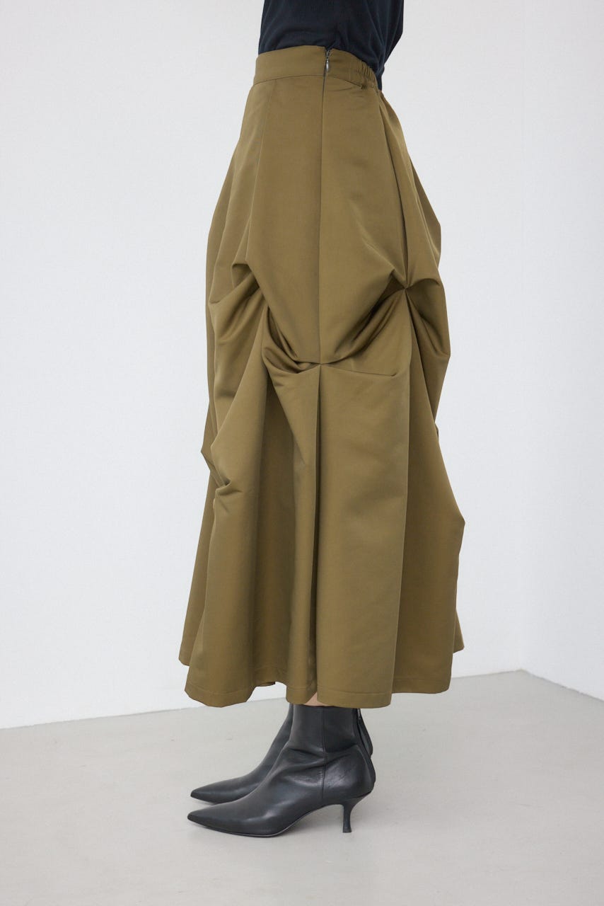 ランダムに入ったタックと軽やかなドレープが、独特の動きのあるデザインを作り出したモードなデザインのスカートです。