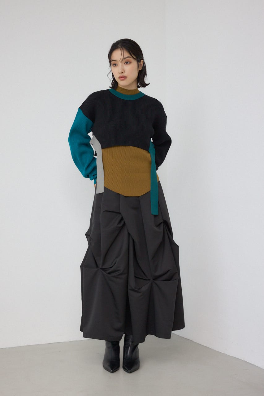 【PLUS】パネルドレープレイヤードセットニット