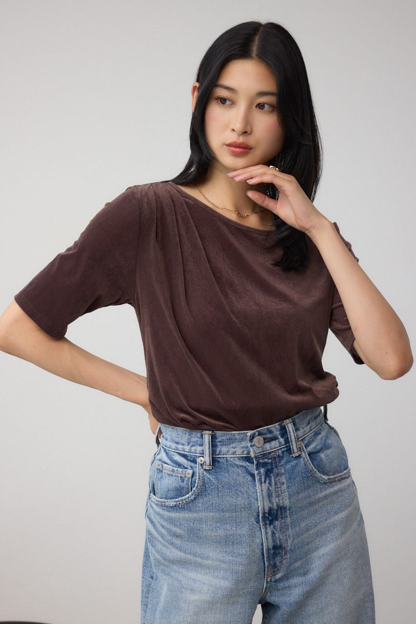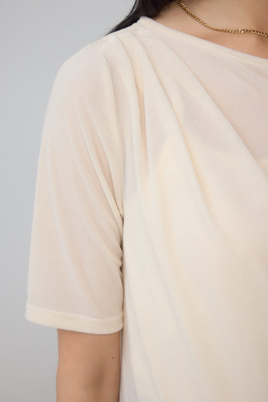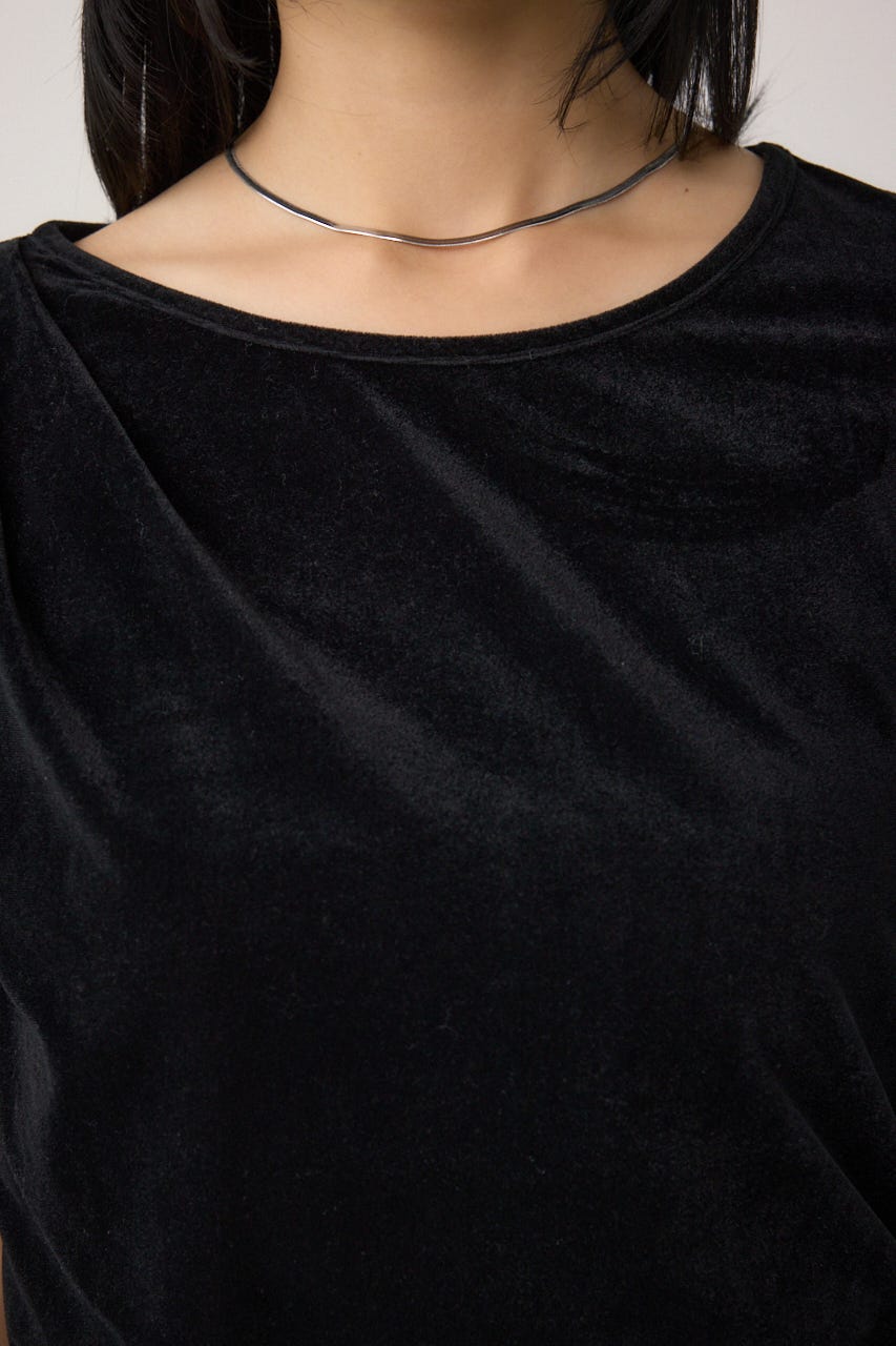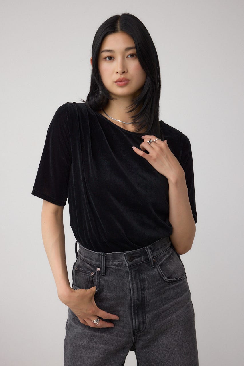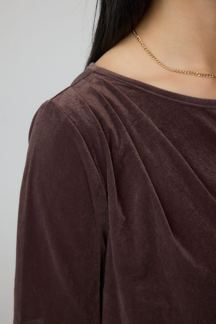 トレンドのベロア素材をトレンドのドレープデザインにしたトップスです。