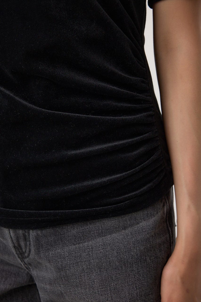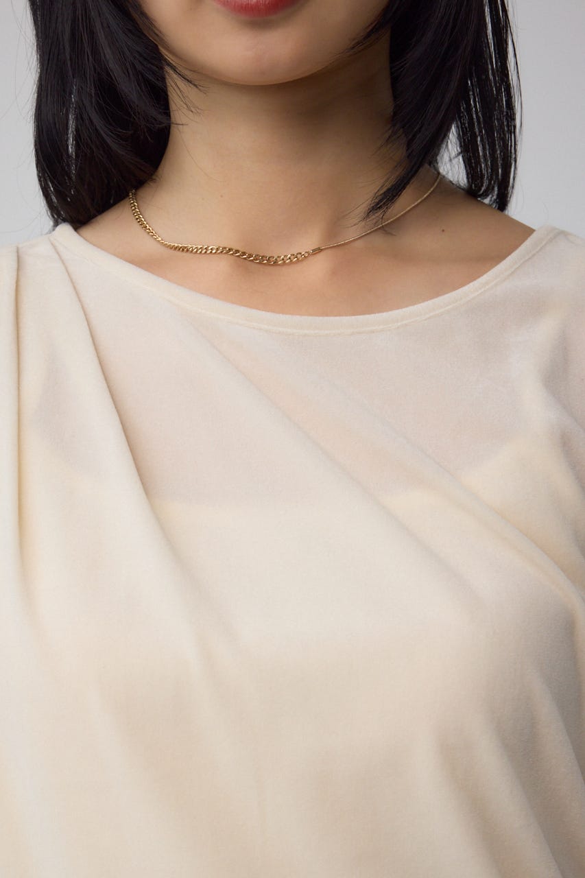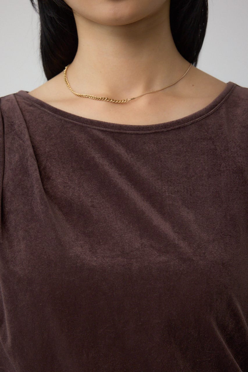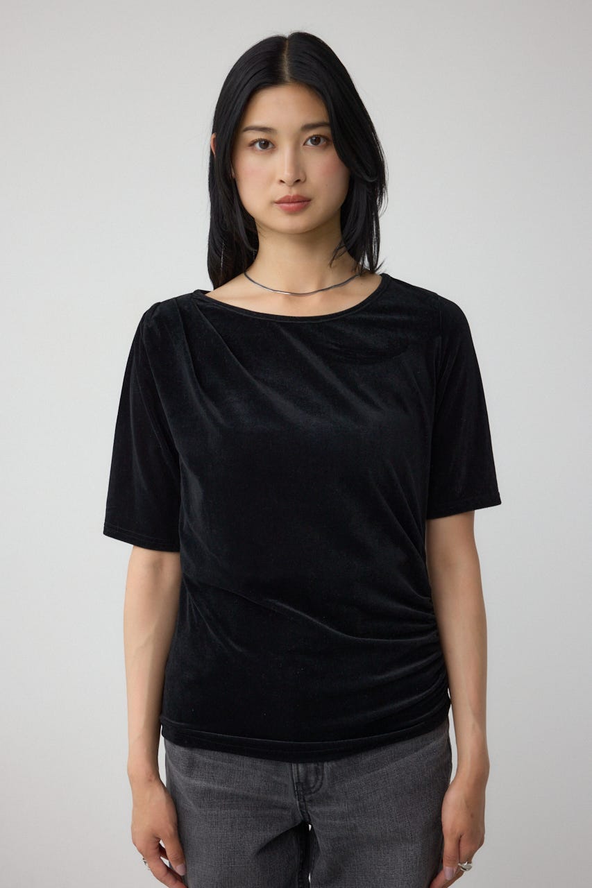 トレンドのベロア素材をトレンドのドレープデザインにしたトップスです。