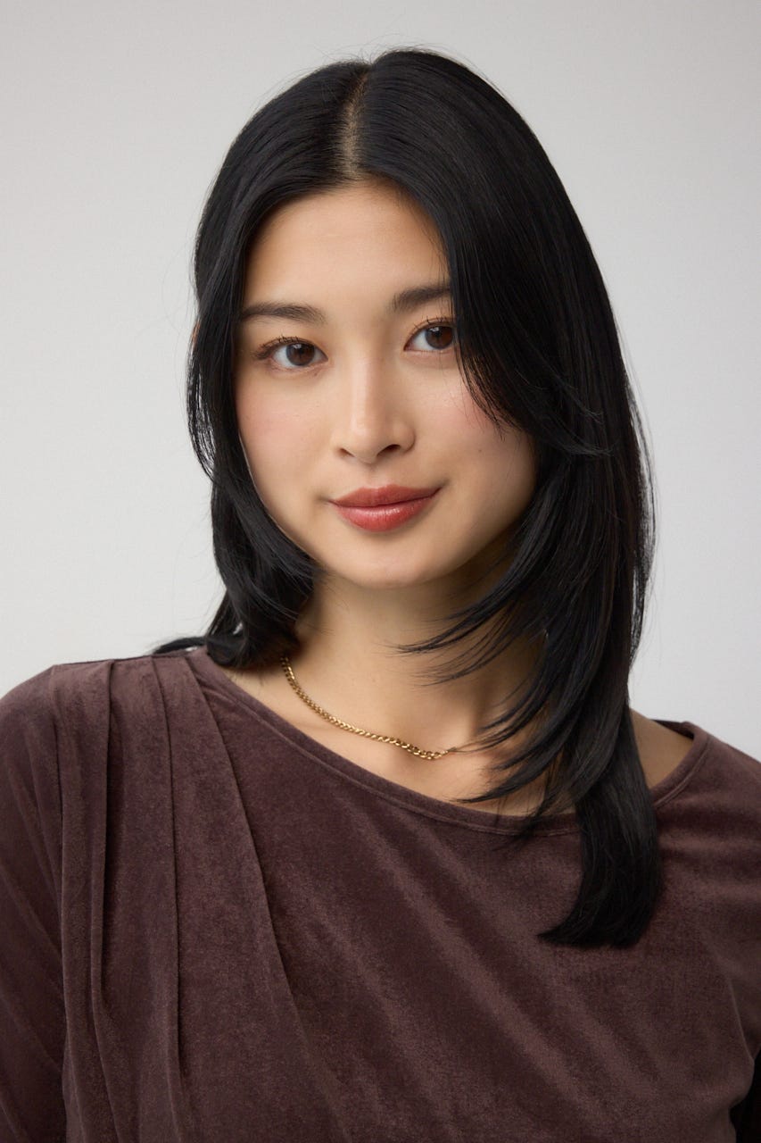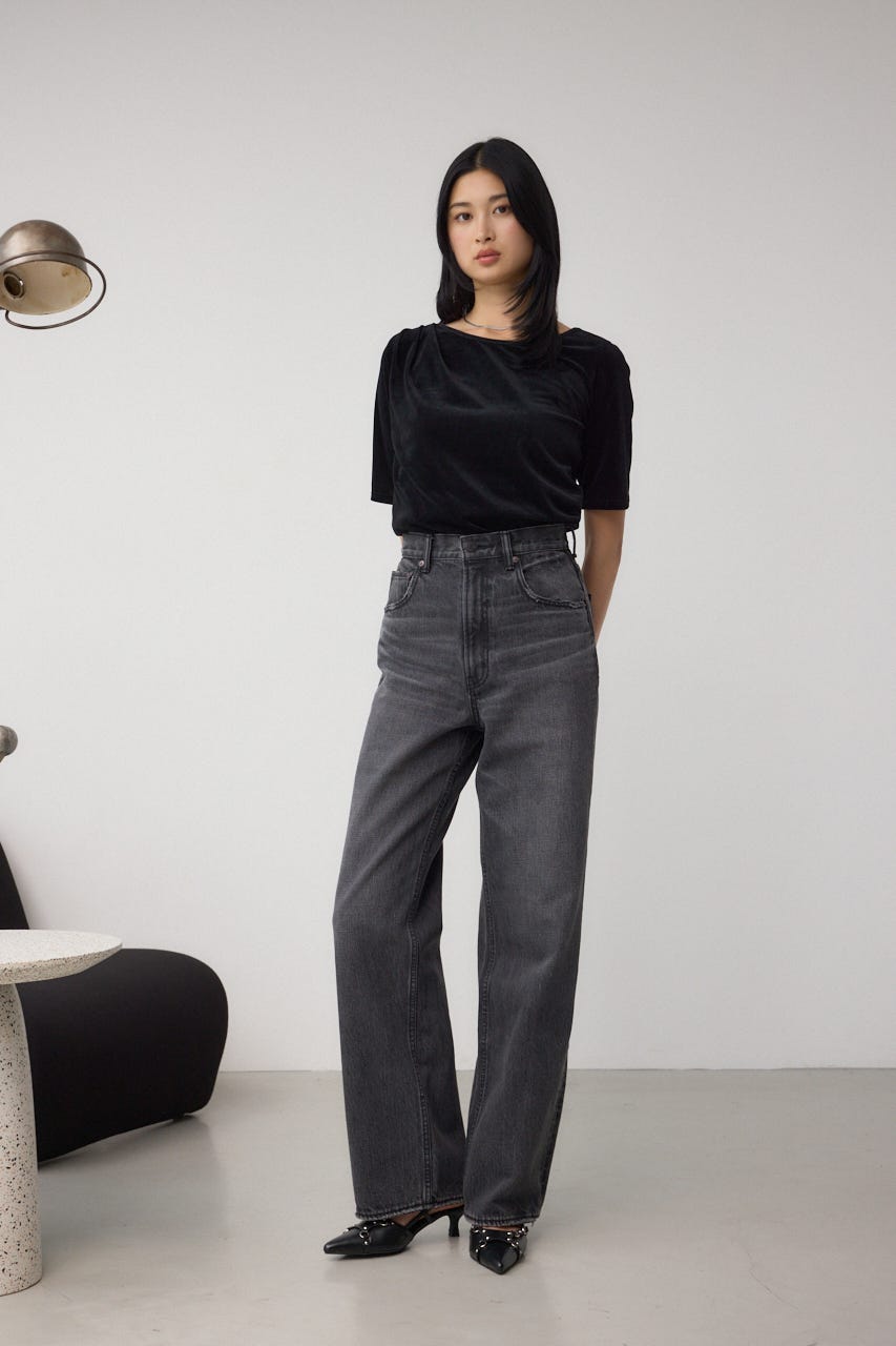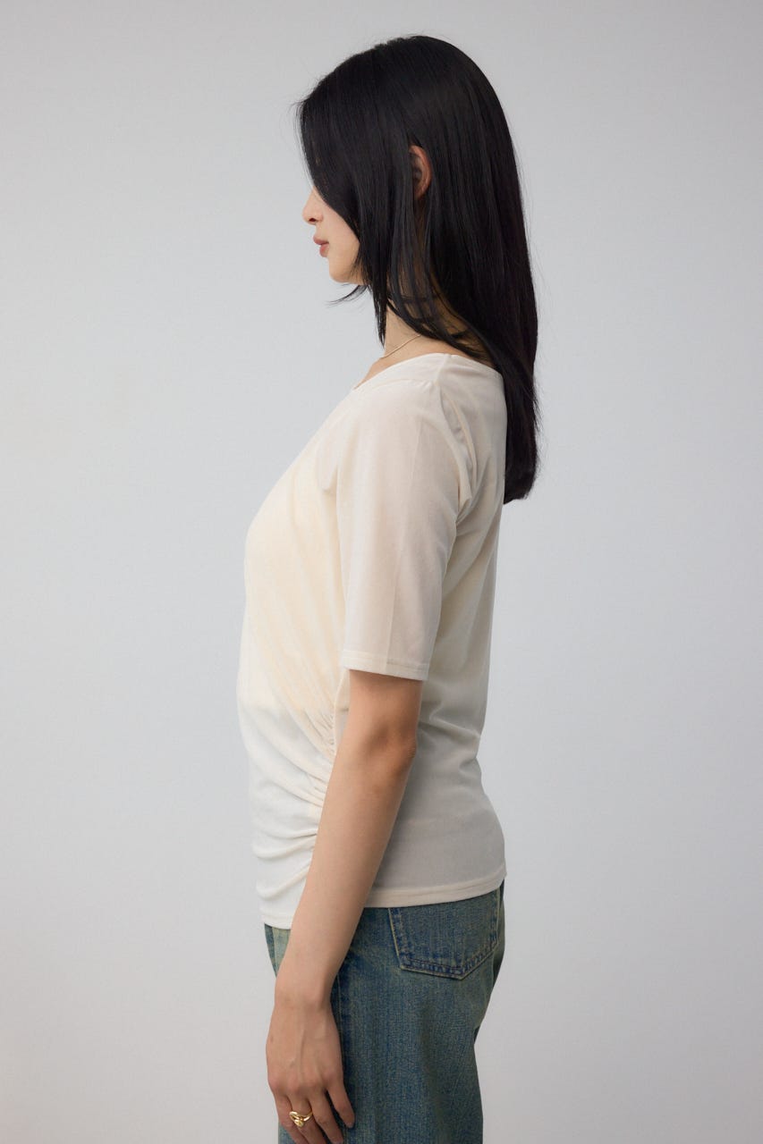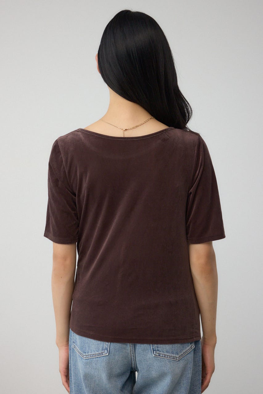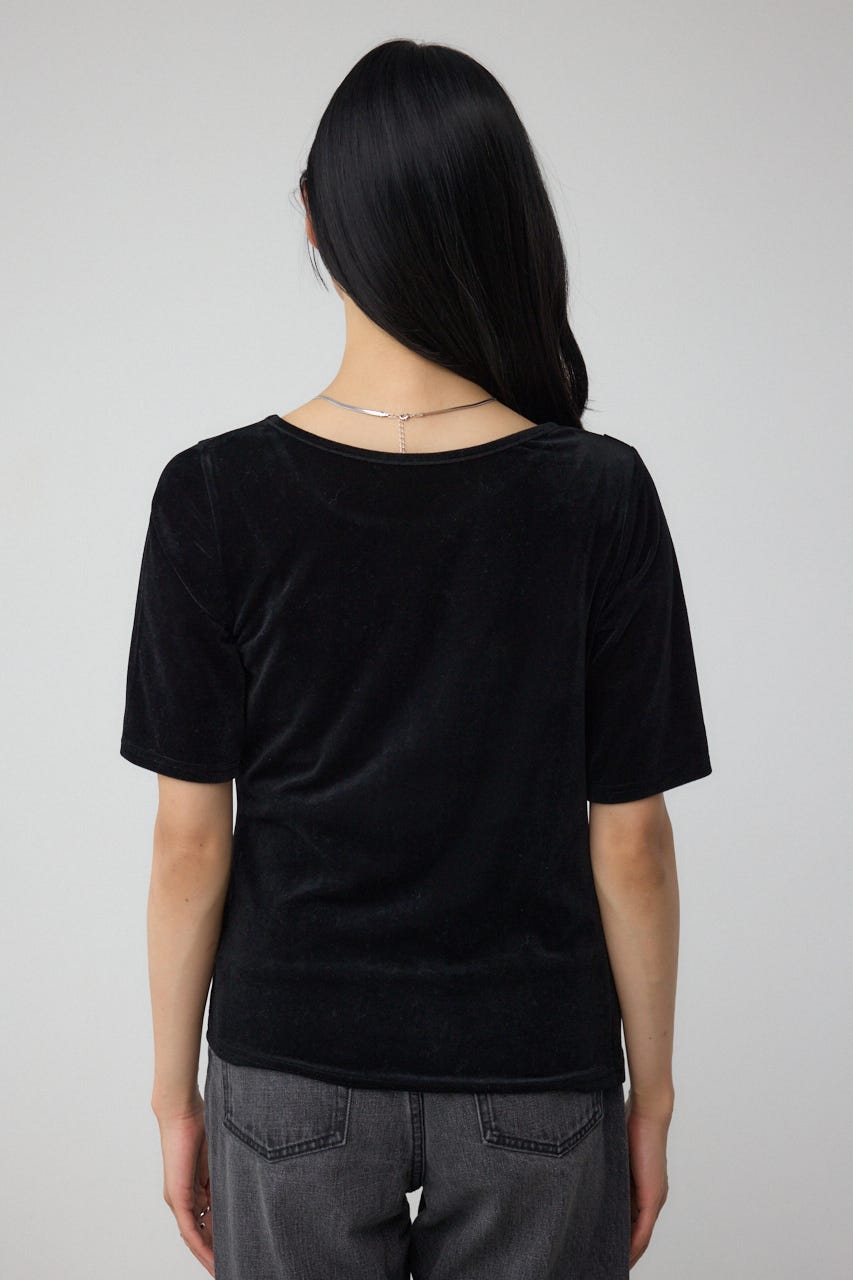 トレンドのベロア素材をトレンドのドレープデザインにしたトップスです。