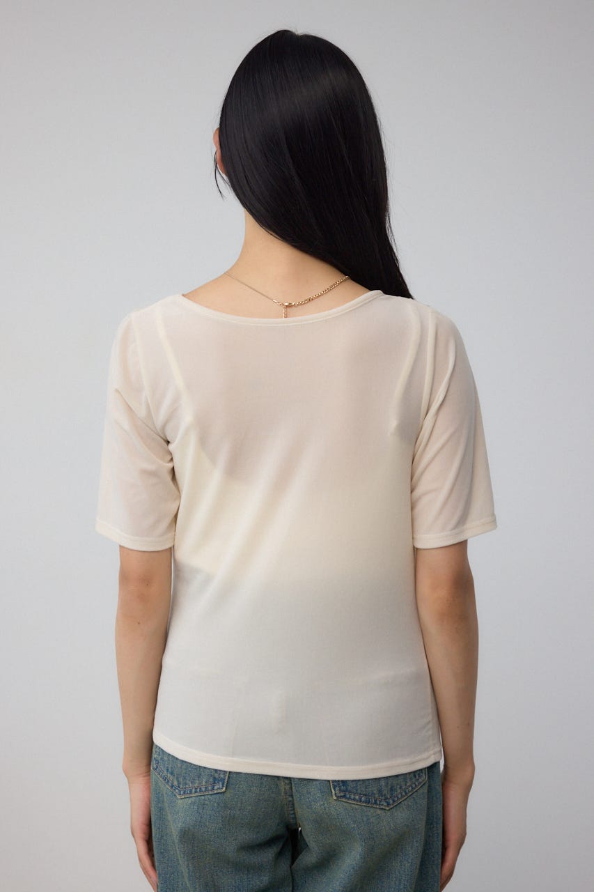 今すぐ着用できる5分袖で二の腕のすっきり見せてくれます。