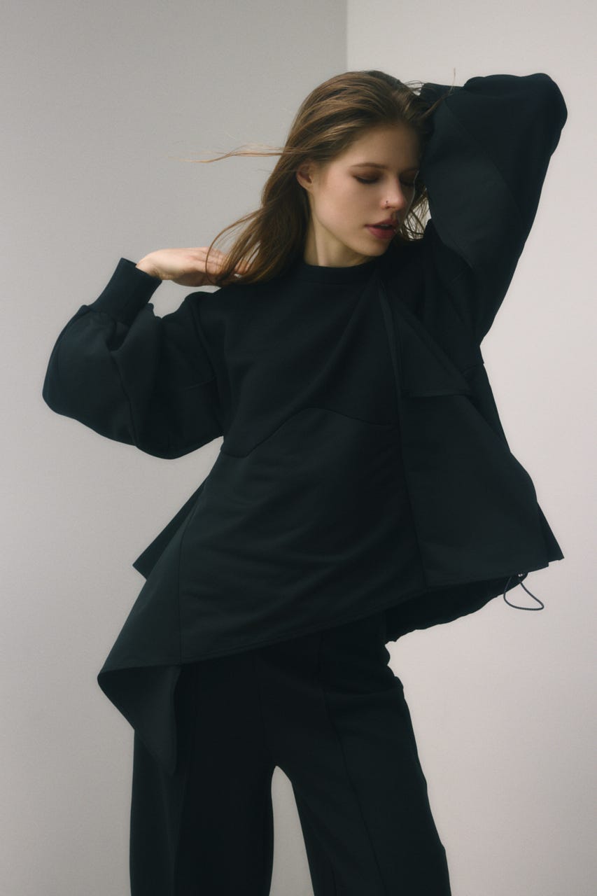 【PLUS】ボリュームスリーブアシンメトリーシャツ