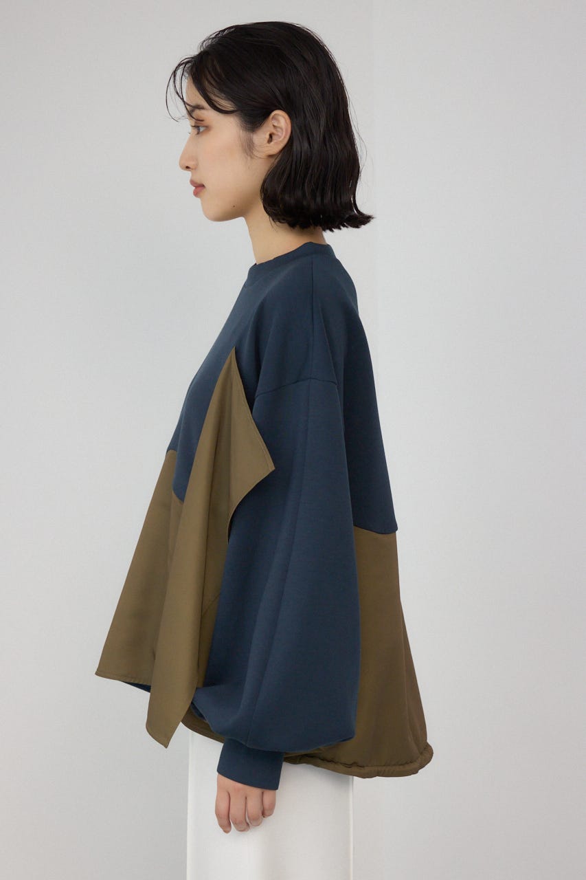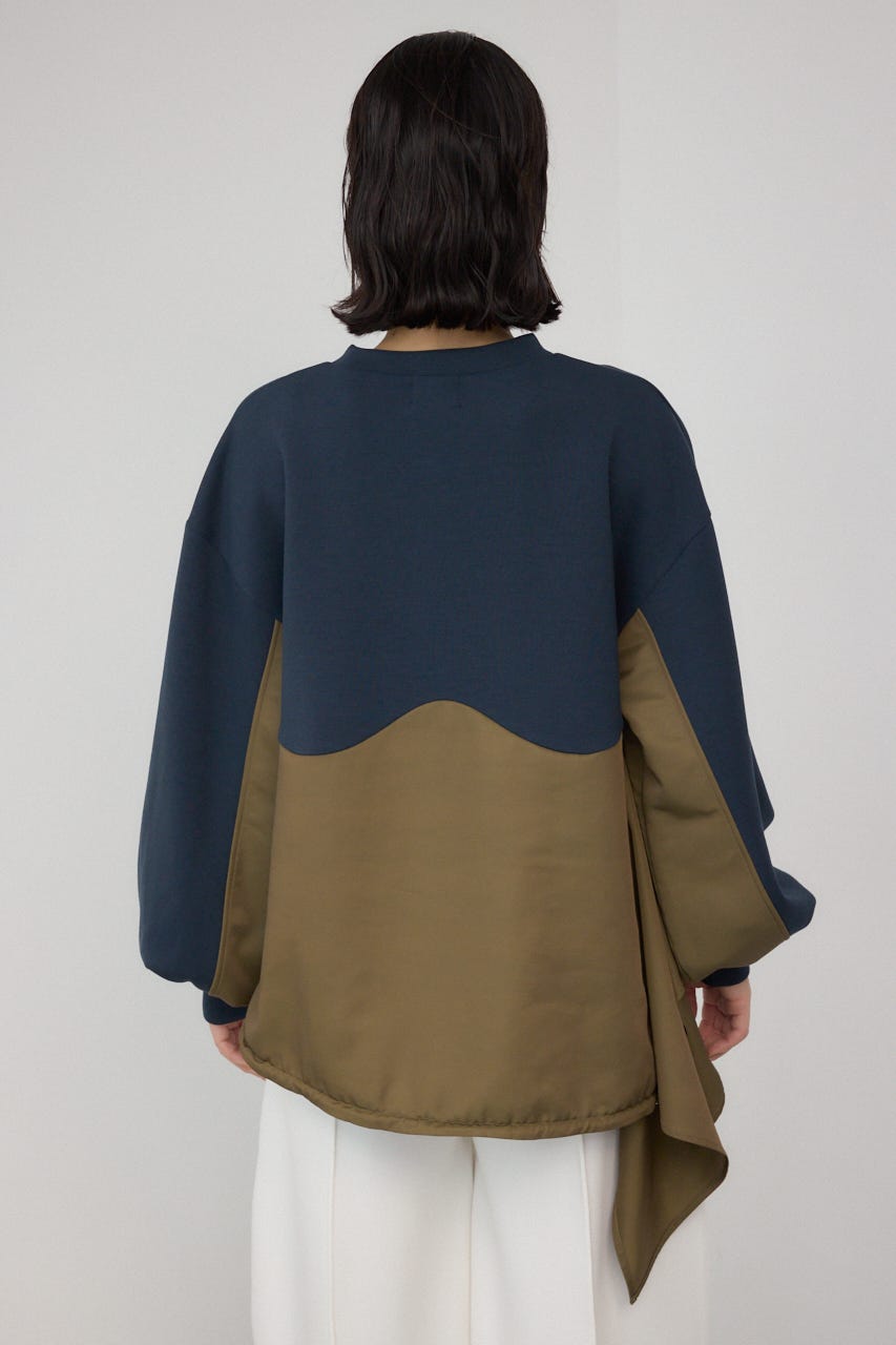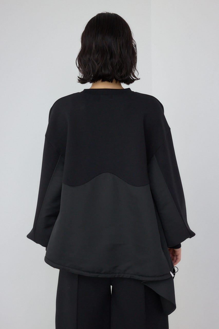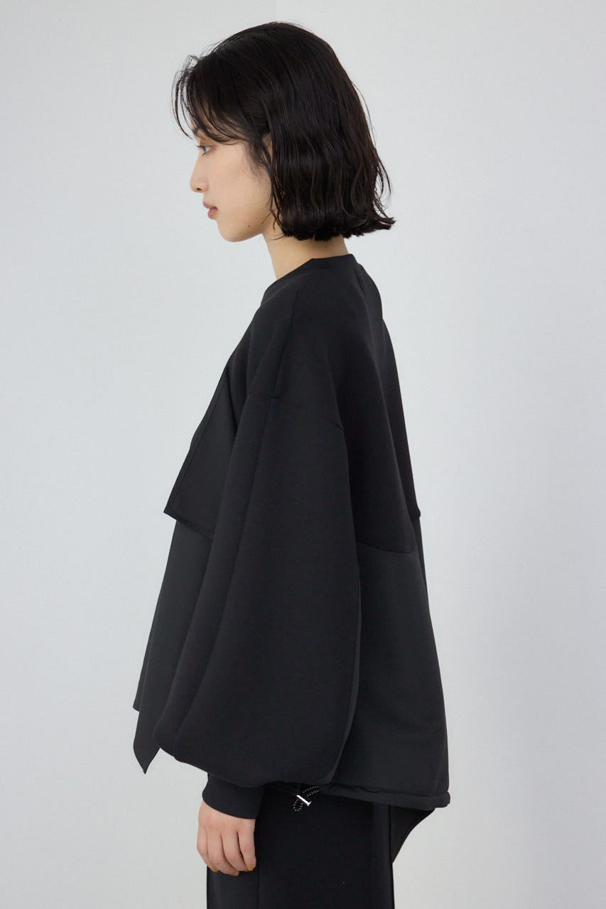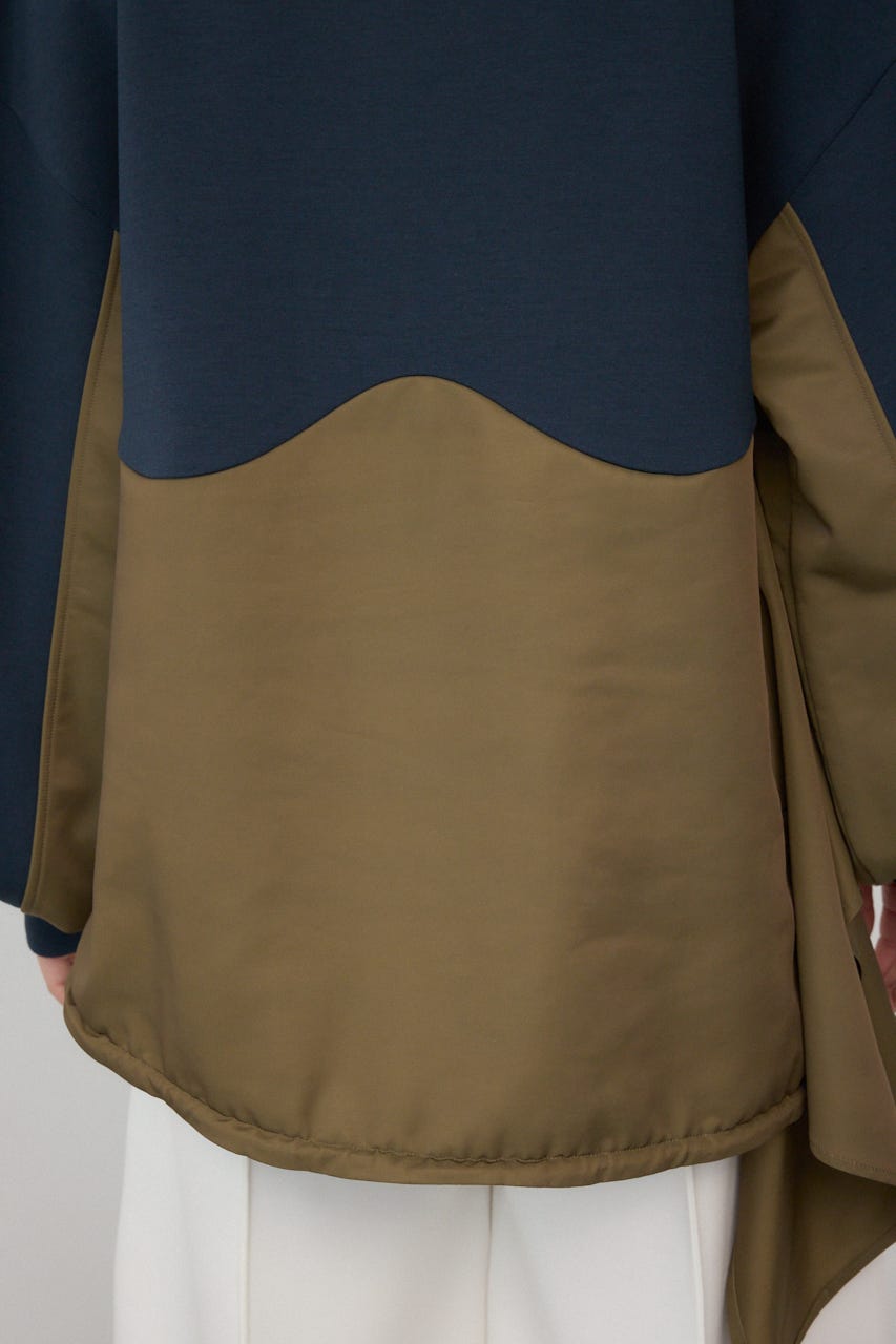 肌触りが良く、もっちりとした弾力のあるダンボール素材と、程よいハリ感のある布帛素材をドッキングさせた異素材コンビのトップスです。