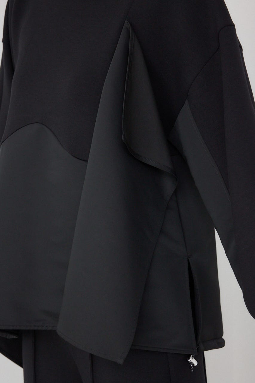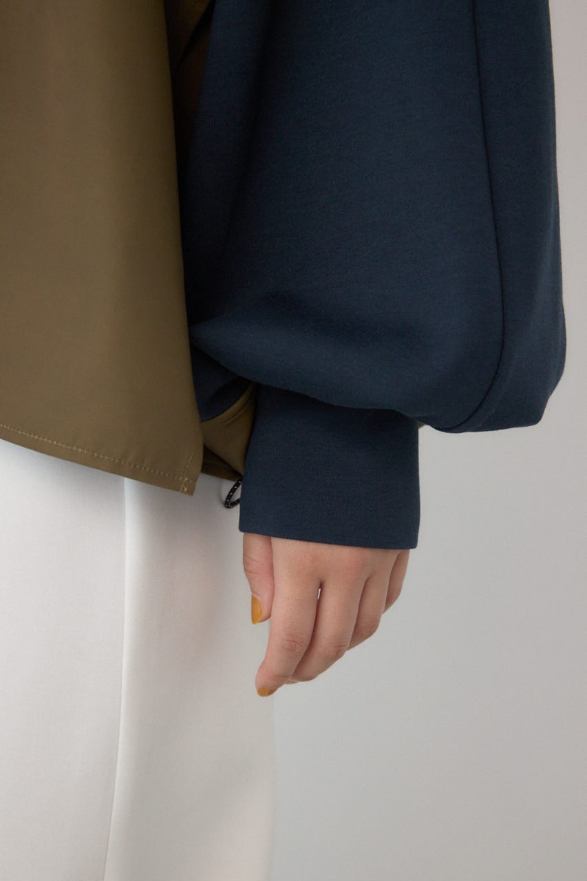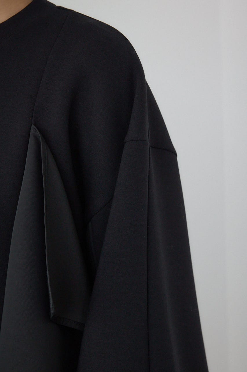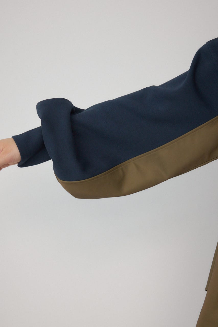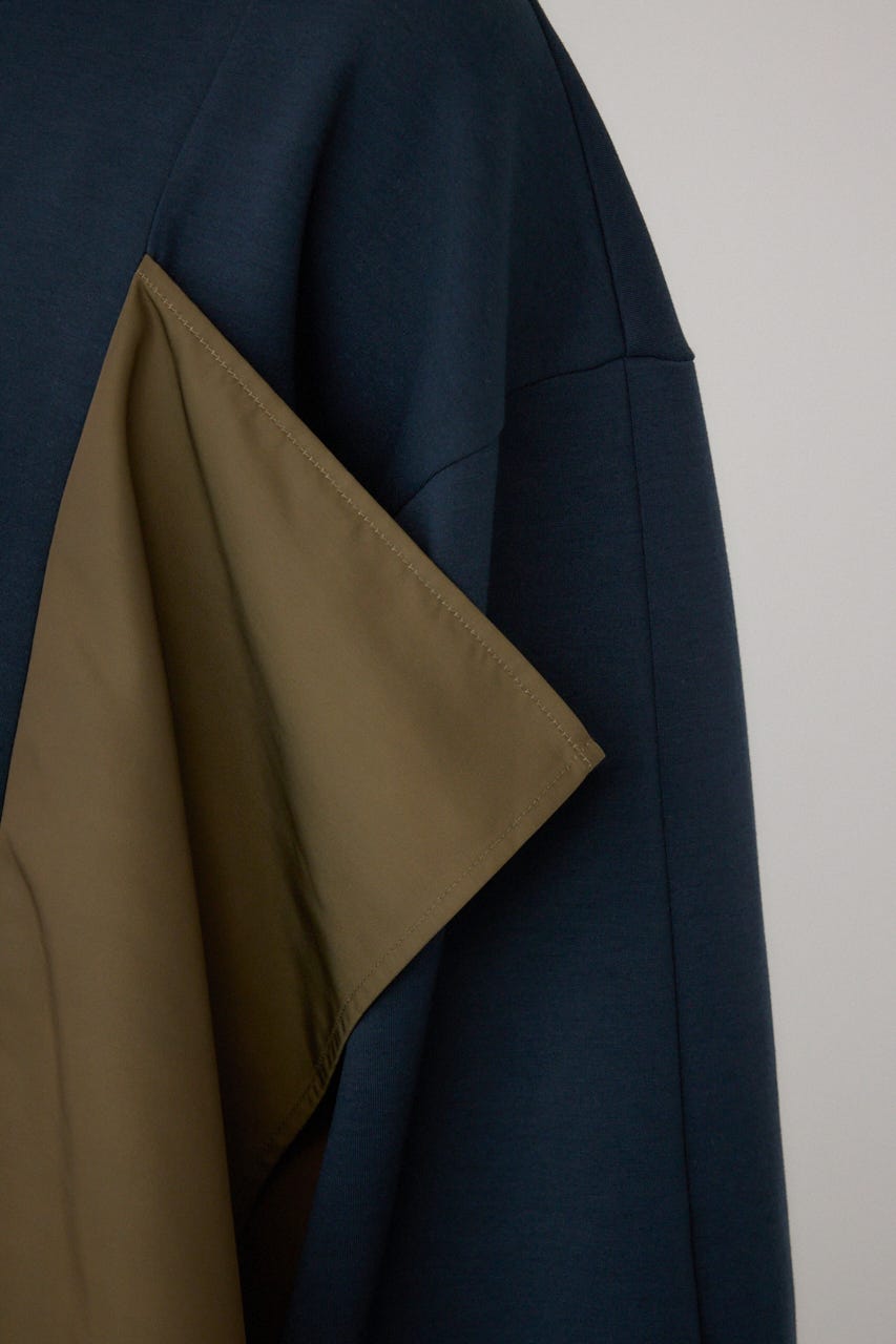 肌触りが良く、もっちりとした弾力のあるダンボール素材と、程よいハリ感のある布帛素材をドッキングさせた異素材コンビのトップスです。