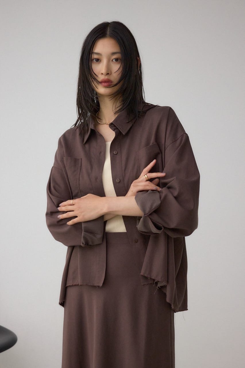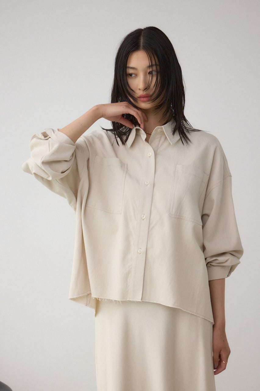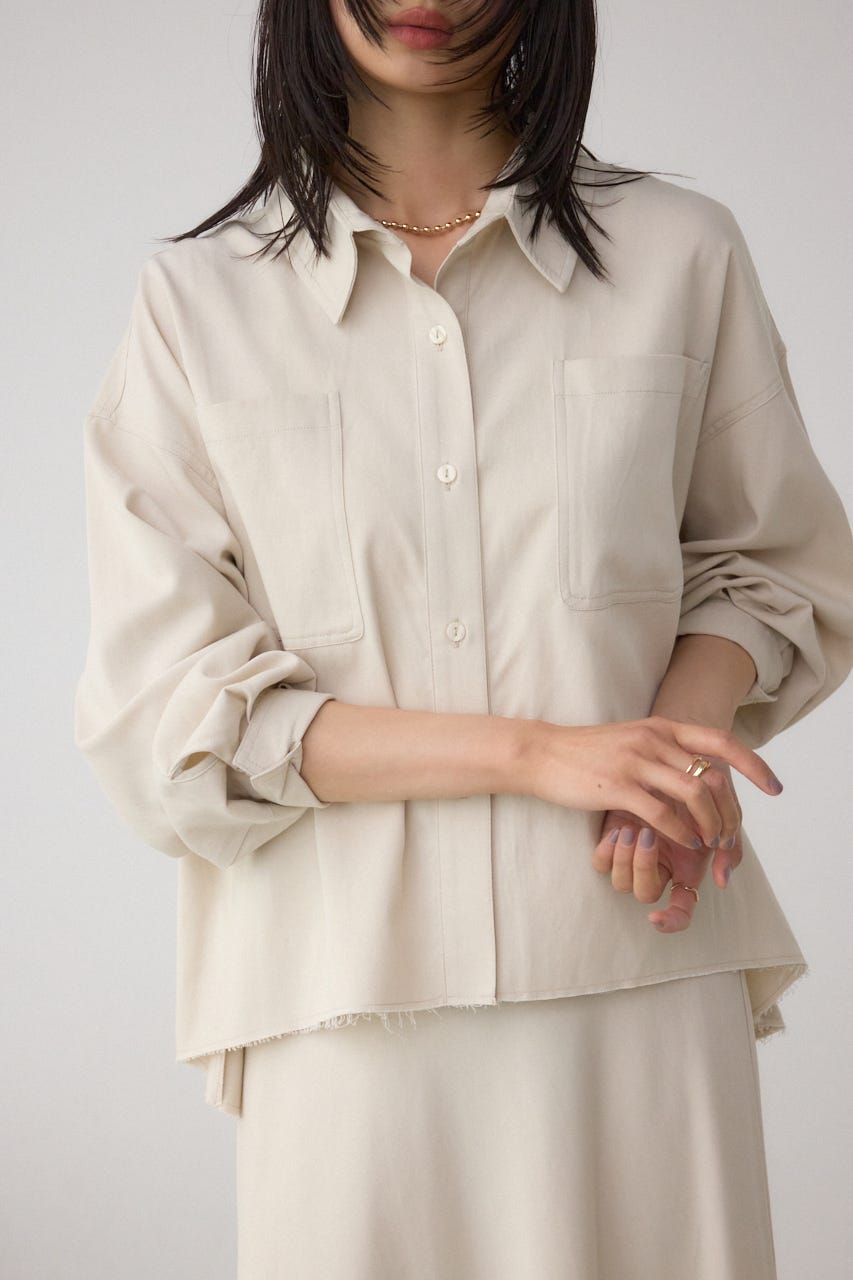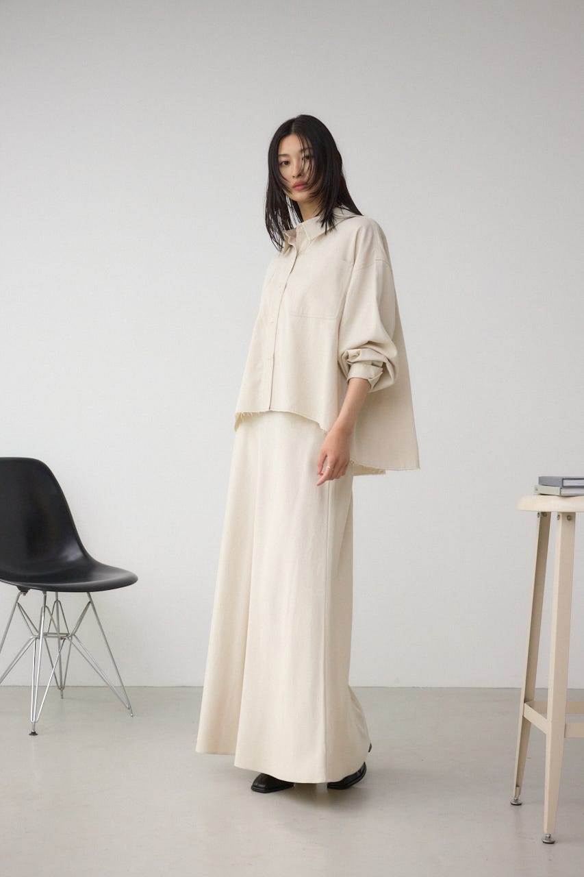 タンクやTシャツの上から羽織りとしての着用はもちろん、同素材の250IAB31-124H セミフレアスカートとのセットアップ着用もおすすめです。