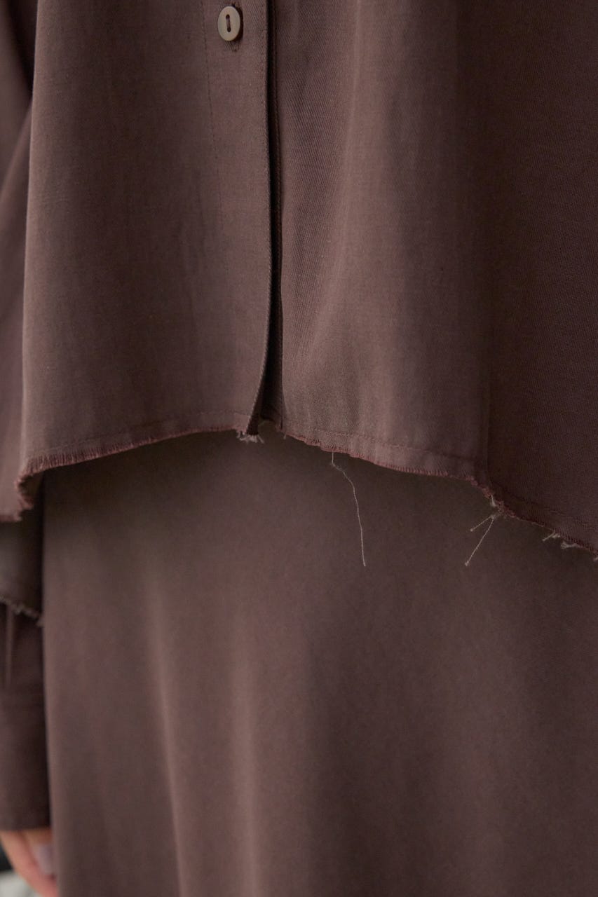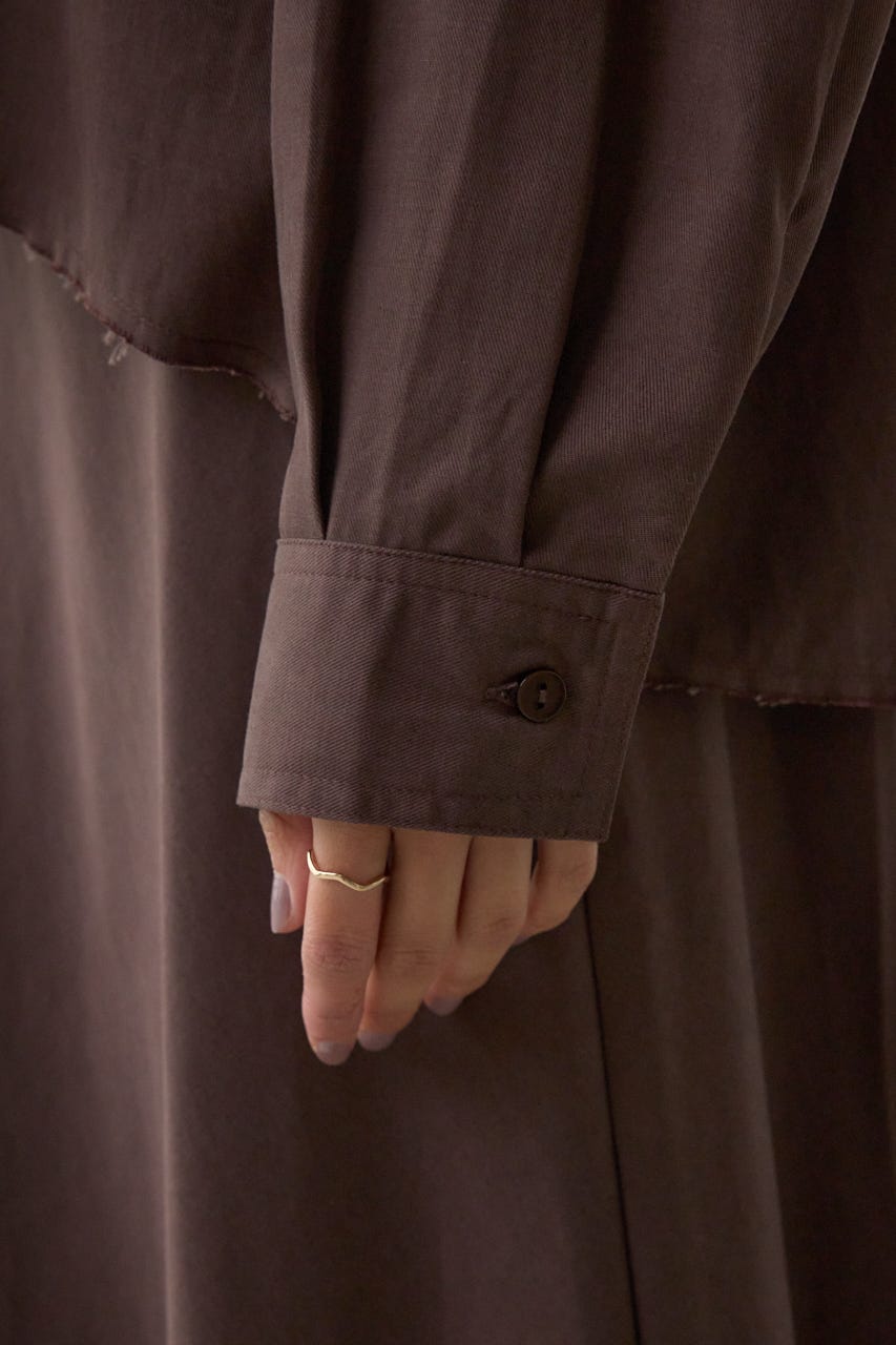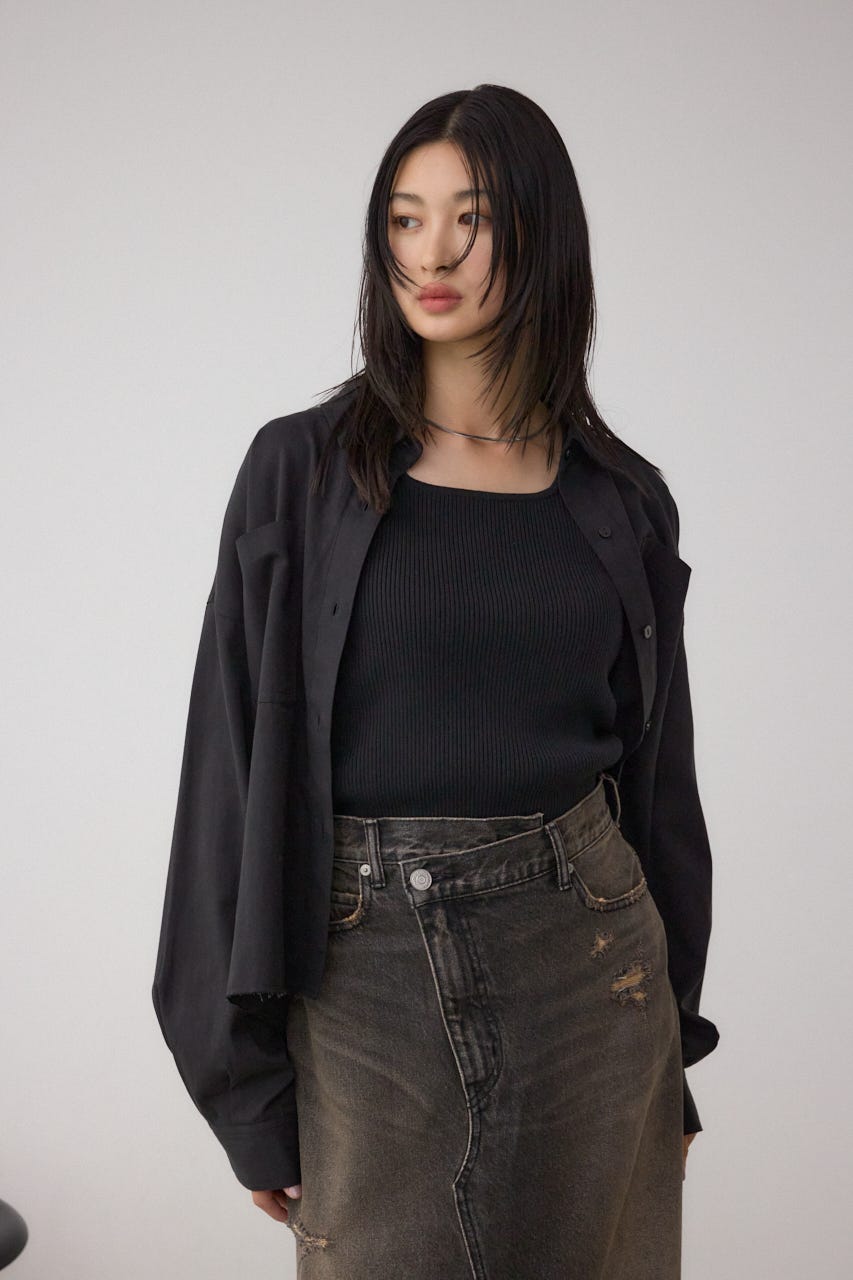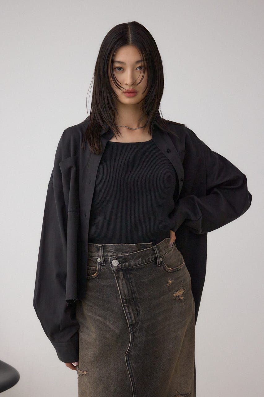 タンクやTシャツの上から羽織りとしての着用はもちろん、同素材の250IAB31-124H セミフレアスカートとのセットアップ着用もおすすめです。