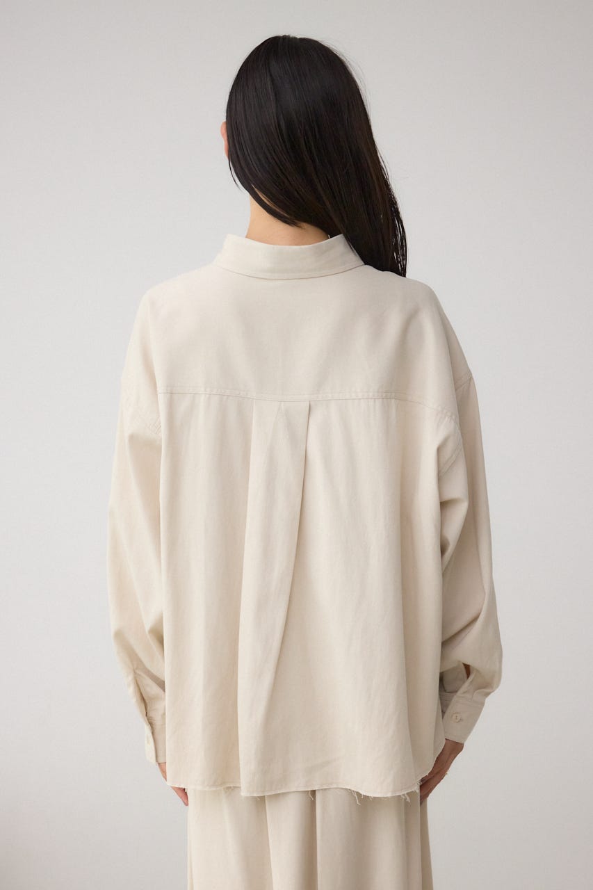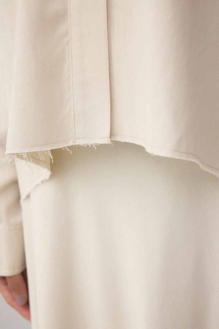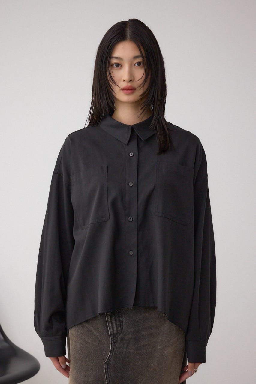 ゆったりとしたオーバーシルエットに、前後でラウンドさせたカットオフのヘムデザインがポイント。