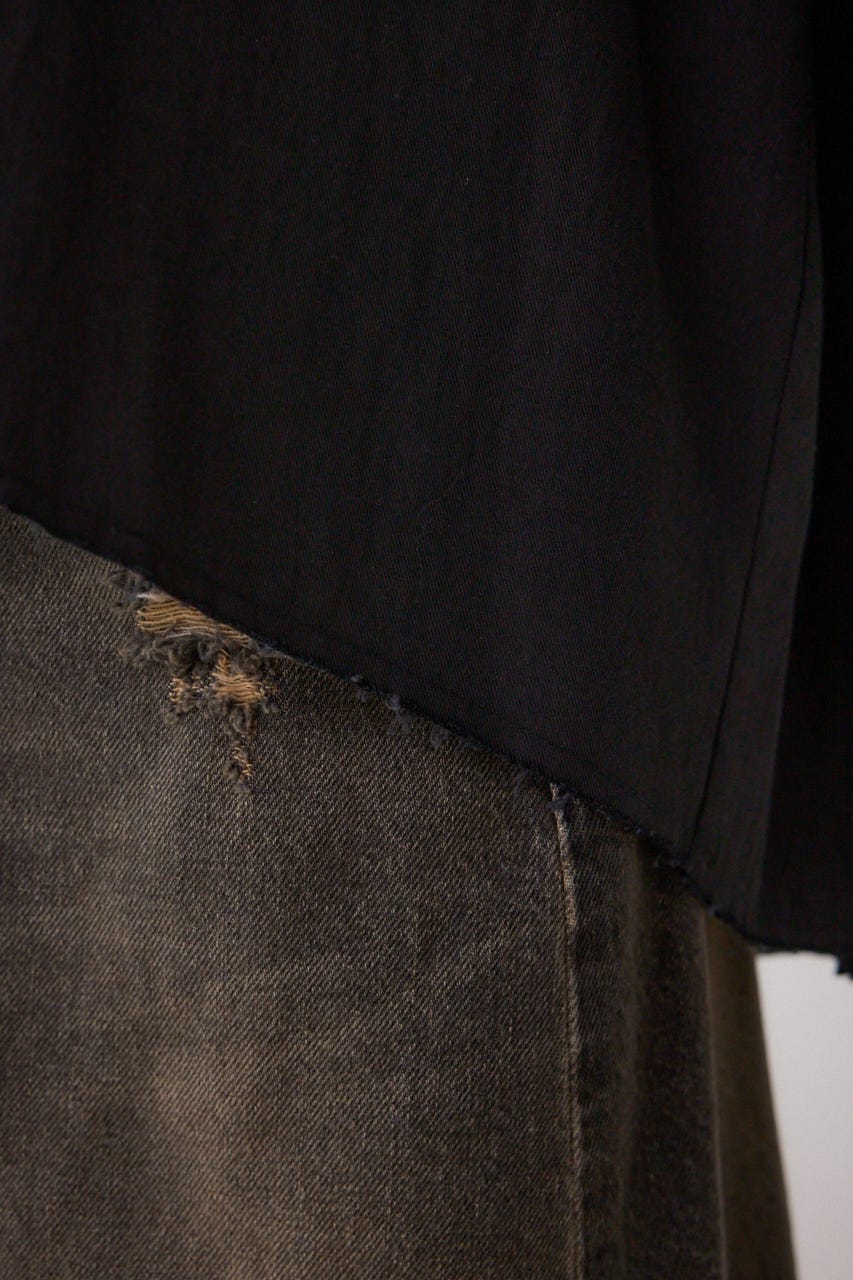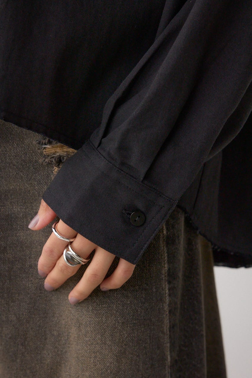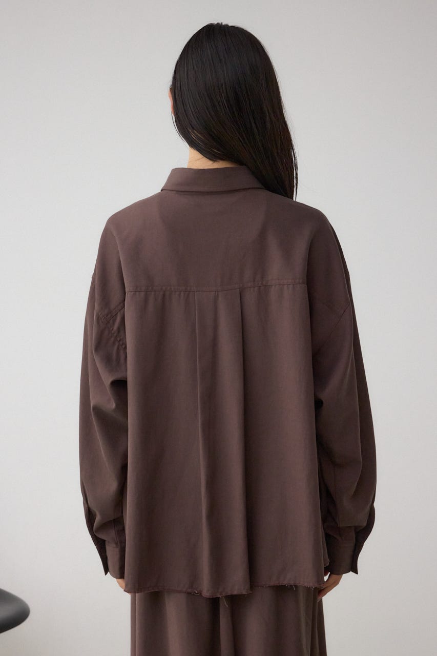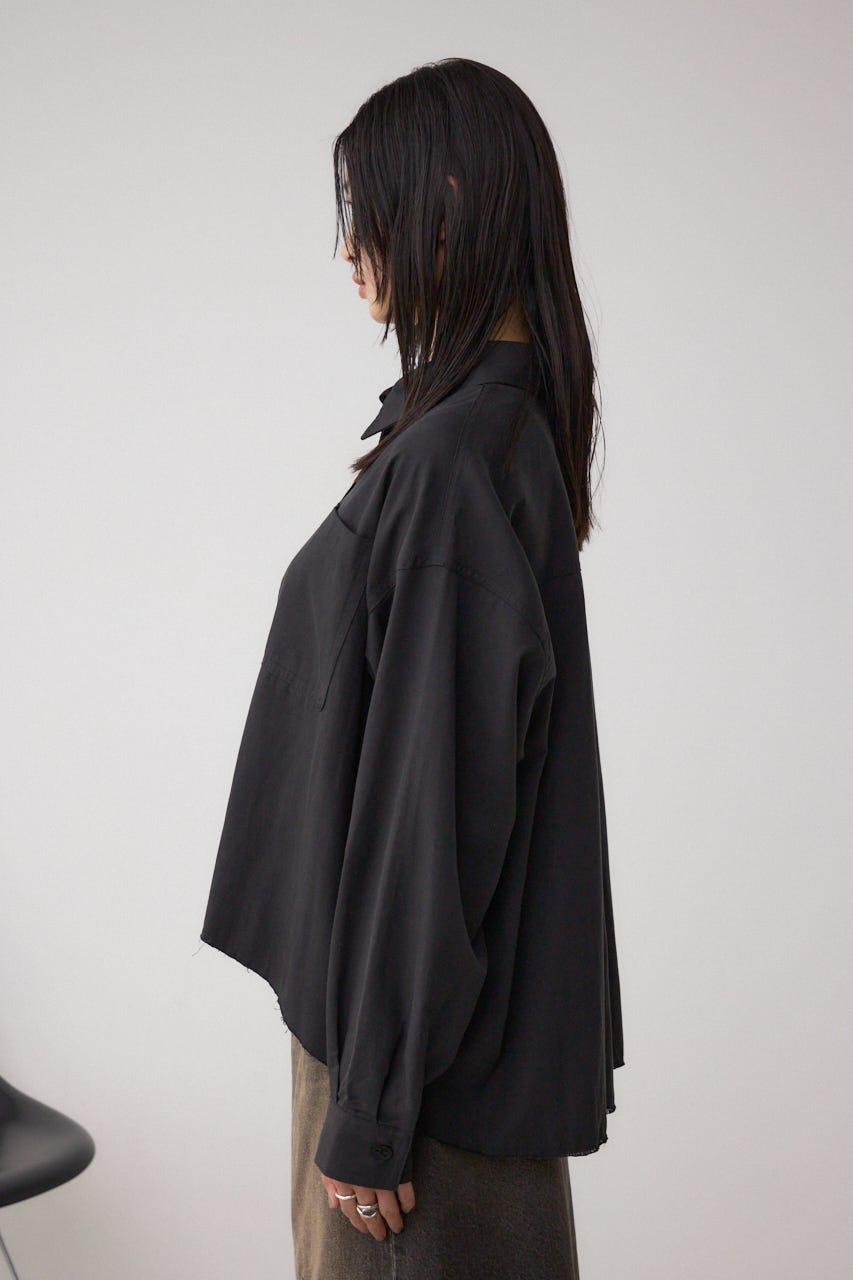 ゆったりとしたオーバーシルエットに、前後でラウンドさせたカットオフのヘムデザインがポイント。