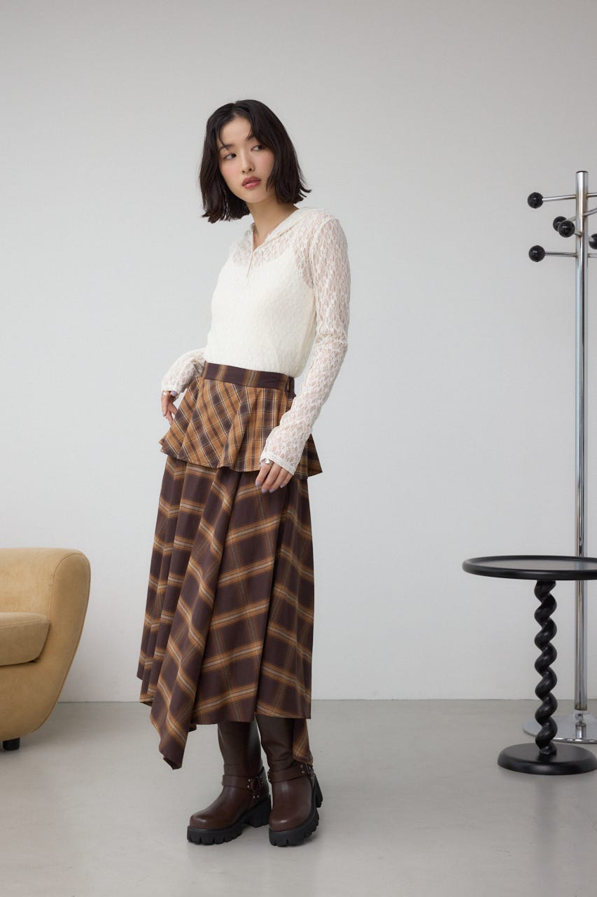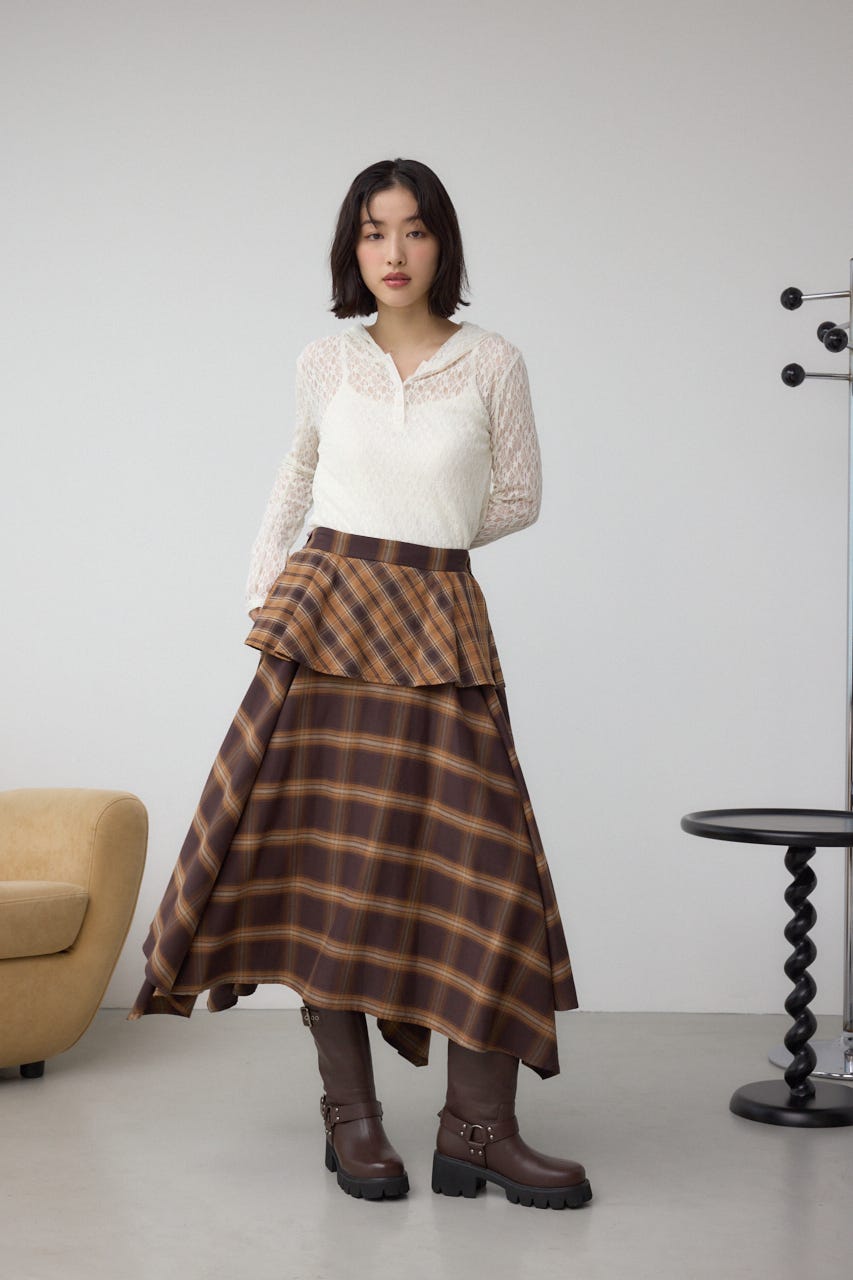 トレンドのチェックスカートやレース素材のワンピースと合わせるだけで、一気に今季らしいスタイリングが完成します。