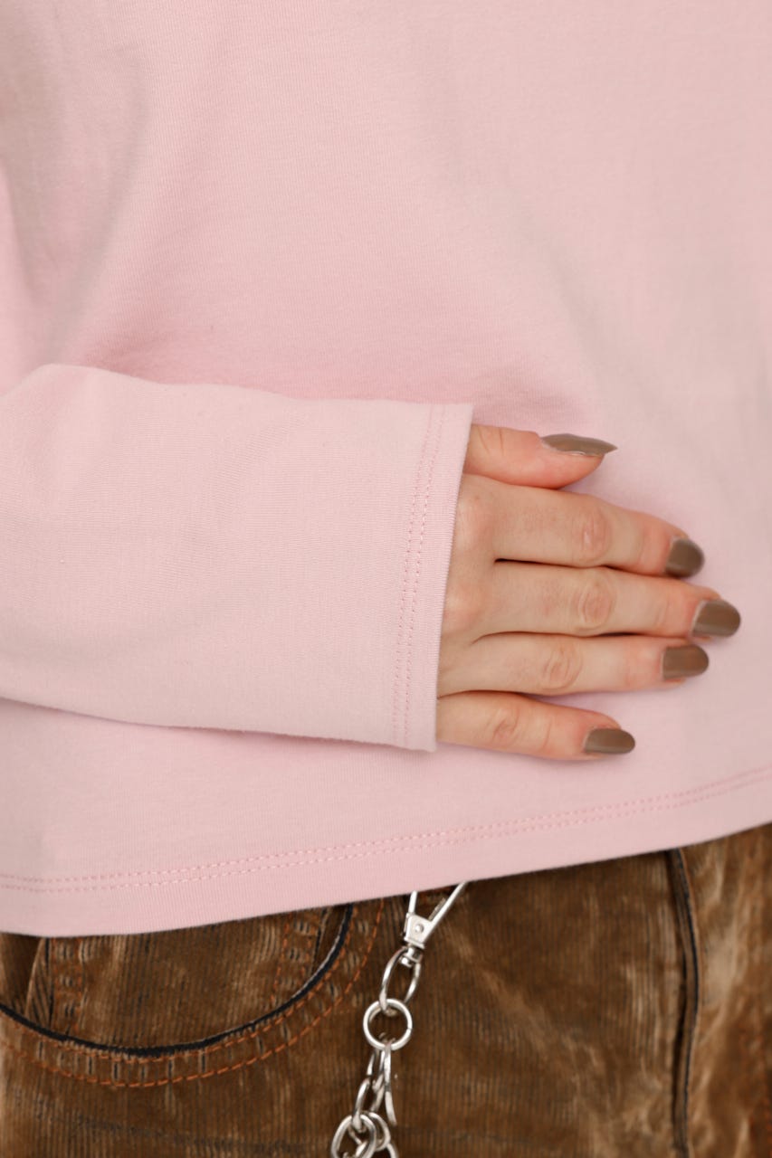 ■POINT:フロントのレース素材を使用したリボンデザインがトレンド感溢れるロングスリーブトップス。