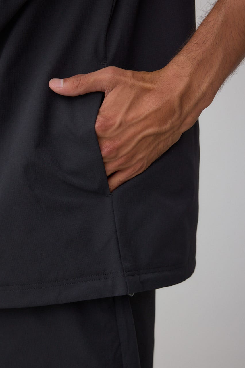 表面感のあるさらっとした素材なので夏場でも着心地抜群です。