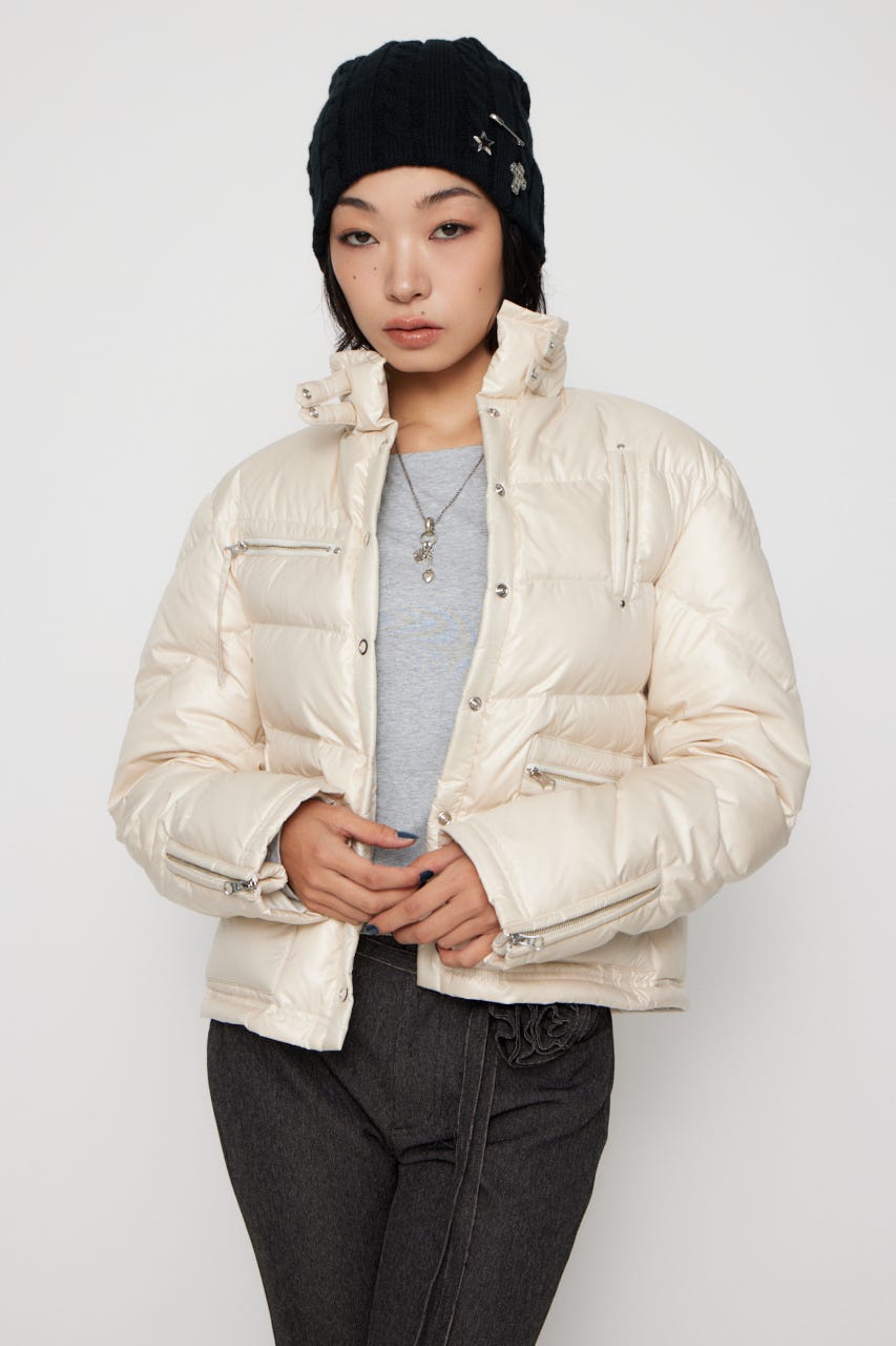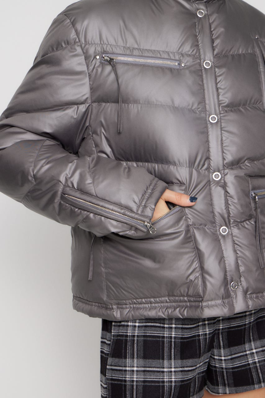 ■POINT:光沢感のある生地が目を惹くダウンジャケット。