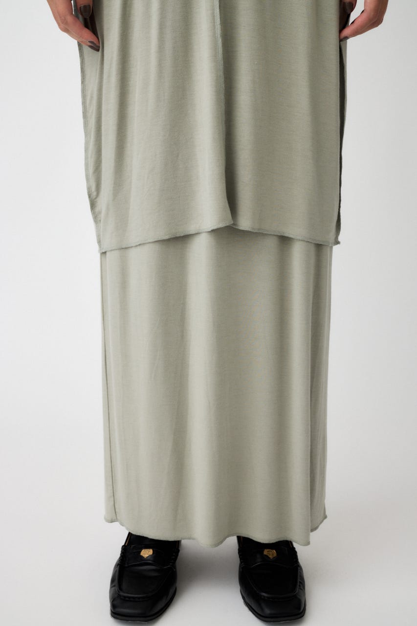 薄手のジャージー素材を重ねたレイヤードデザインで、シルエットに奥行きと動きが生まれます。