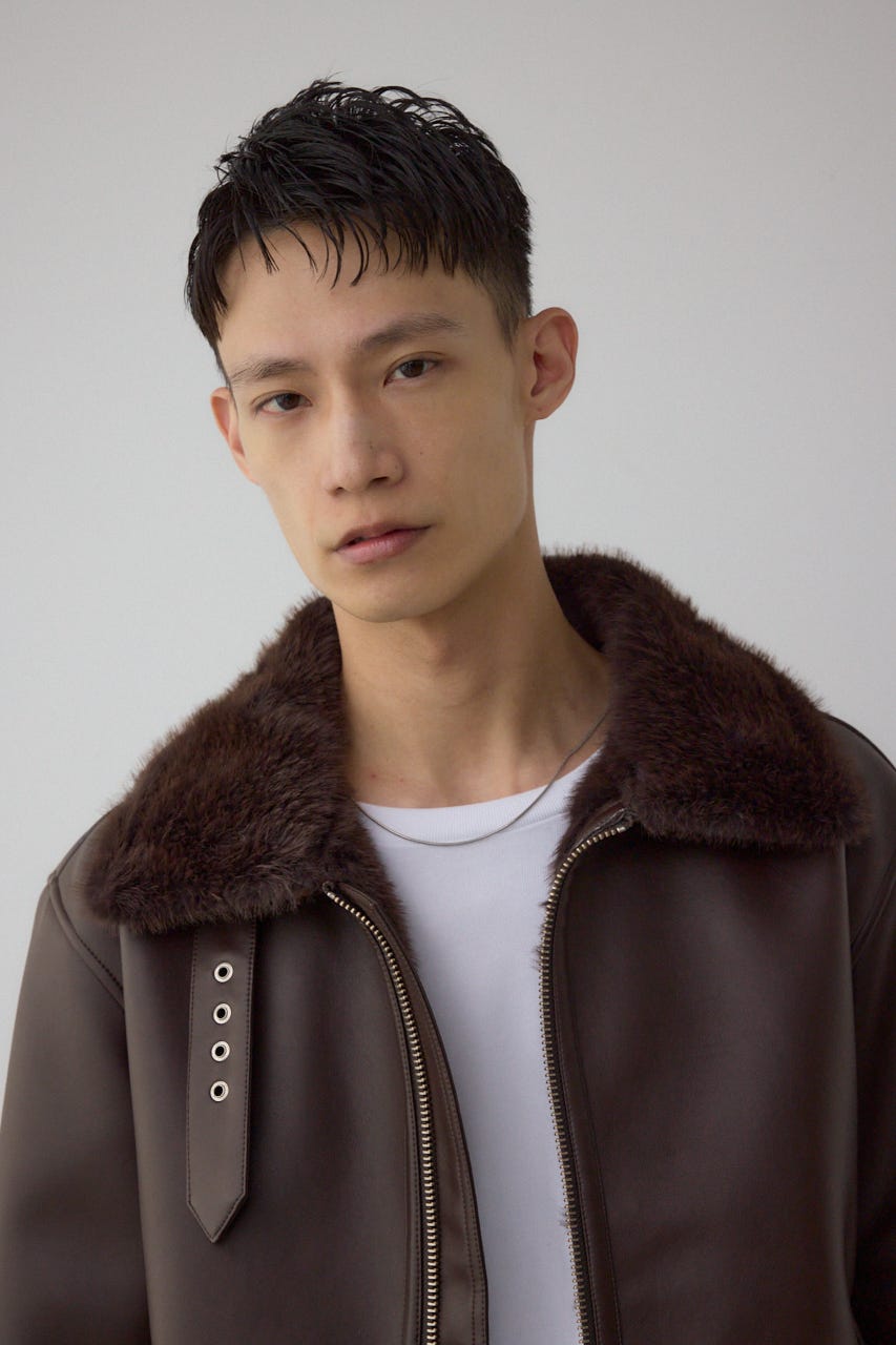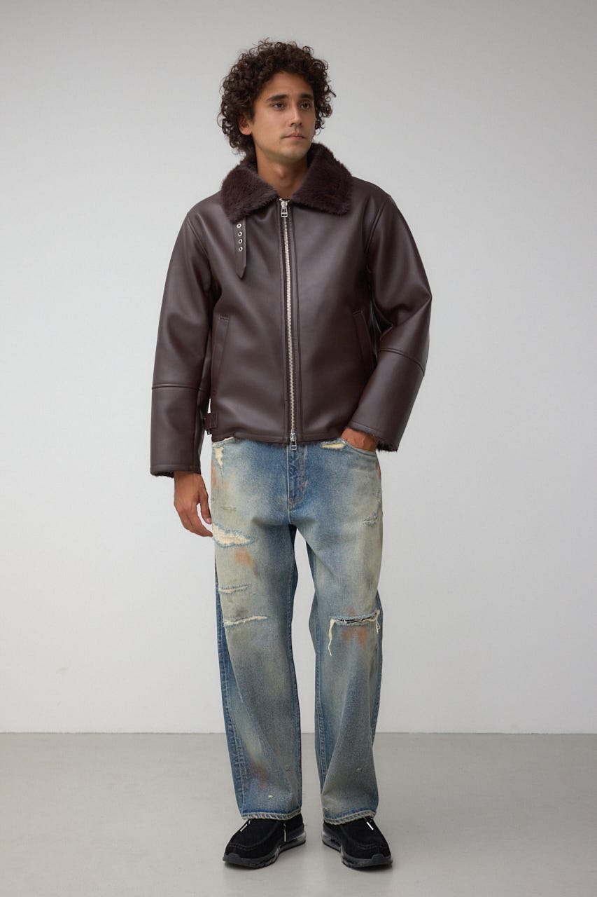 重厚感あふれるフェイクレザーを使用したB3型ブルゾンになります。