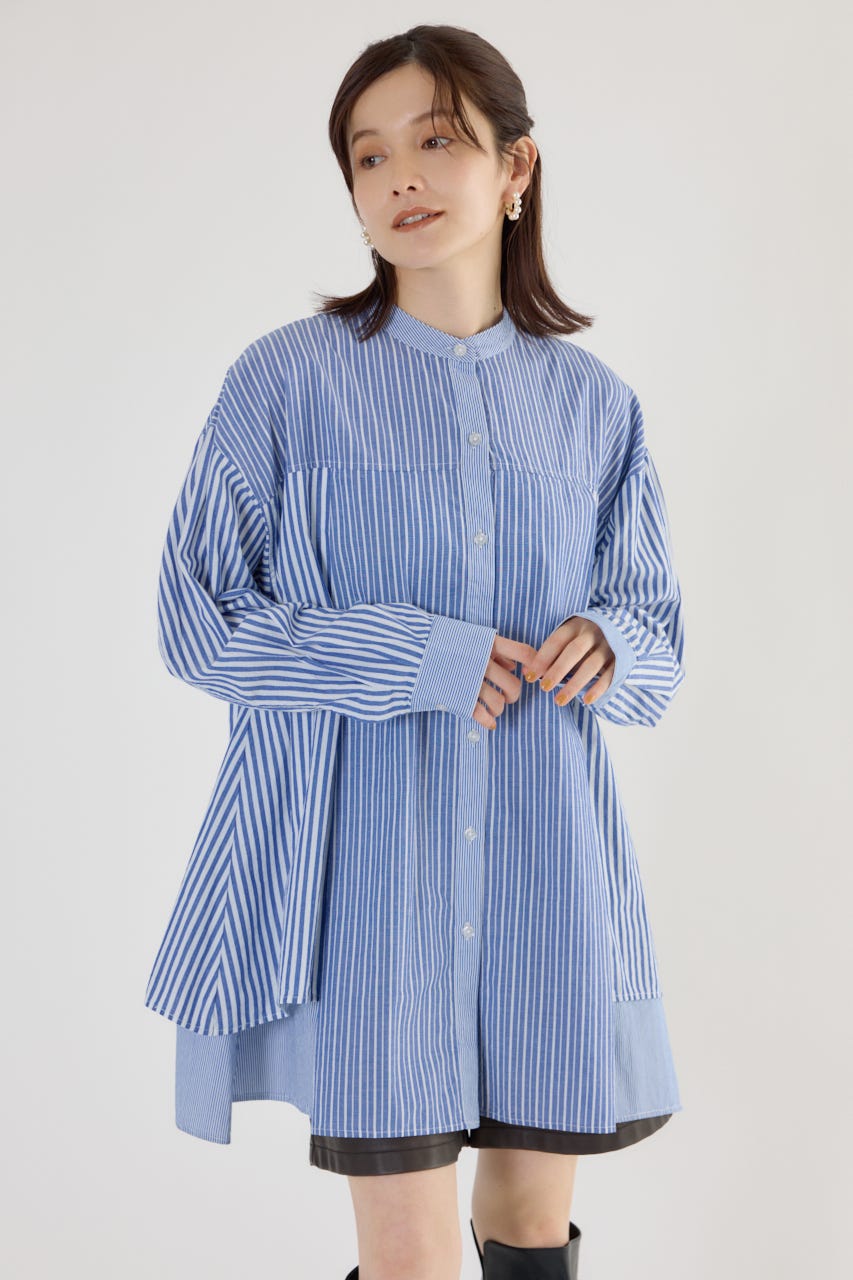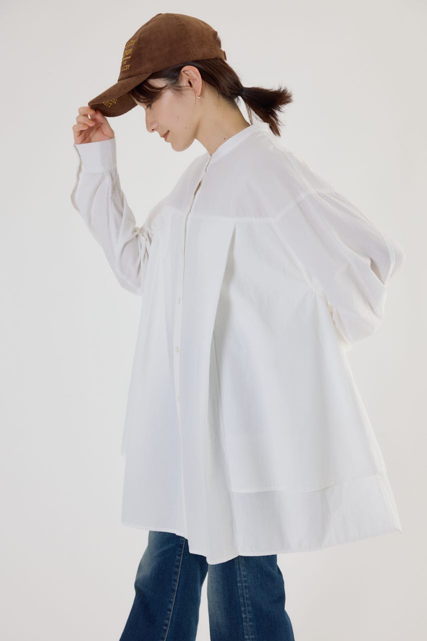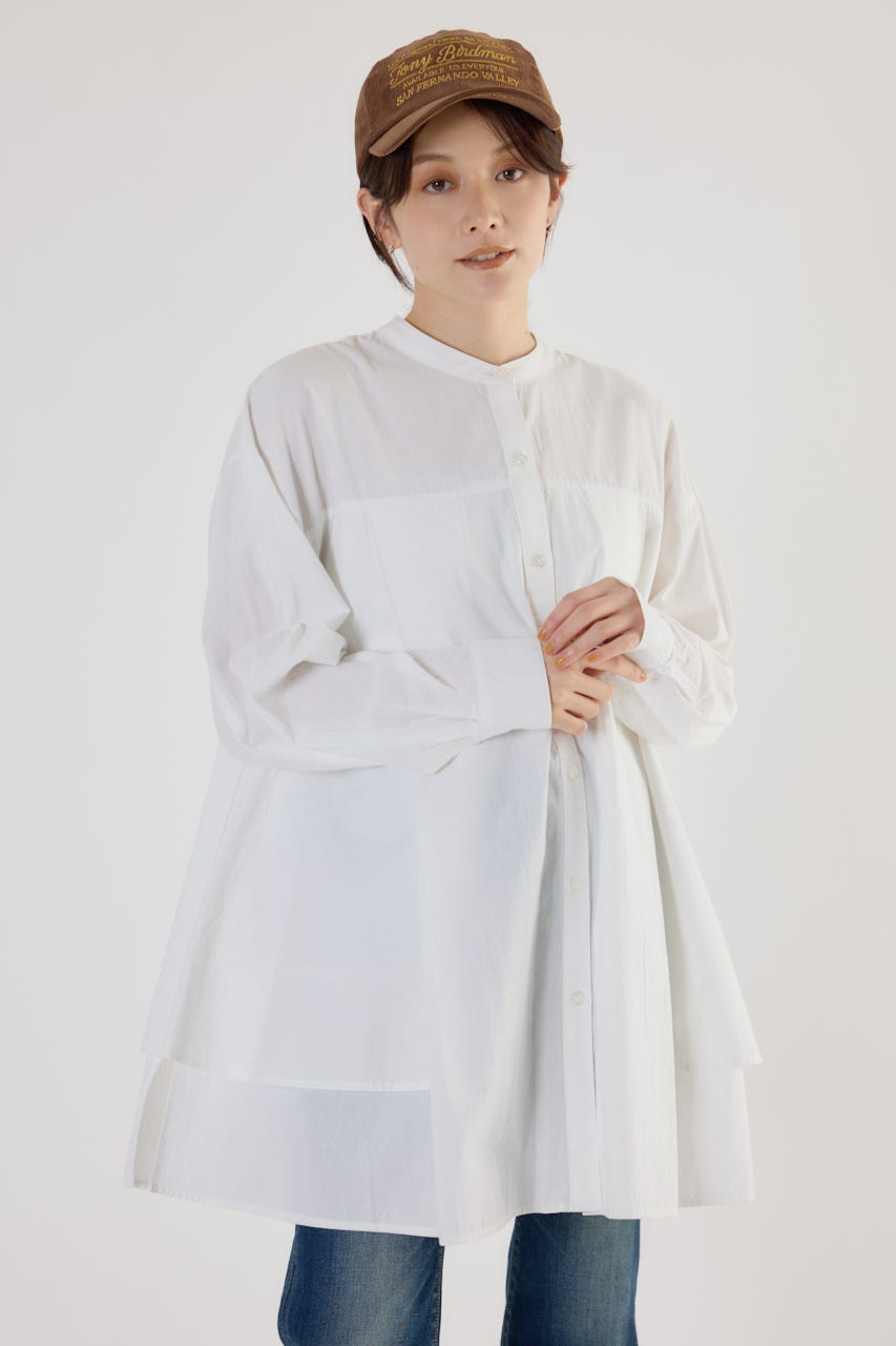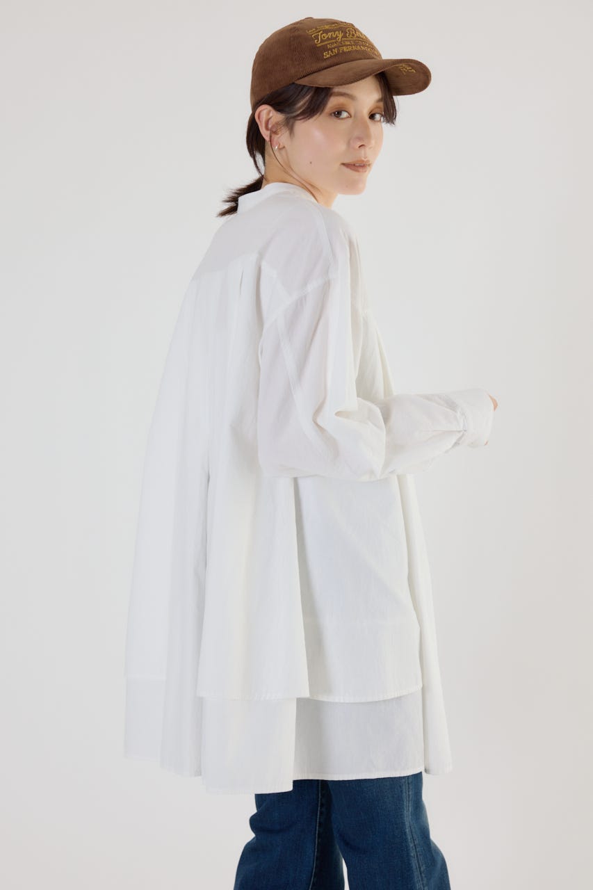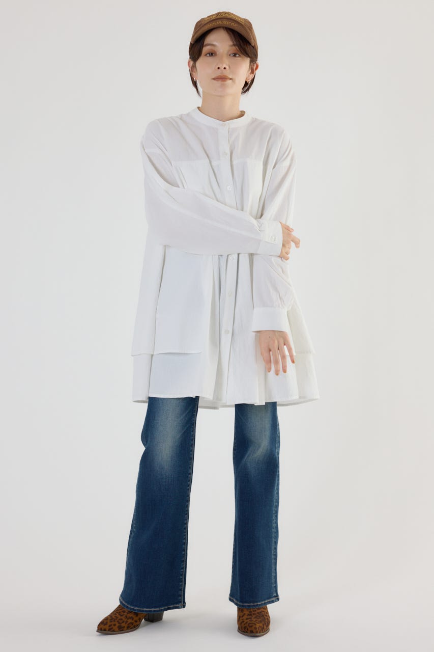 切替デザインとサイドのティアードで甘くなりすぎないシャツチュニック。