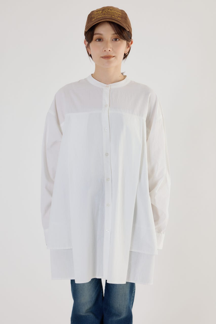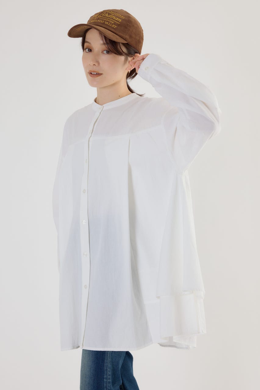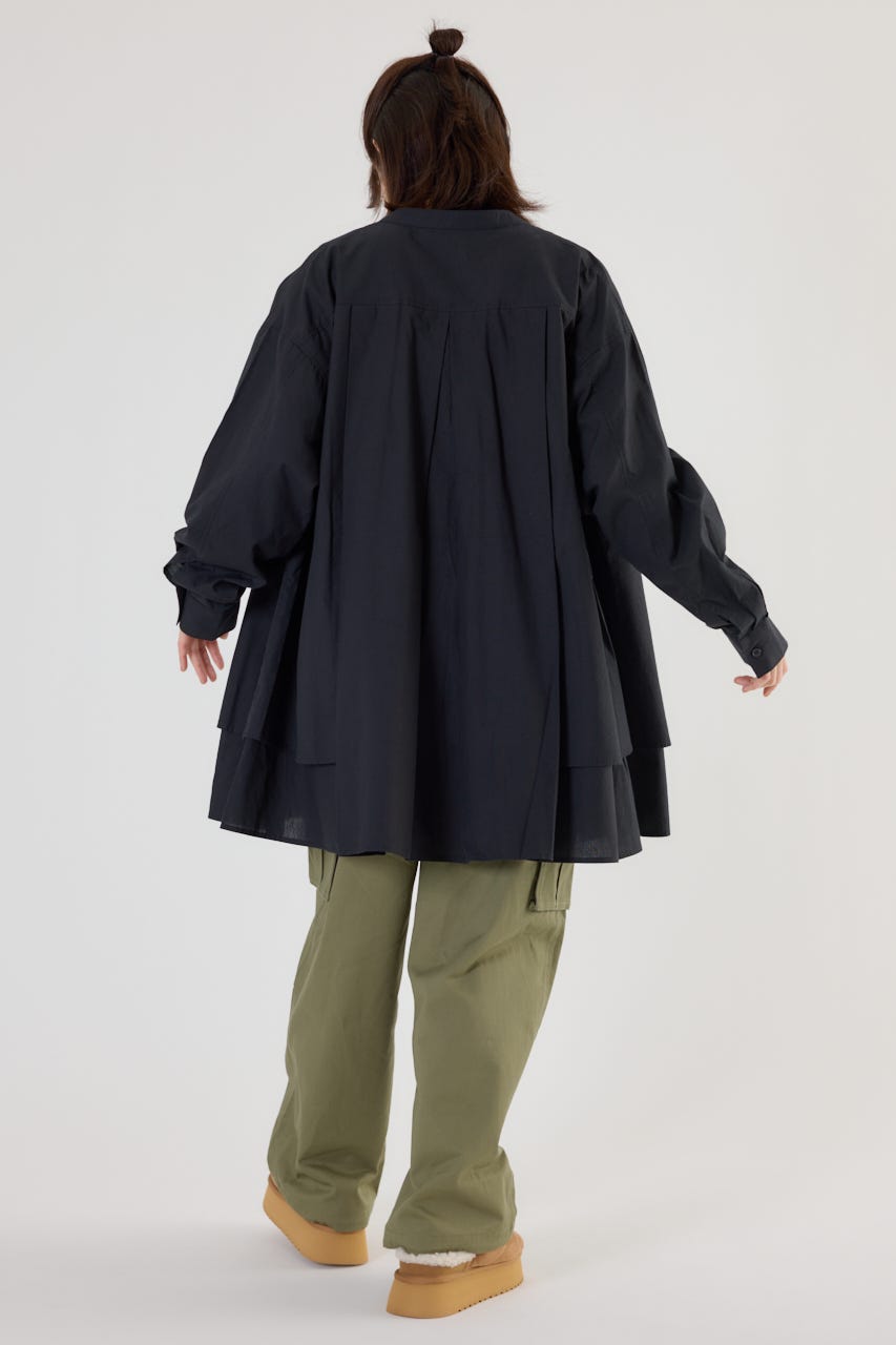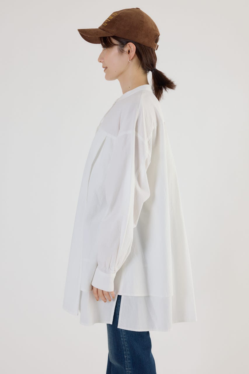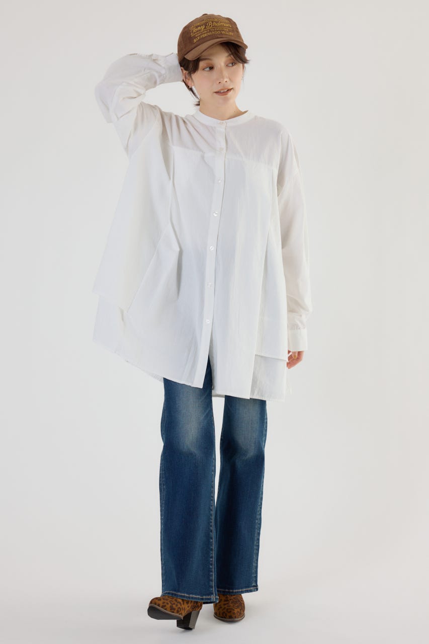 切替デザインとサイドのティアードで甘くなりすぎないシャツチュニック。