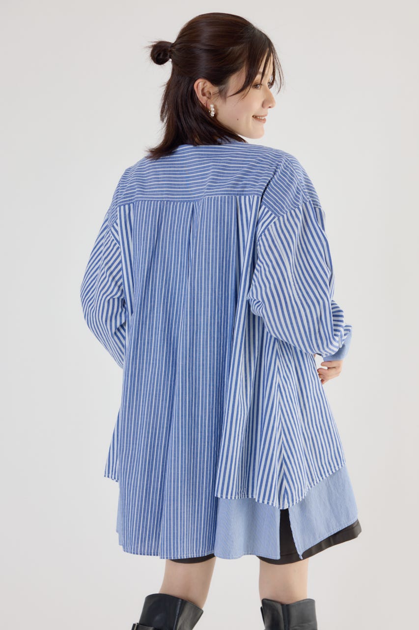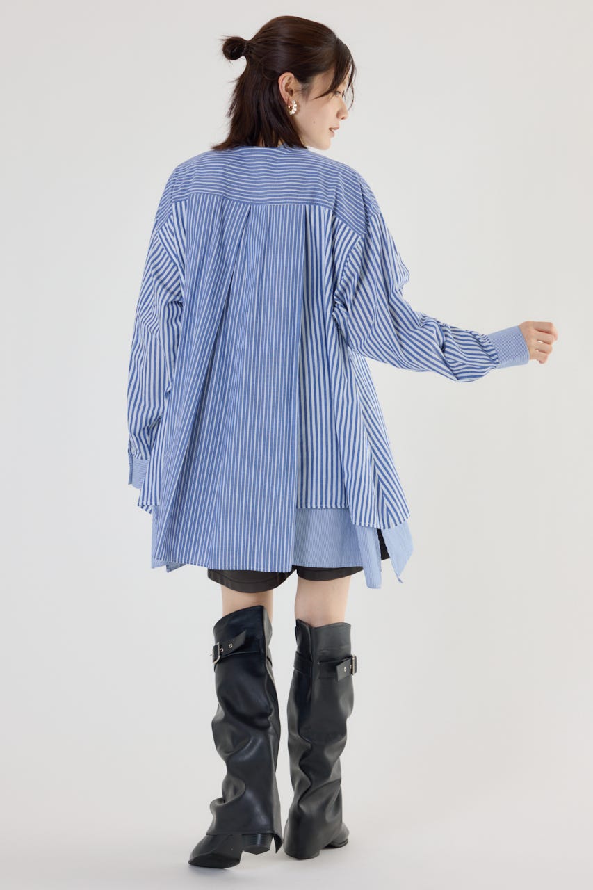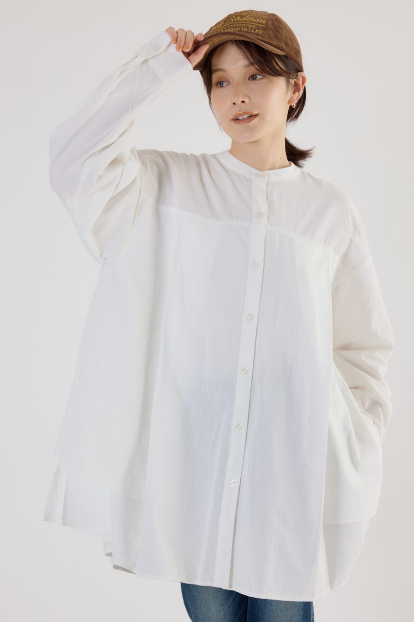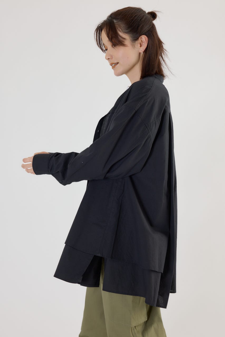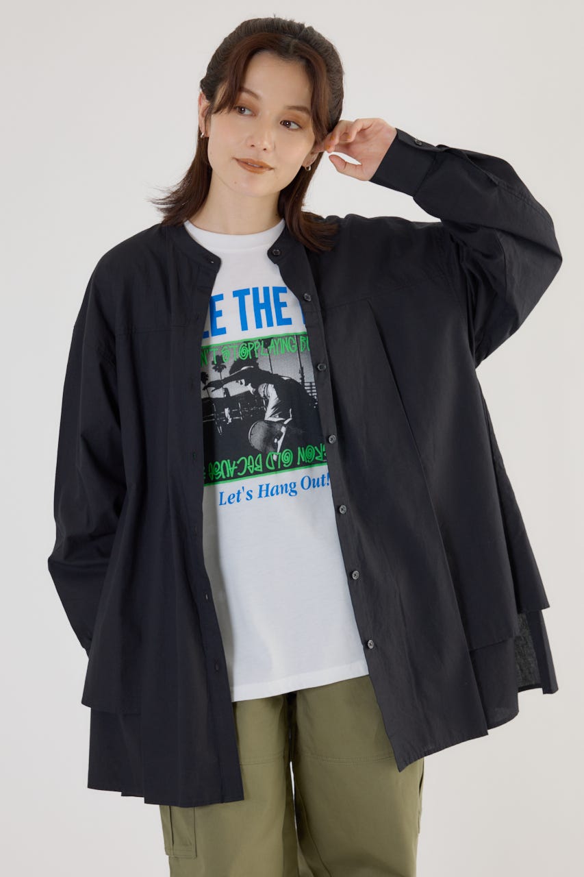 切替デザインとサイドのティアードで甘くなりすぎないシャツチュニック。