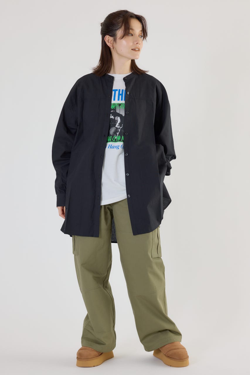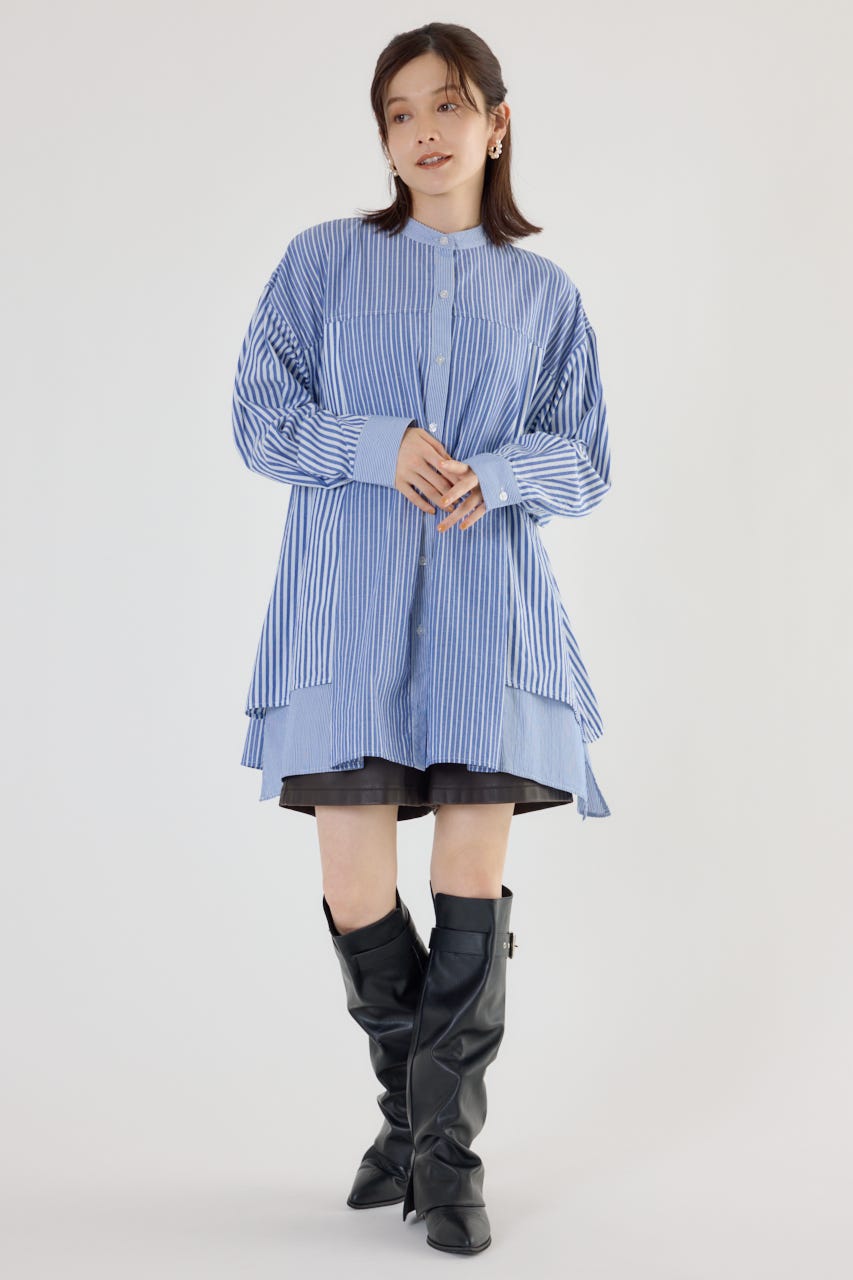 リラックスパンツやデニムを合わせるスタイルはもちろん、ショートボトムを着用してミニワンピース風にスタイリングするのもおすすめです。