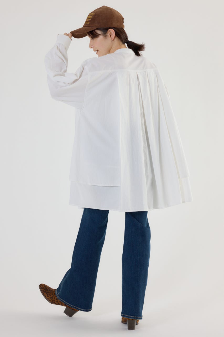 たっぷりとしたタックを身頃にあしらった動きのあるシルエットに仕上げています。