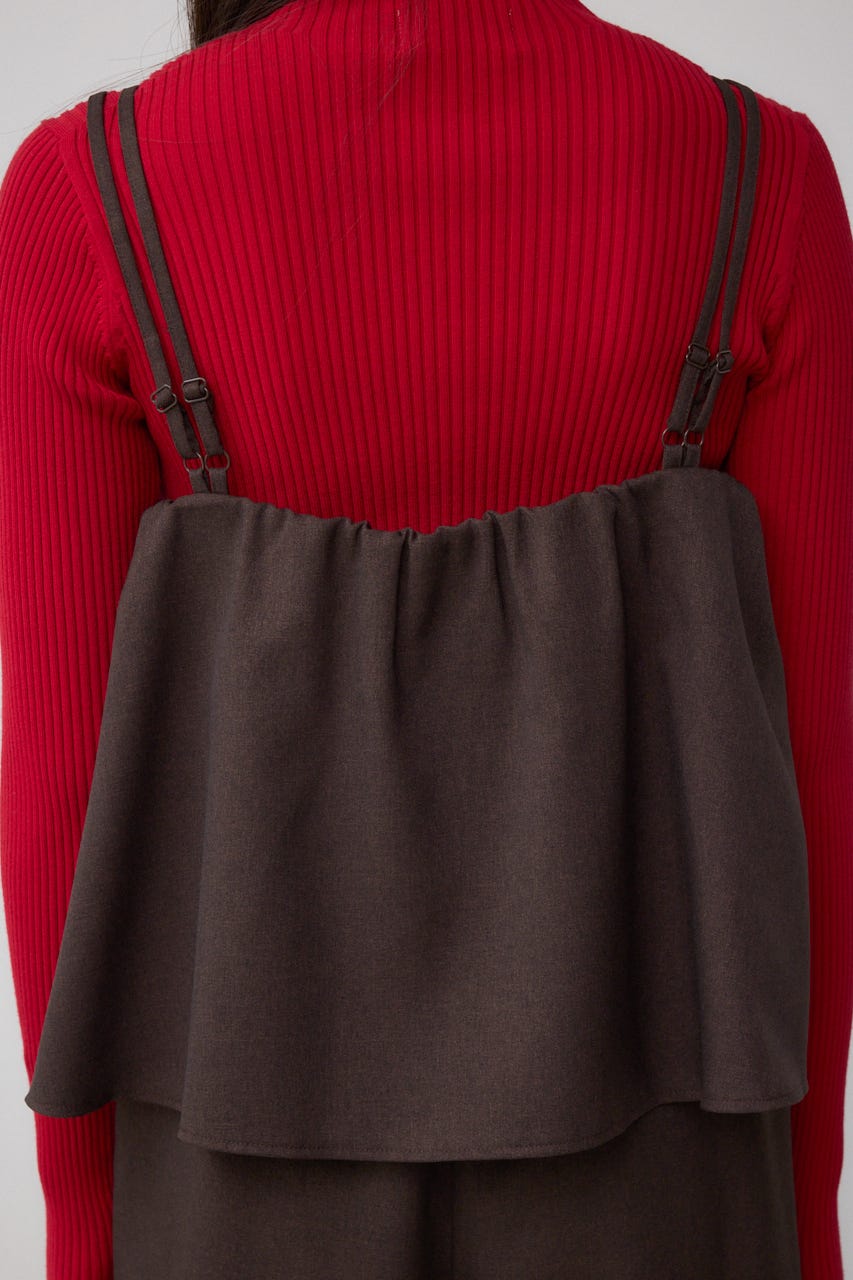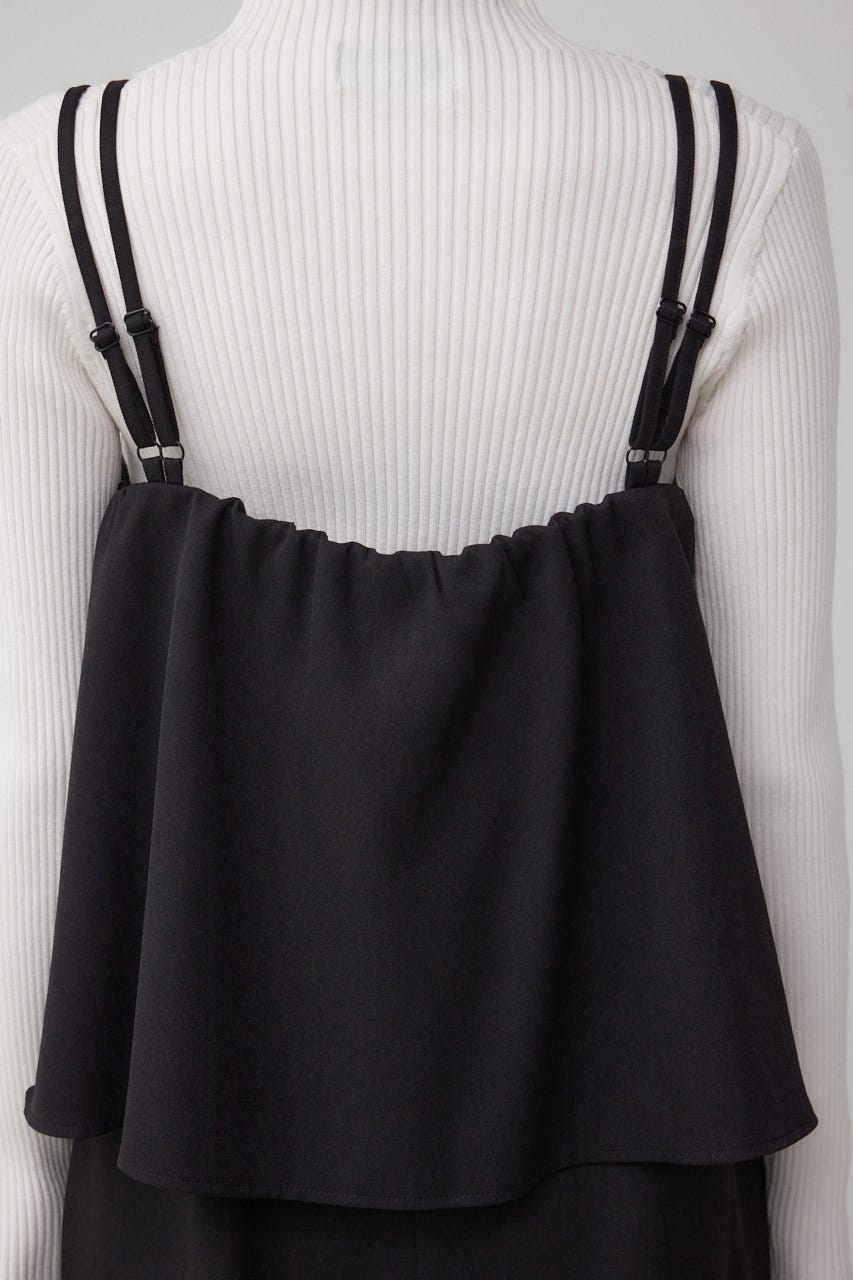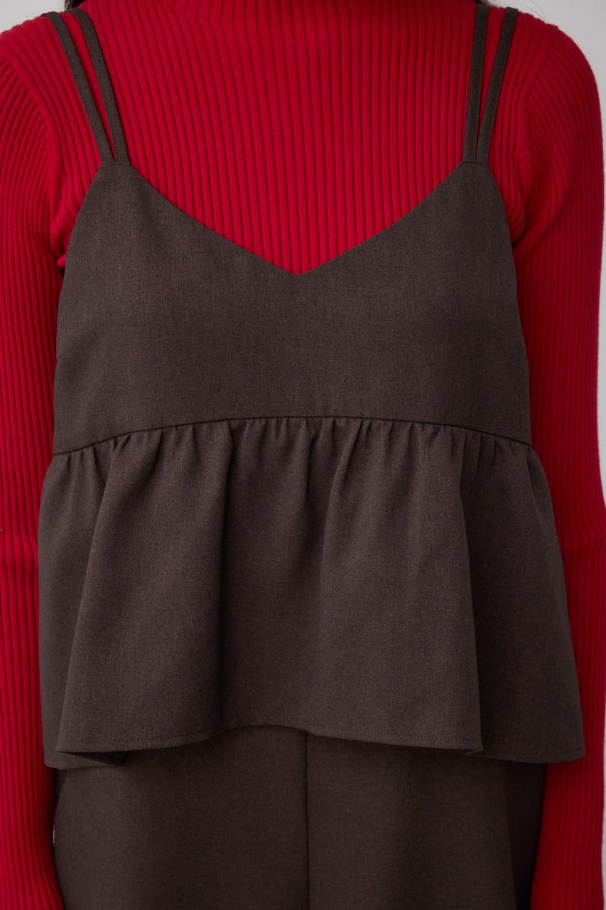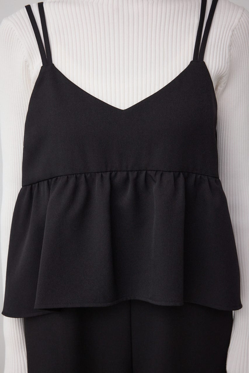 女性らしいシルエットが特徴のキャミ型ビスチェとワイドシルエットのカジュアルなパンツを組み合わせたオールインワン。