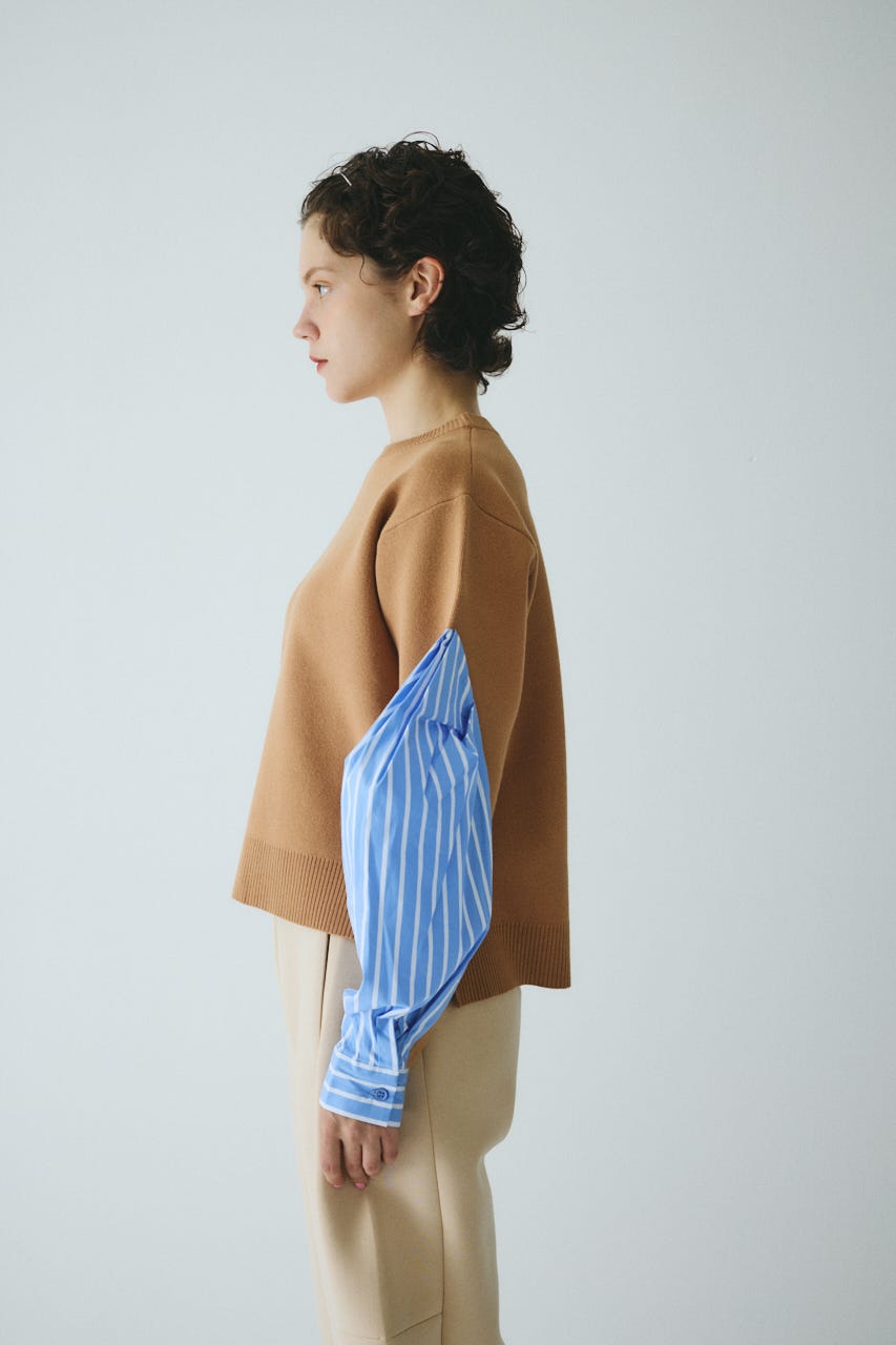 【BEG】【BLK】(ニット部分)コットン:68ポリエステル:32(布帛部分)コットン:75ナイロン:20ポリウレタン:5【GRY】(ニット部分)ポリエステル:66コットン:33レーヨン:1(布帛部分)コットン:75ナイロン:20ポリウレタン:5
