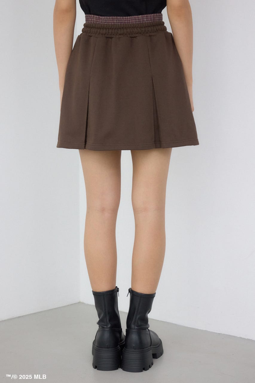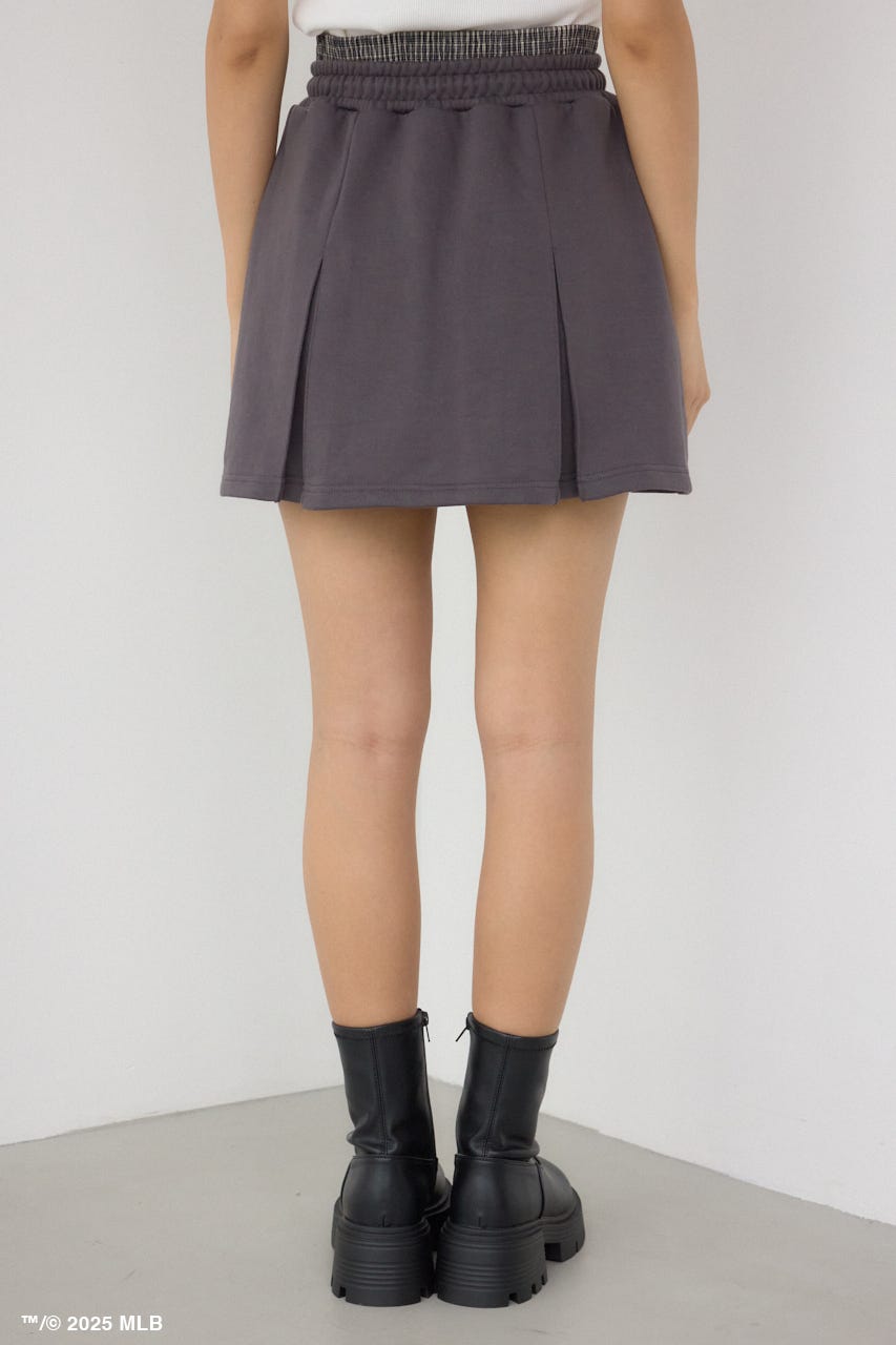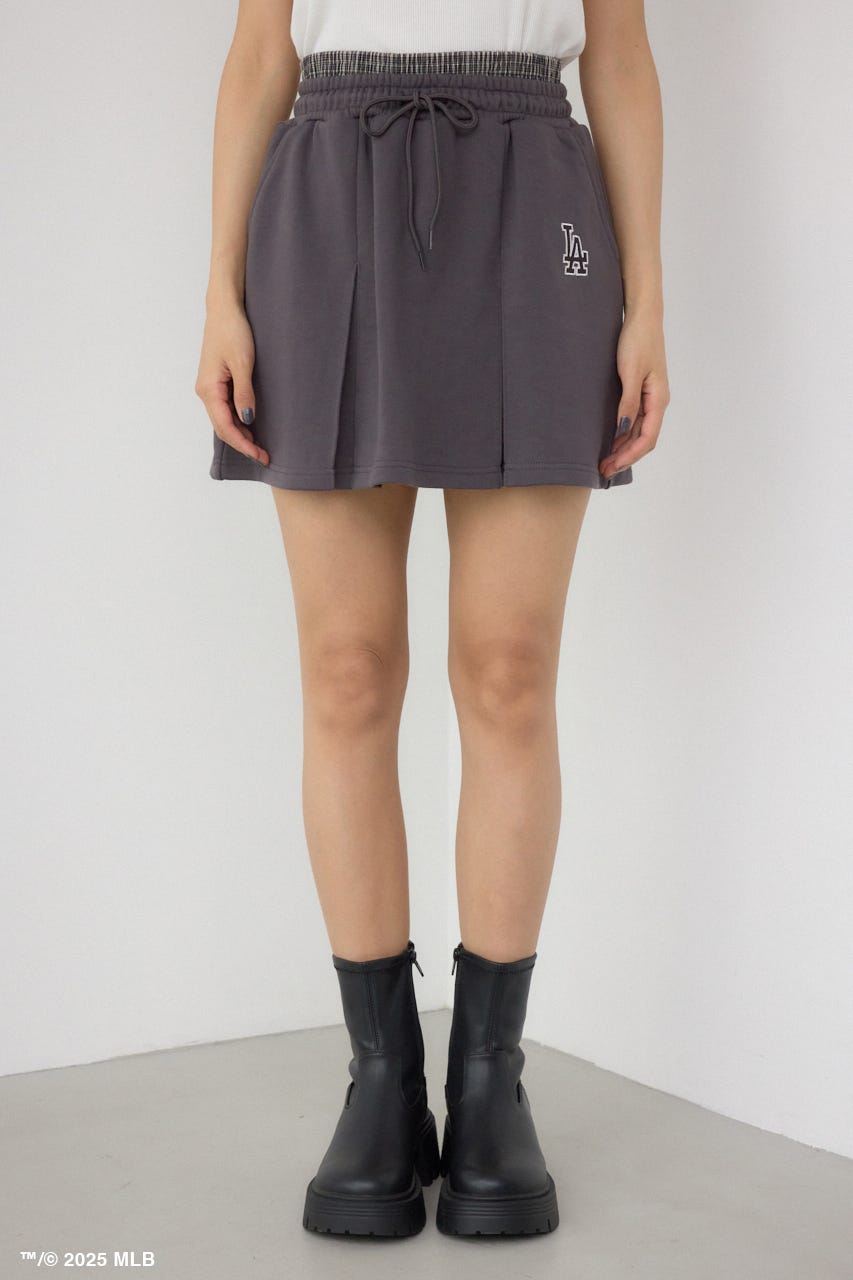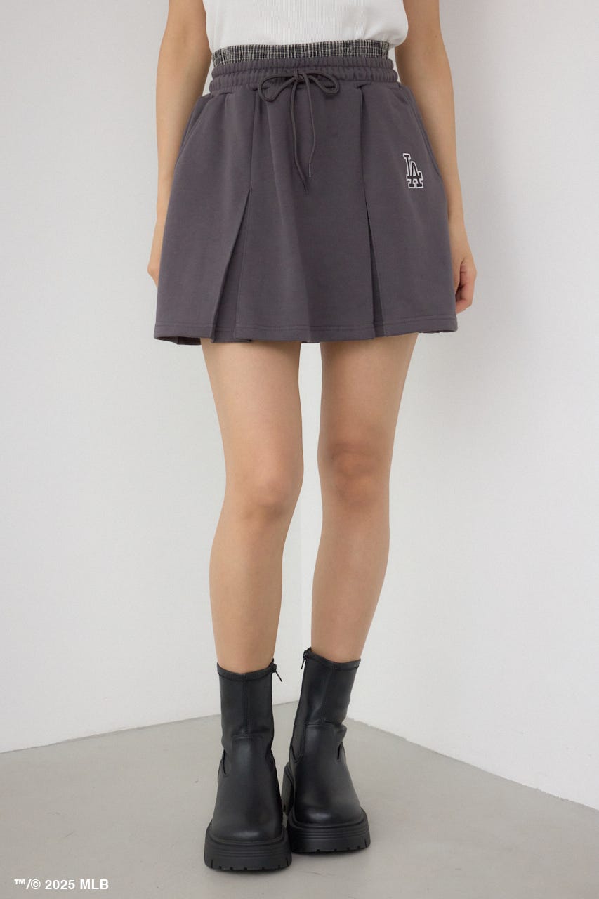MLBロゴ刺繍を施したプリーツミニスカート。