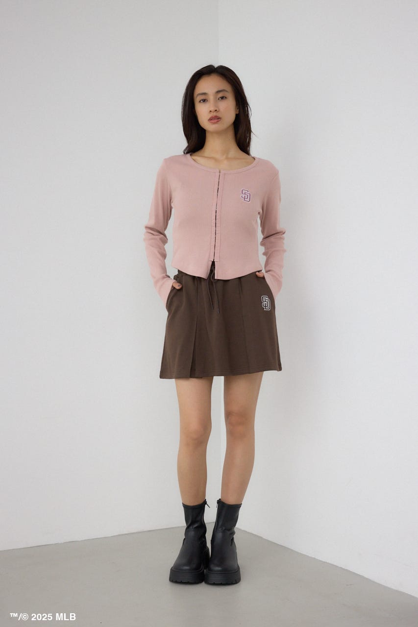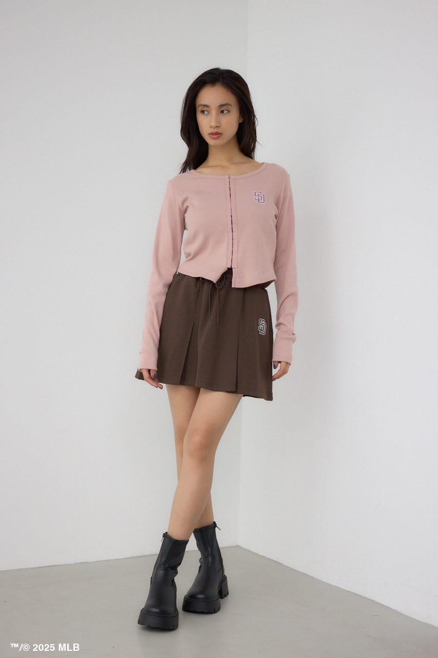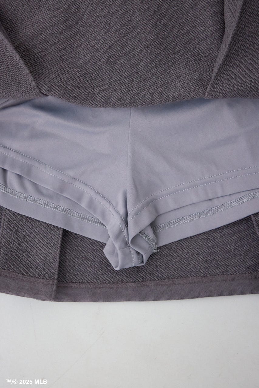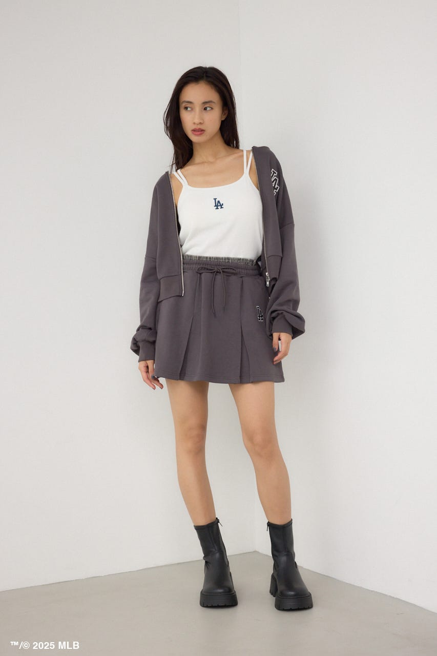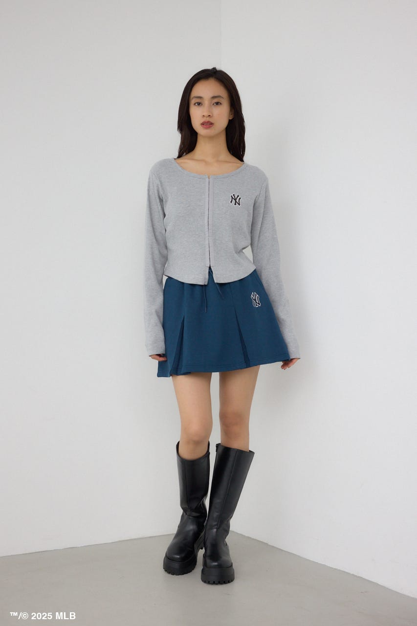 MLBロゴ刺繍を施したプリーツミニスカート。