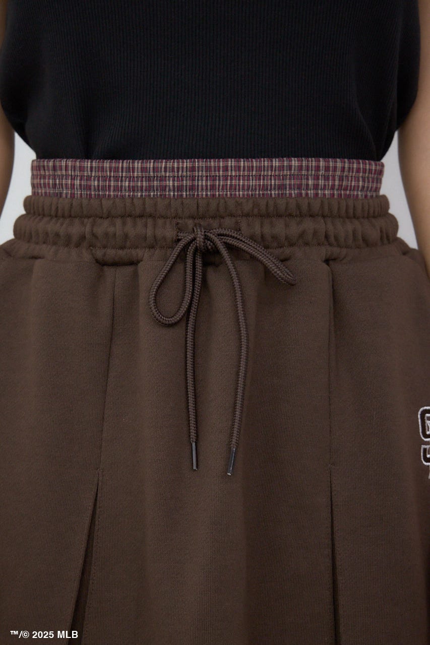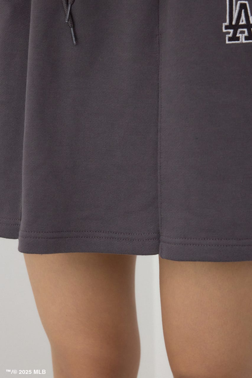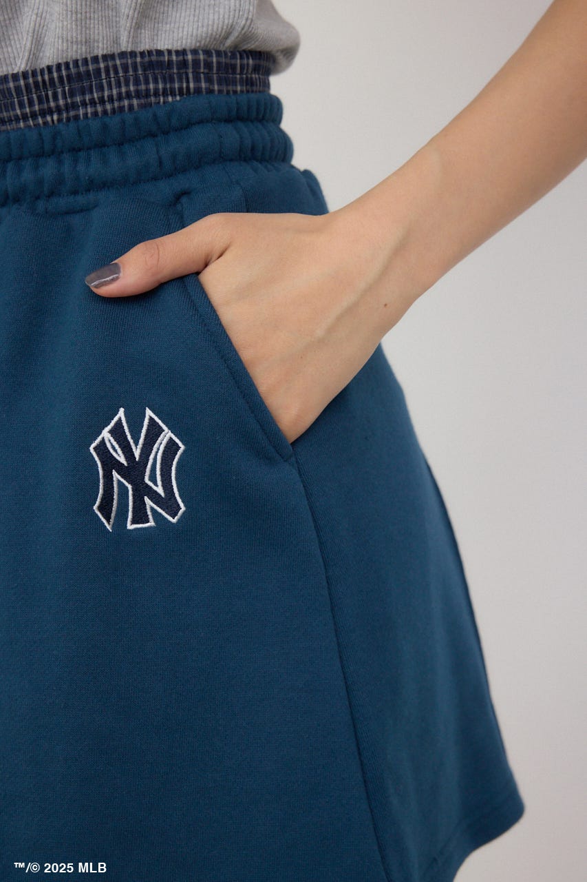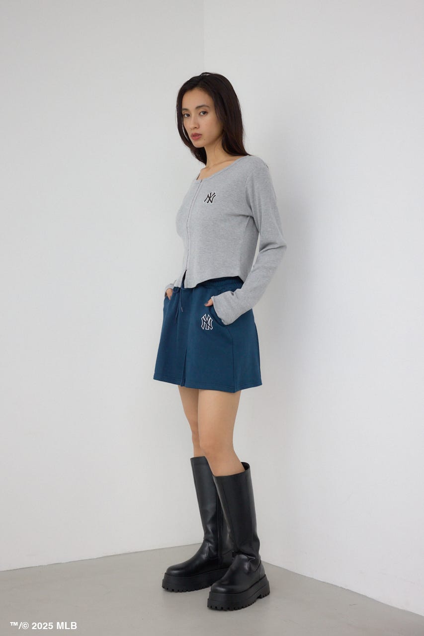 MLBロゴ刺繍を施したプリーツミニスカート。