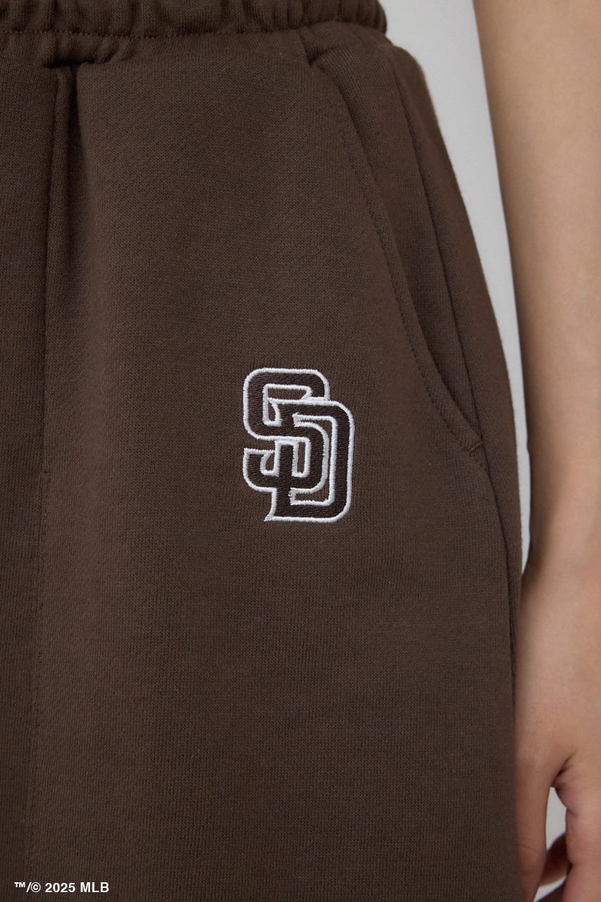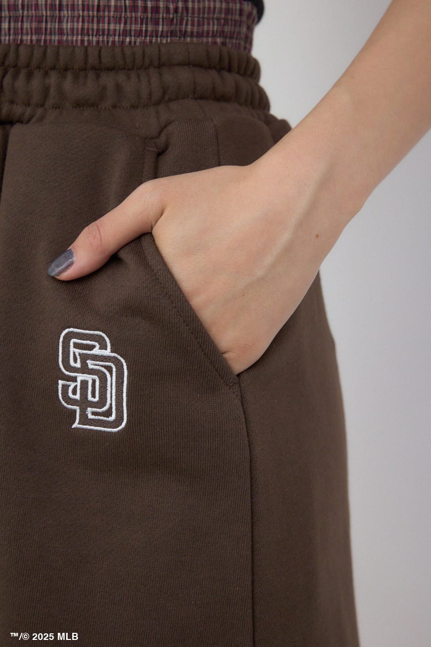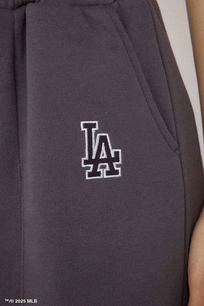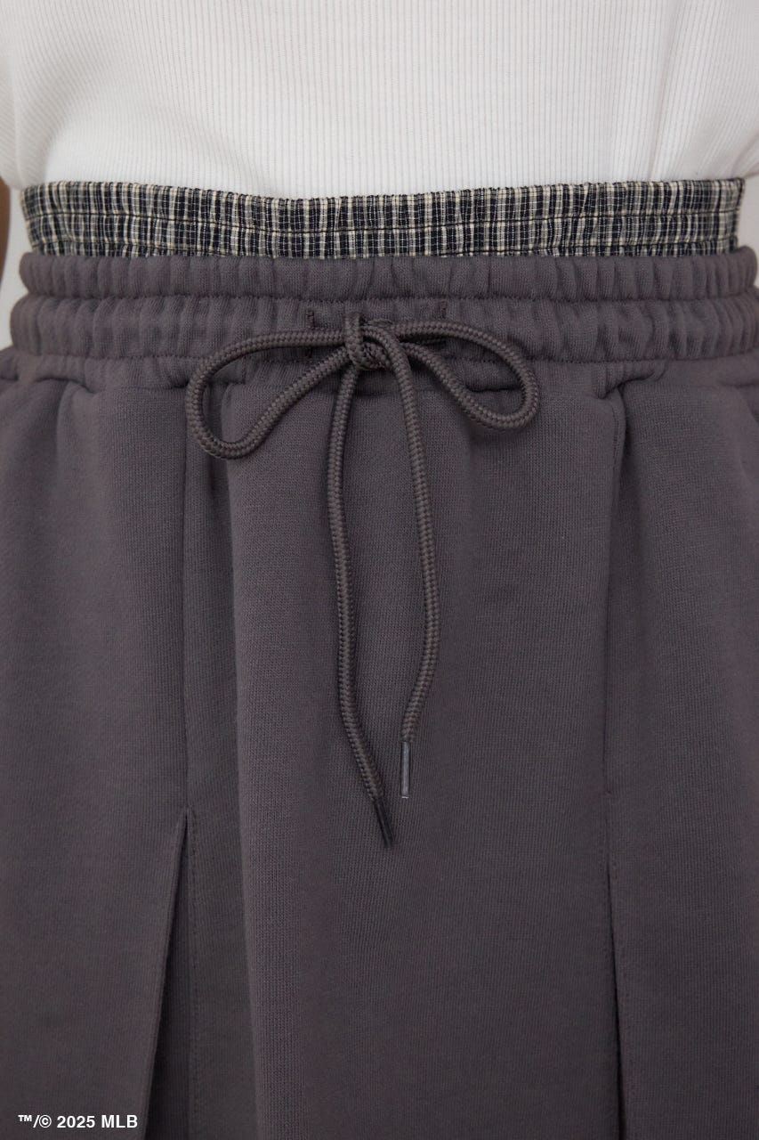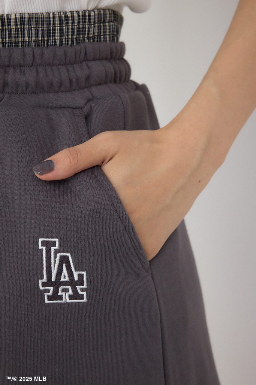 MLBロゴ刺繍を施したプリーツミニスカート。