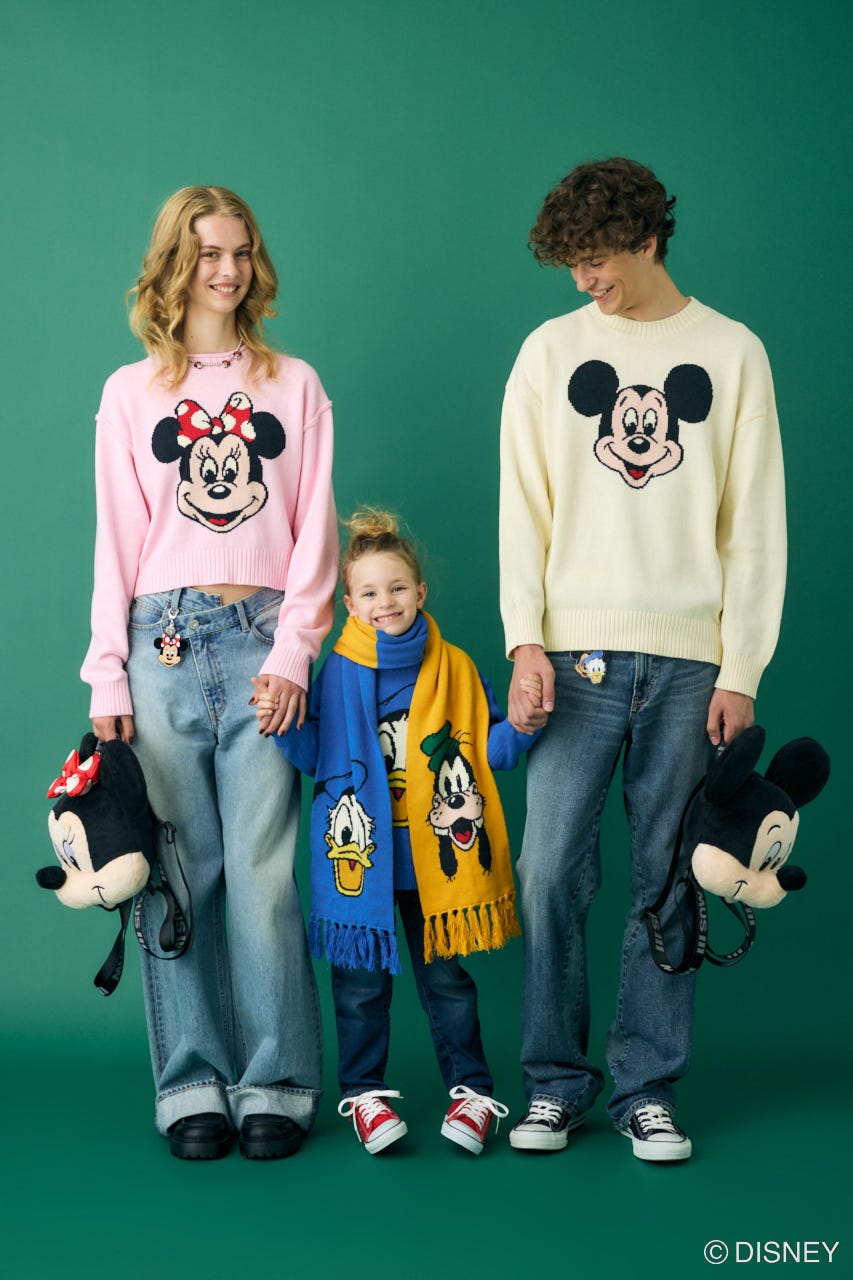 ニットトップスとお揃いの柄で合わせたり、違うキャラクターを合わせたりと楽しみ方が広がります。
