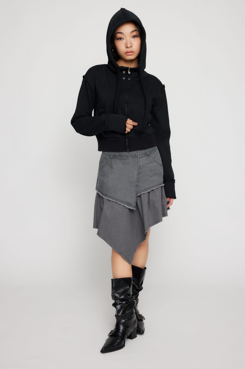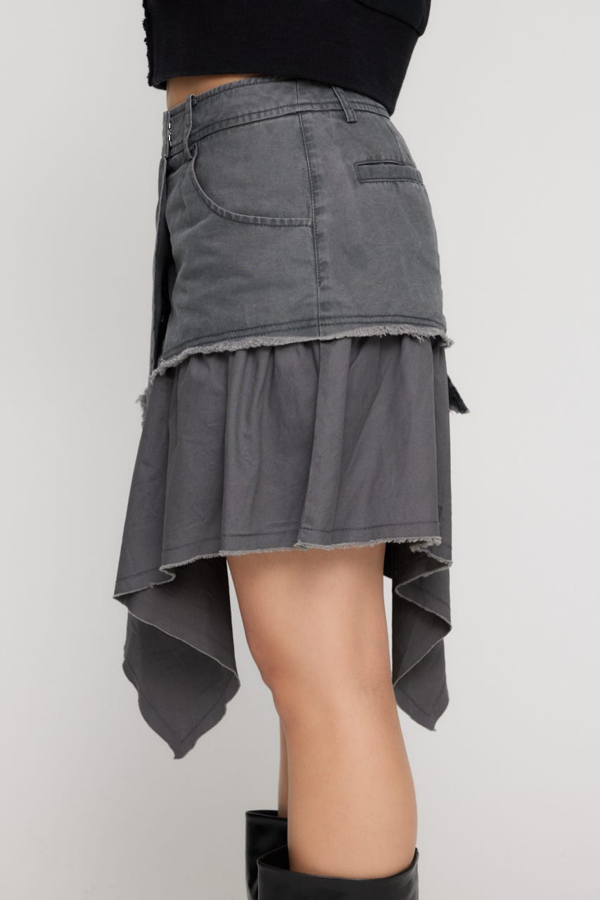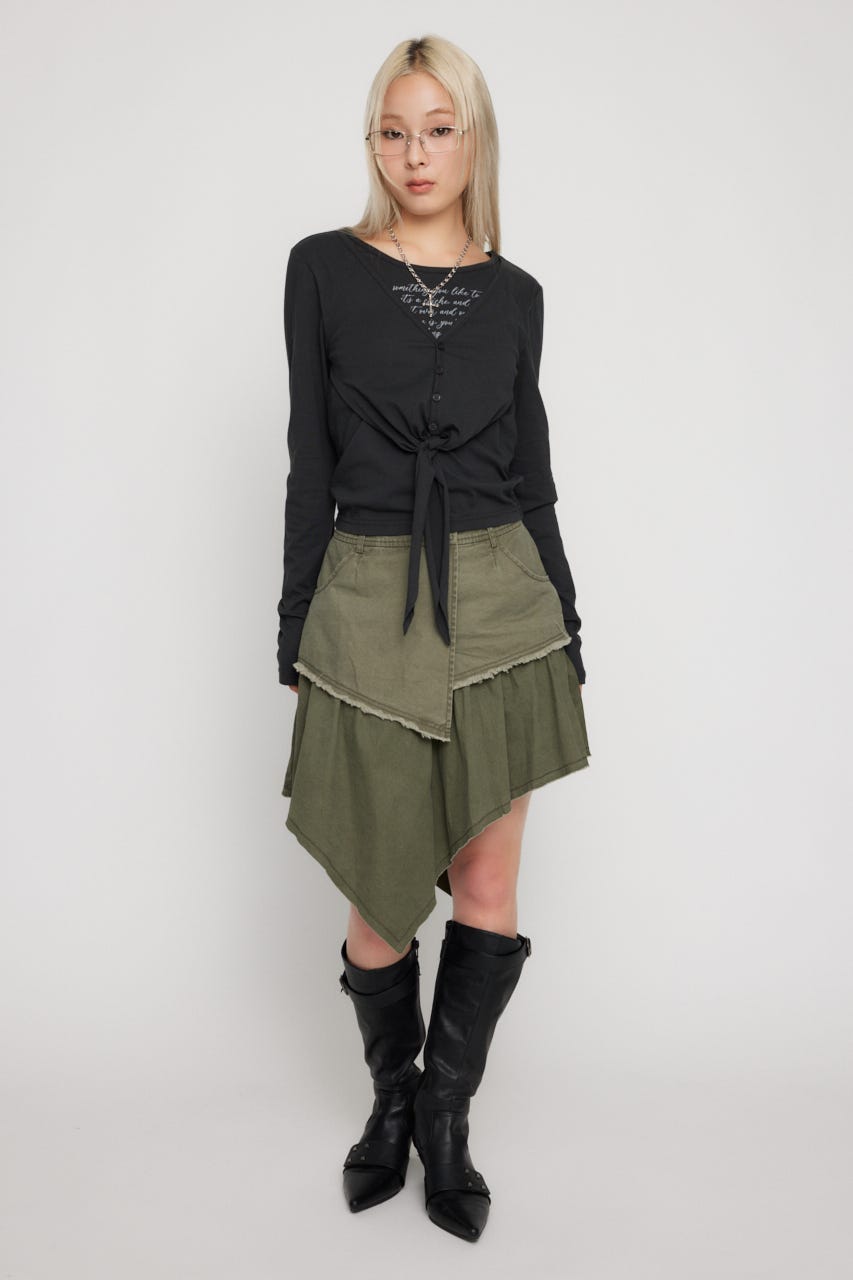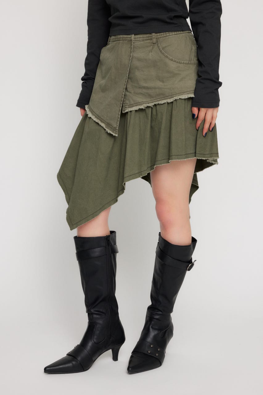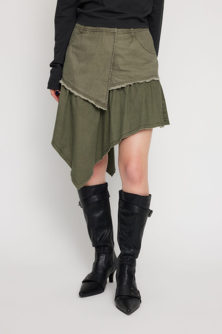 ■POINT:裾はアシンメトリーにカットされたミドル丈のミリタリースカート。