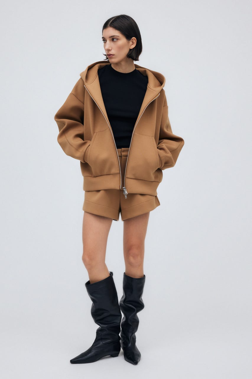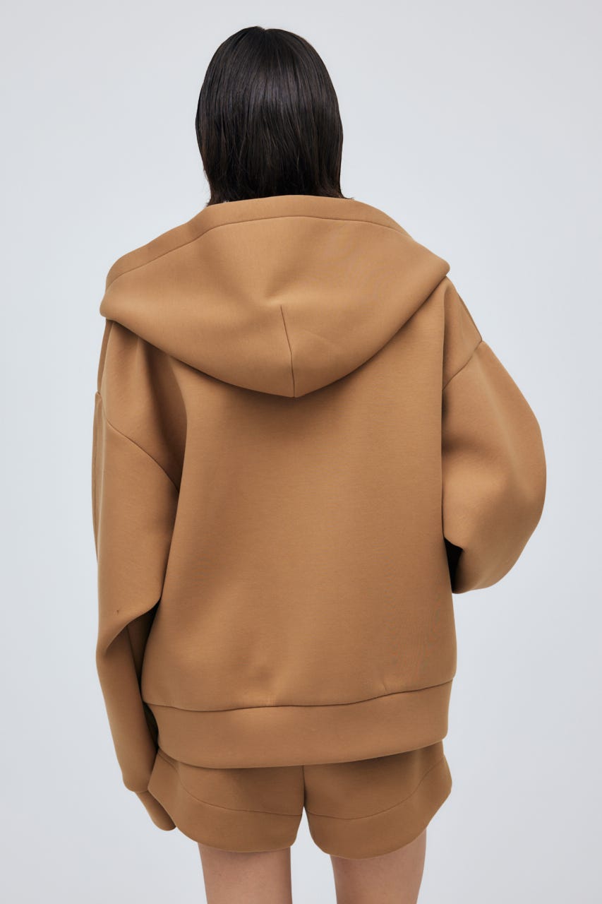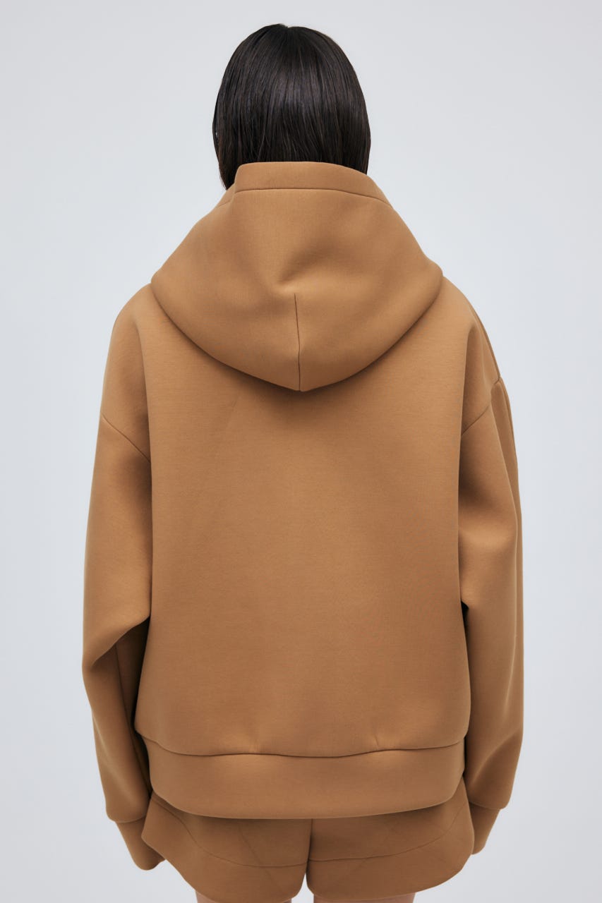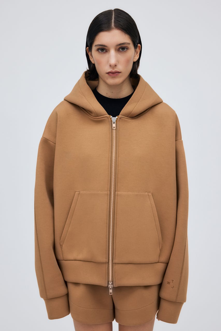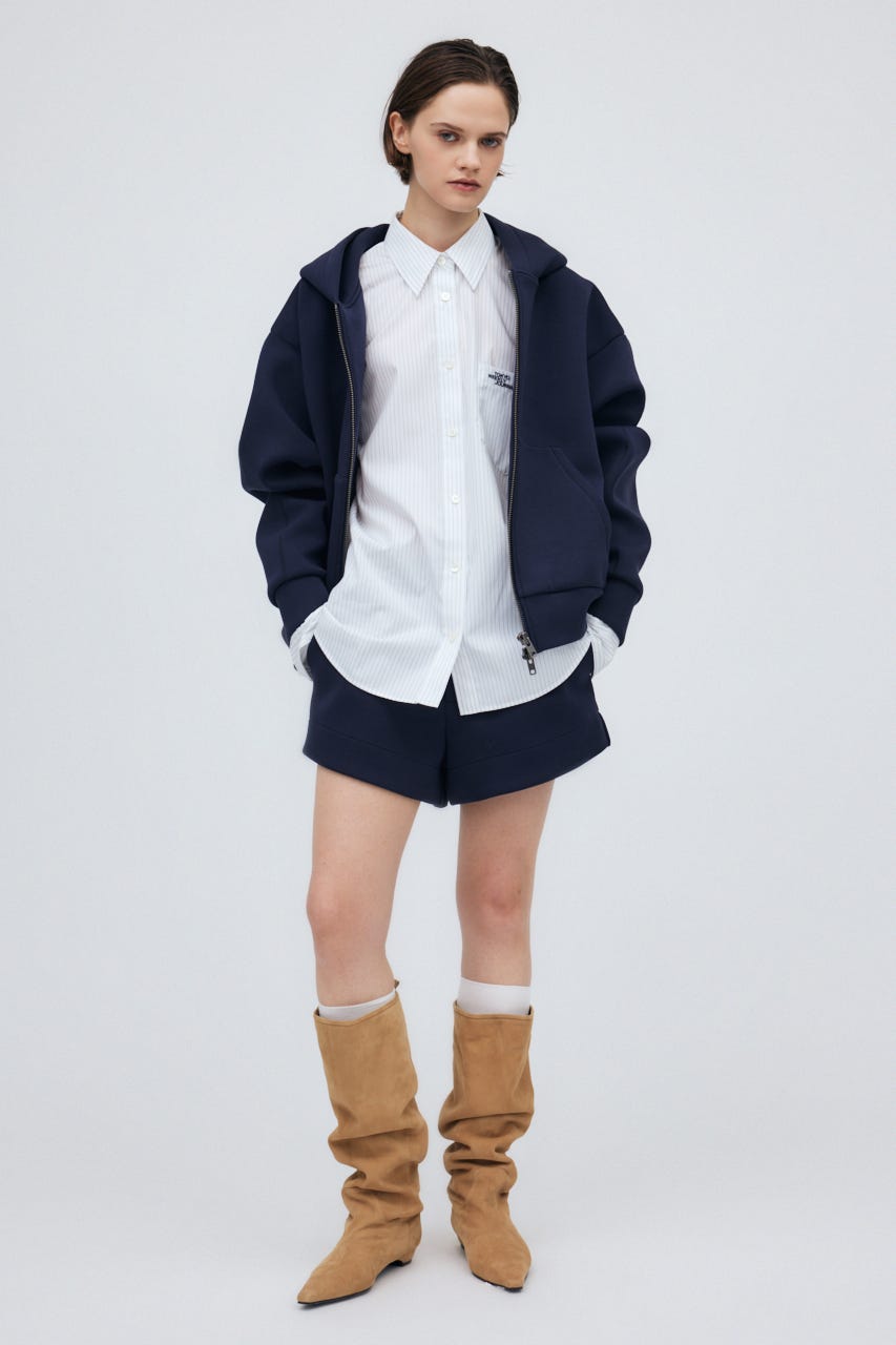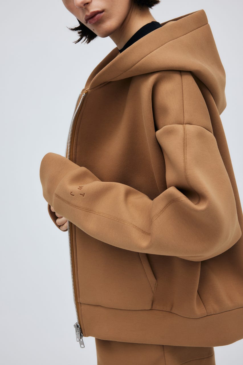 立体感のあるジップアップフーディは、オーバーサイズデザインでスタイリッシュながらも軽い着用感や防寒性と実用性も兼ね揃えた一着。