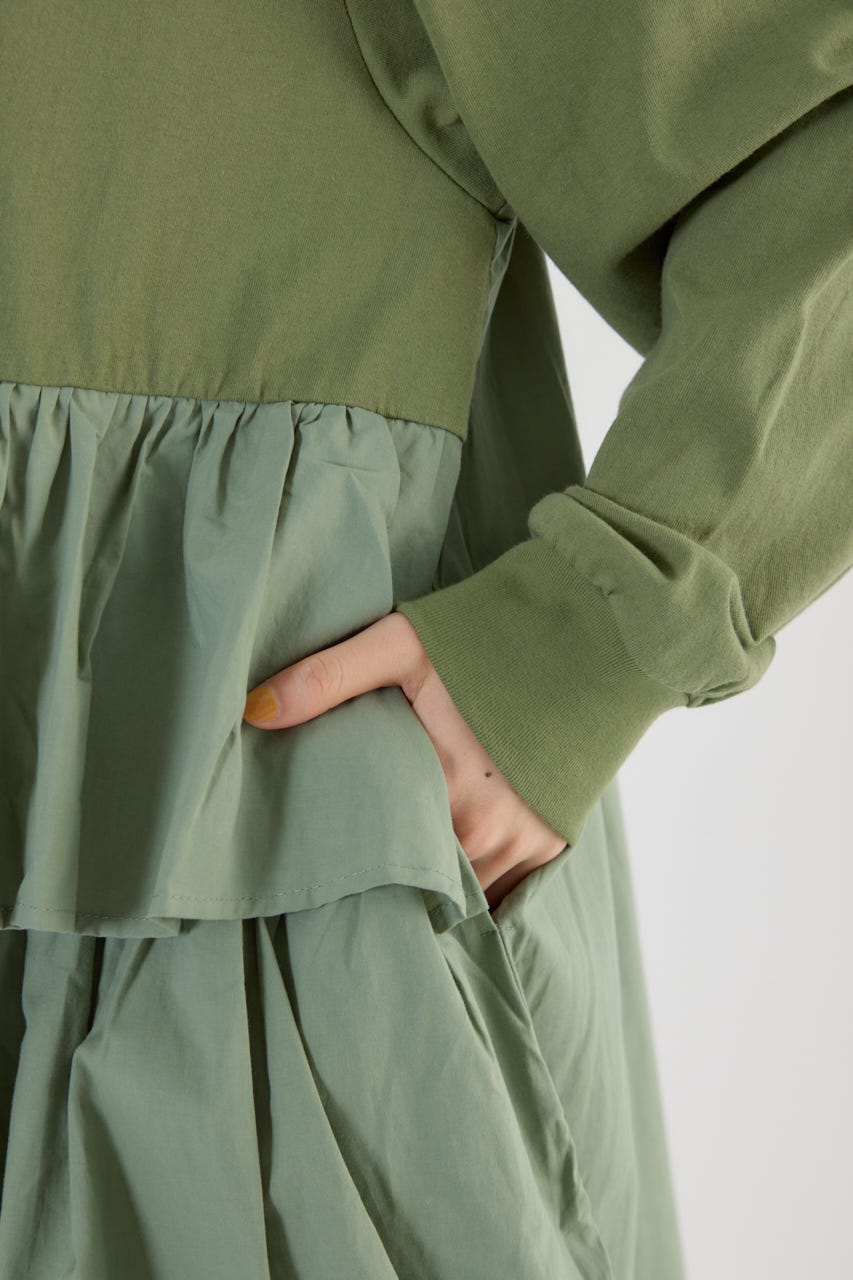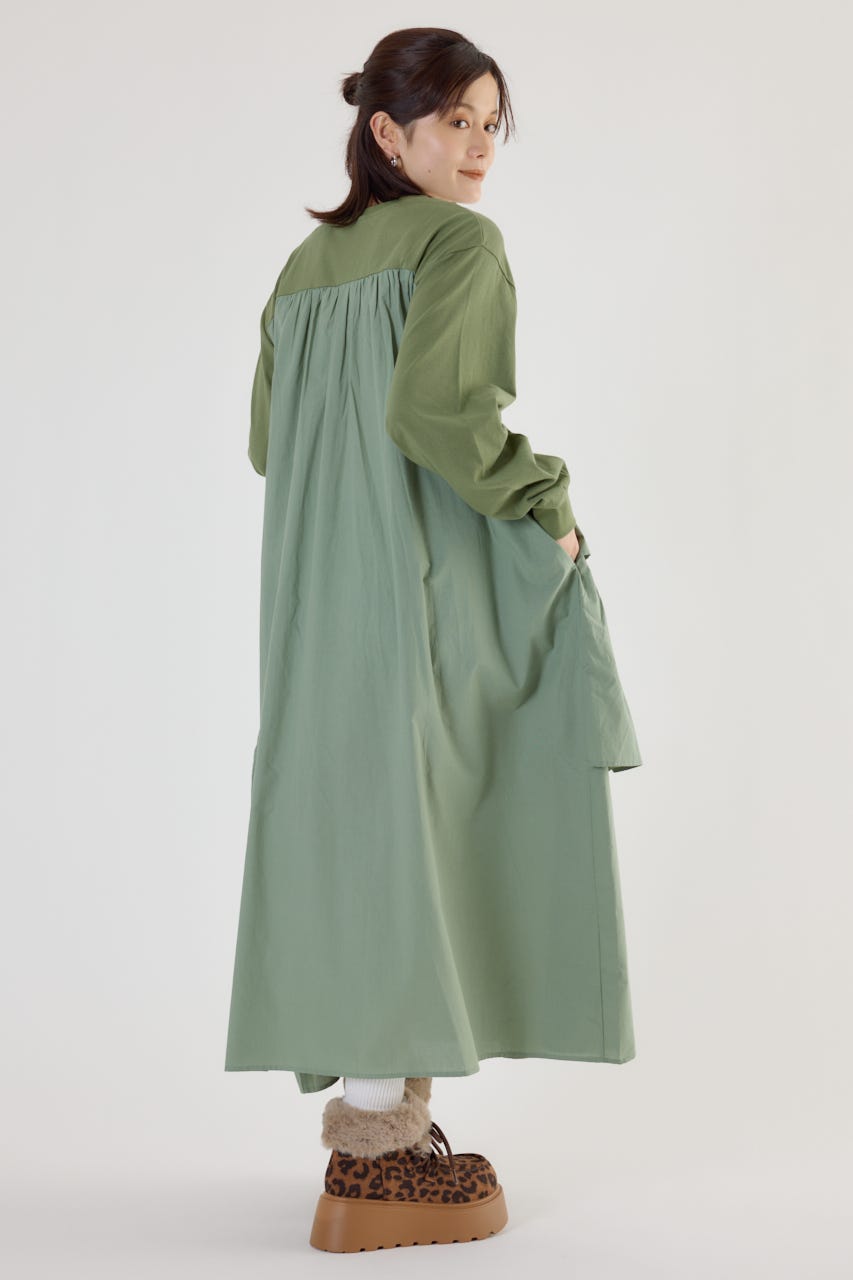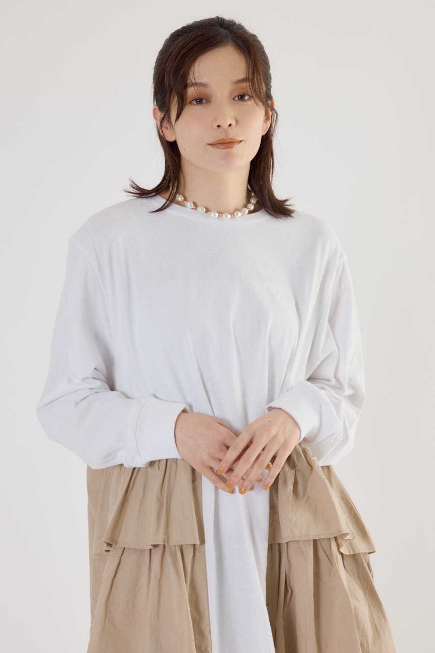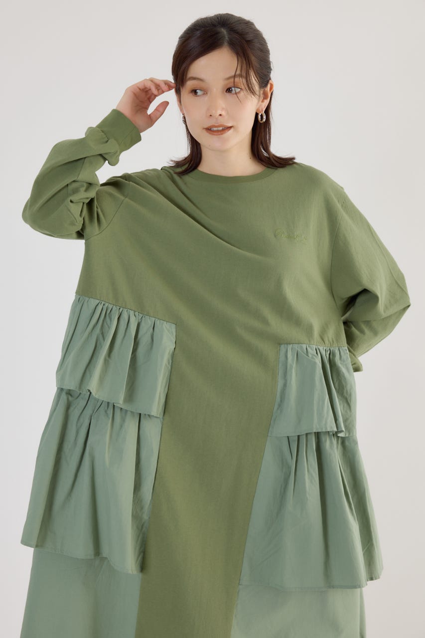 天竺と布帛素材のドッキングが1枚で主役級なワンピース。