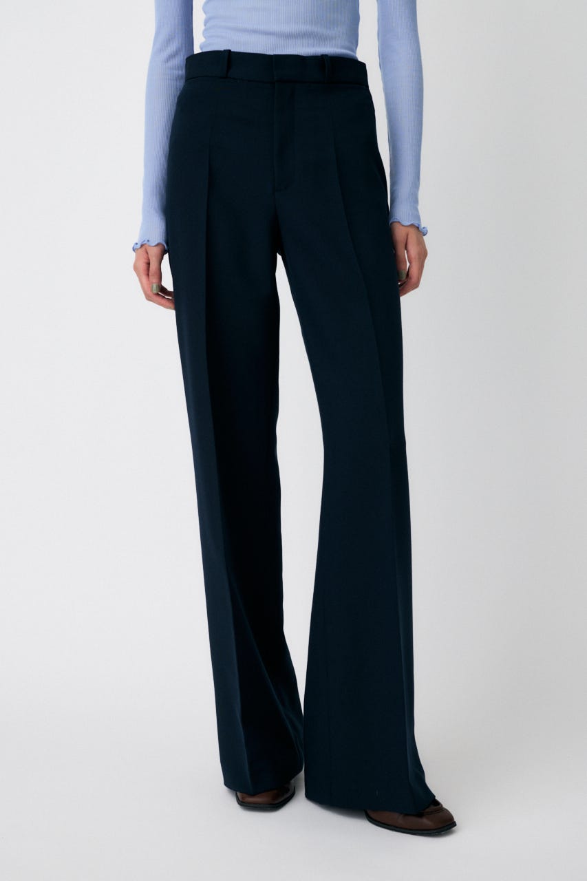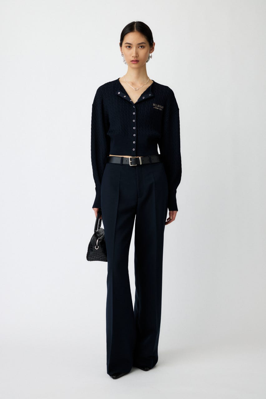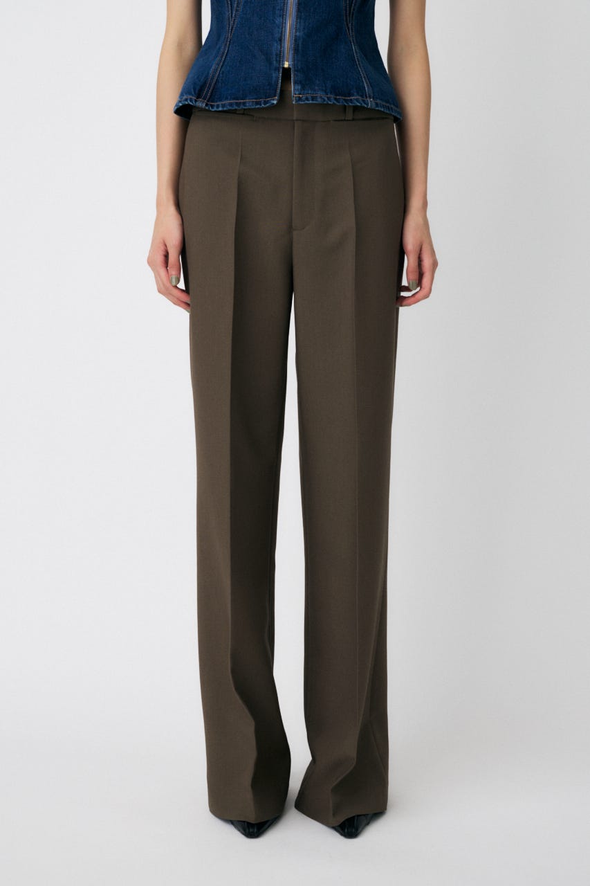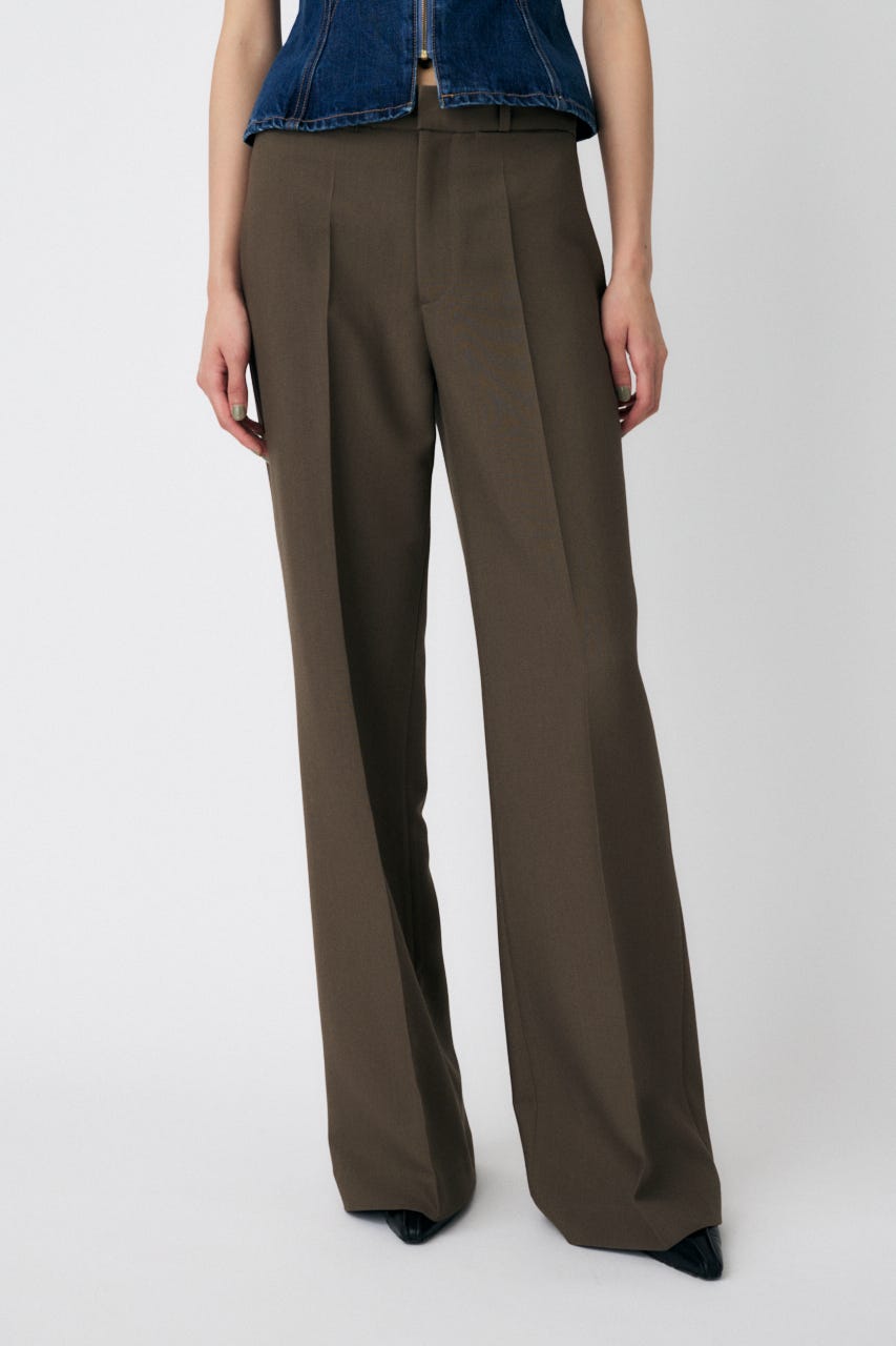 膝から裾にかけて幅を出した微フレアシルエットのクラシカルなトラウザー。