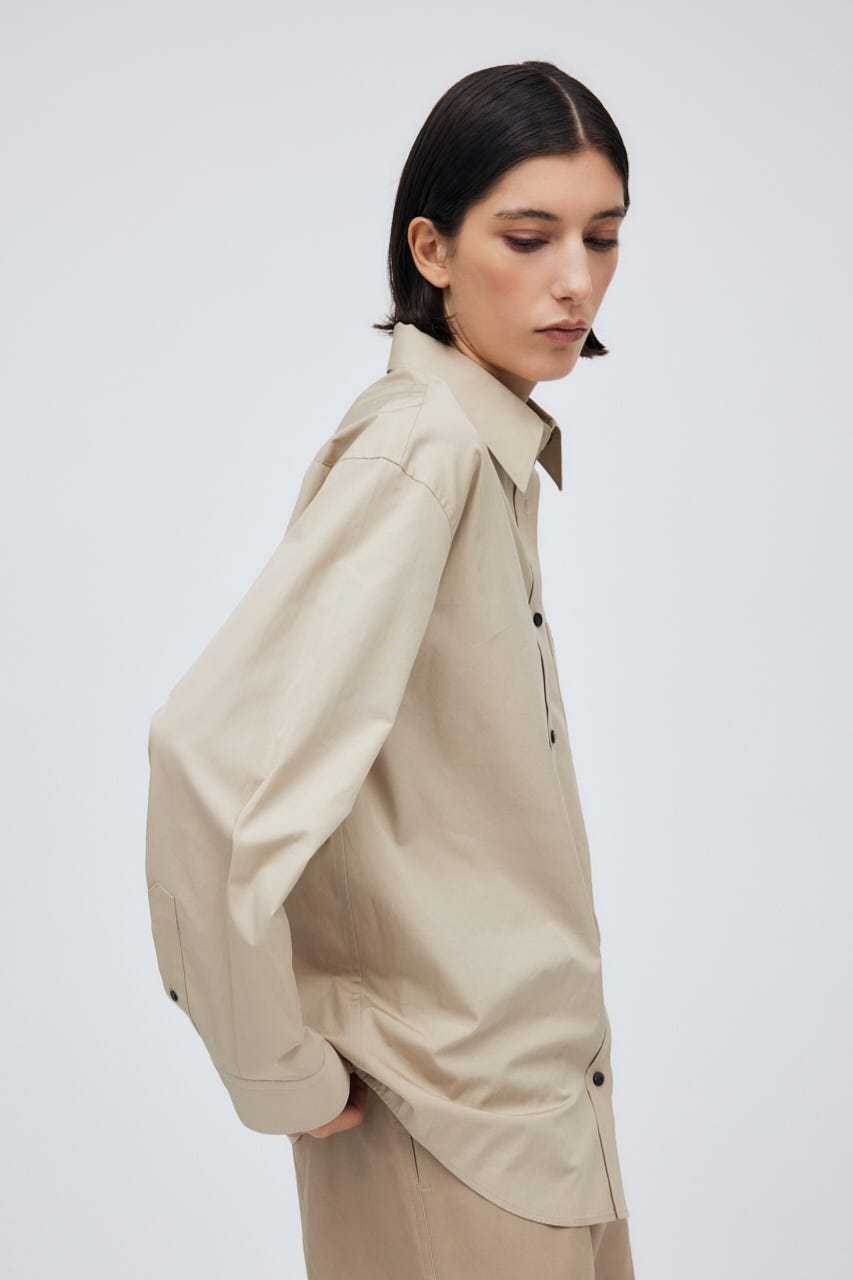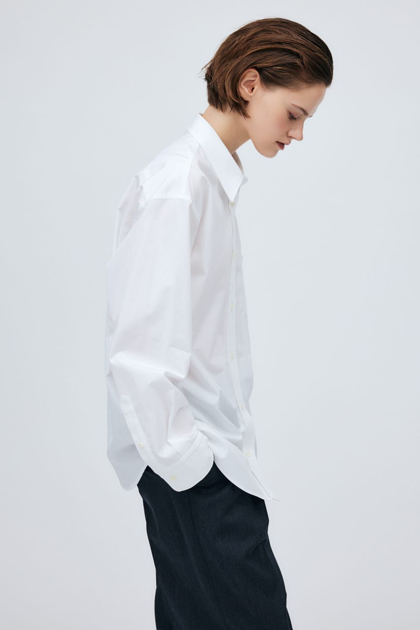 ベーシックなアイテムだからこそ上質素材やサイジングにこだわり、メンズライクな襟がマニッシュな印象に仕上げてくれる一枚。