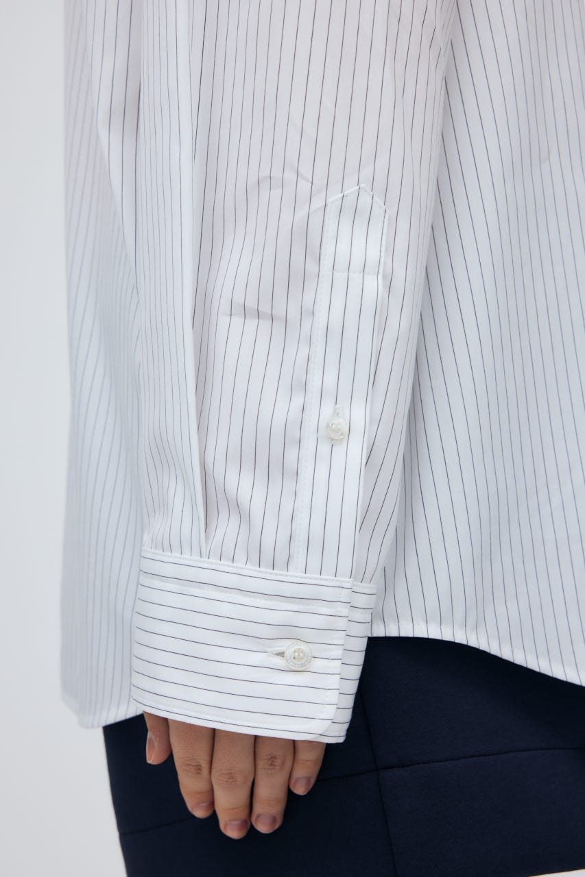 100/2の細く綺麗な糸を高密度に織ることにより、程よいハリコシ感のある綿100%のストライプ素材を使用。