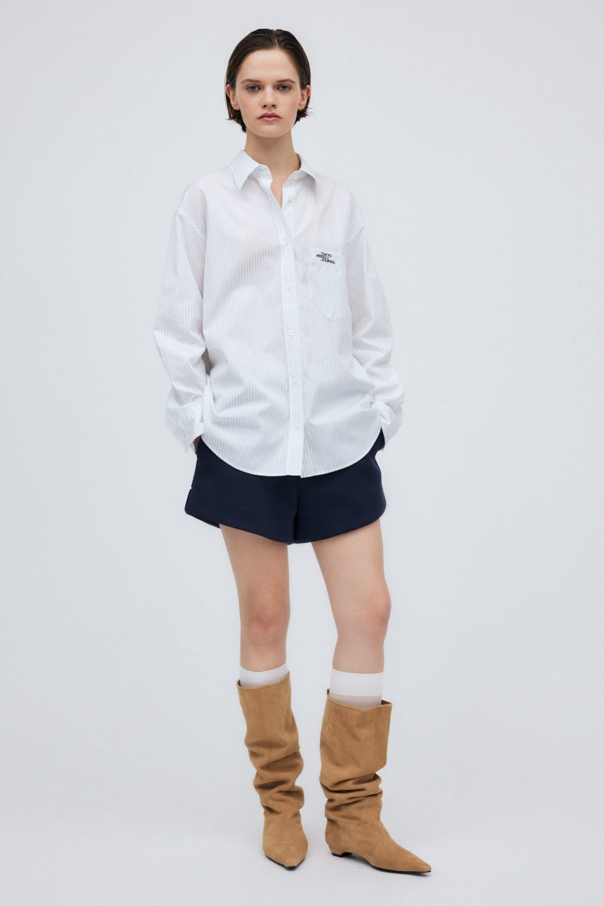 ベーシックなアイテムだからこそ上質素材やサイジングにこだわり、メンズライクな襟がマニッシュな印象に仕上げてくれる一枚。