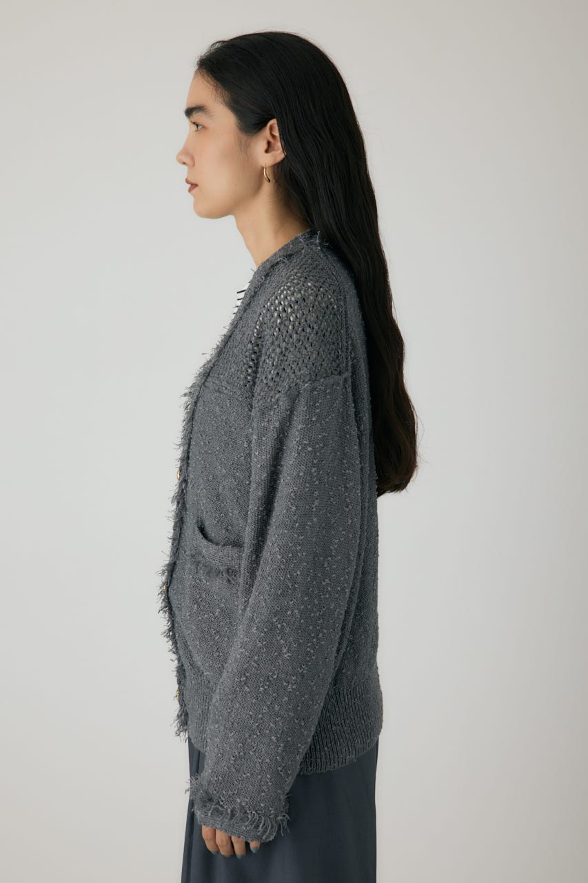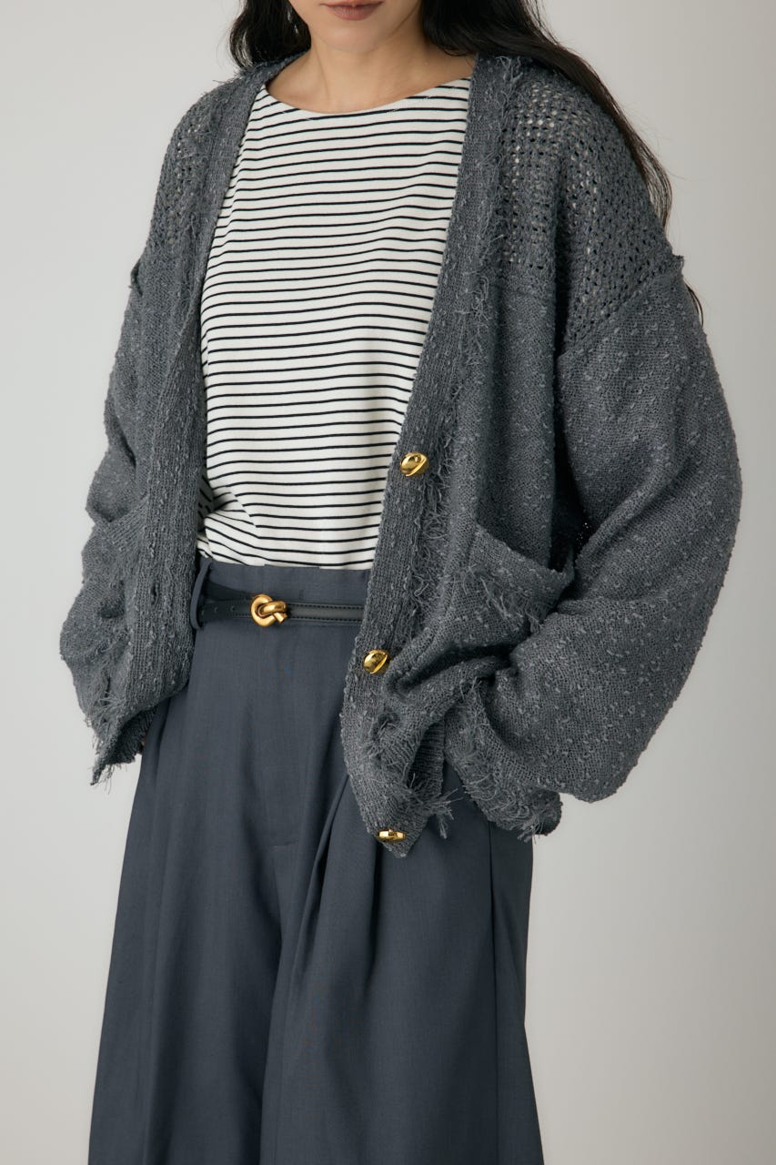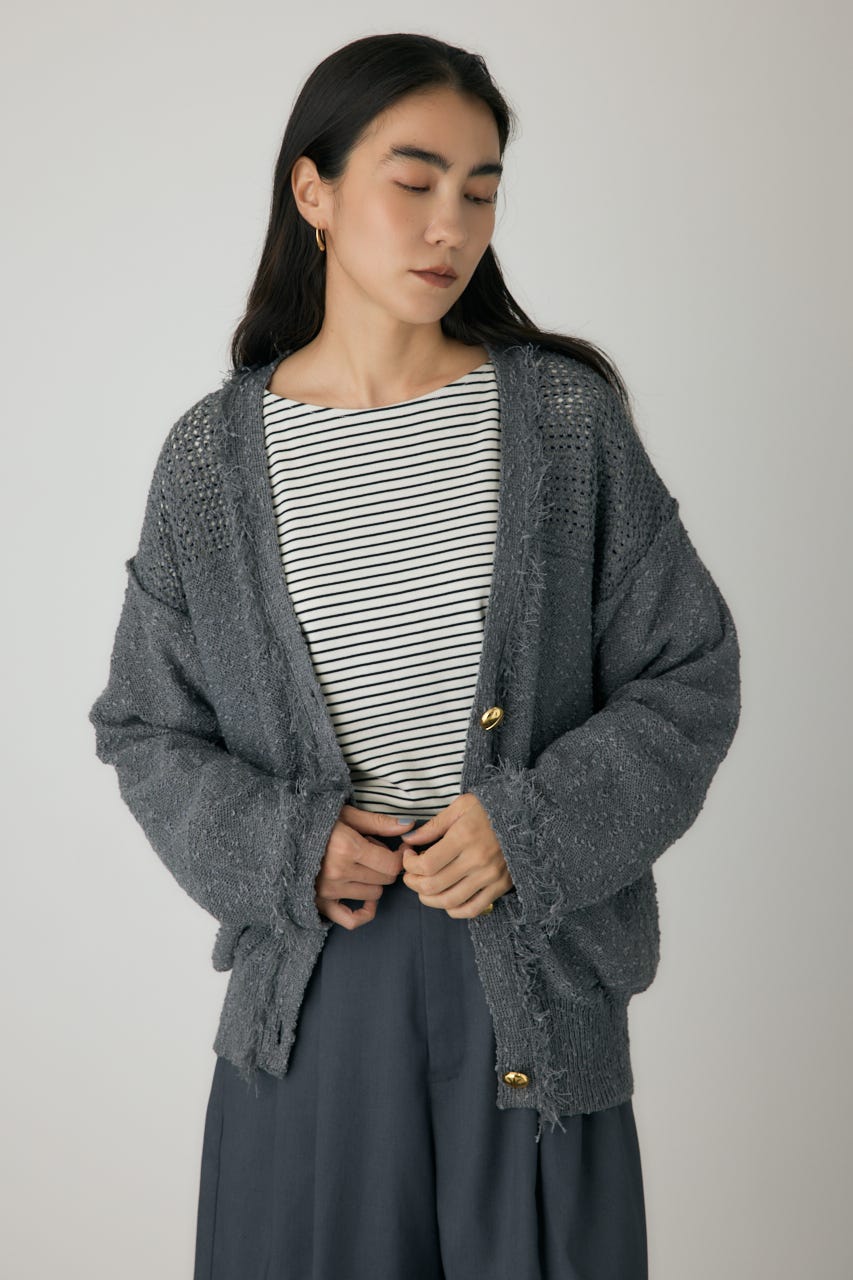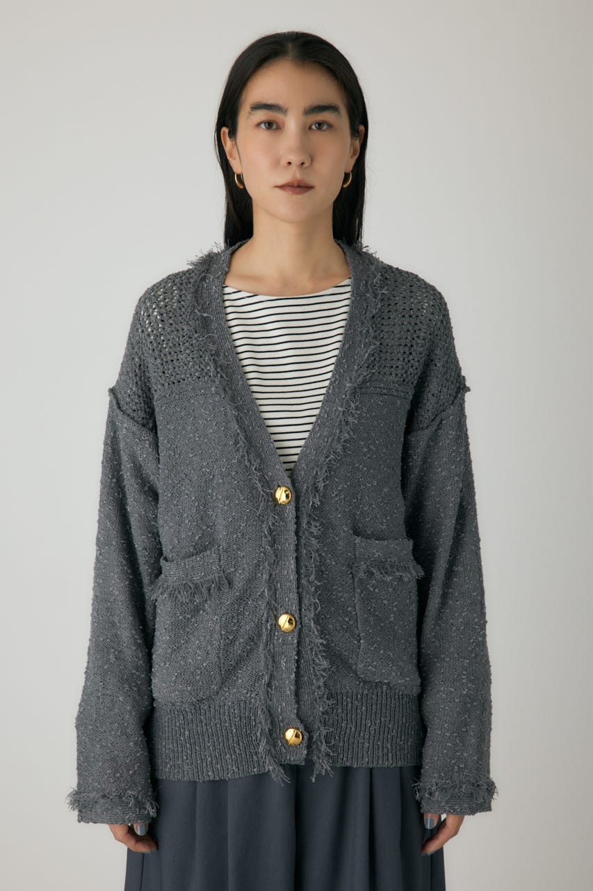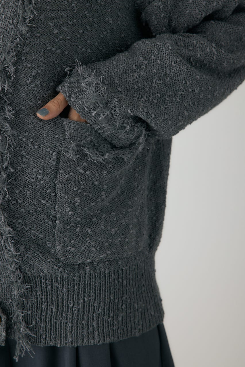ツイードライクなスラブミックスの編み地がポイントのカーディガン。