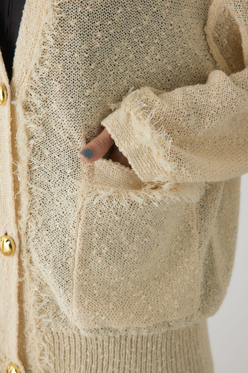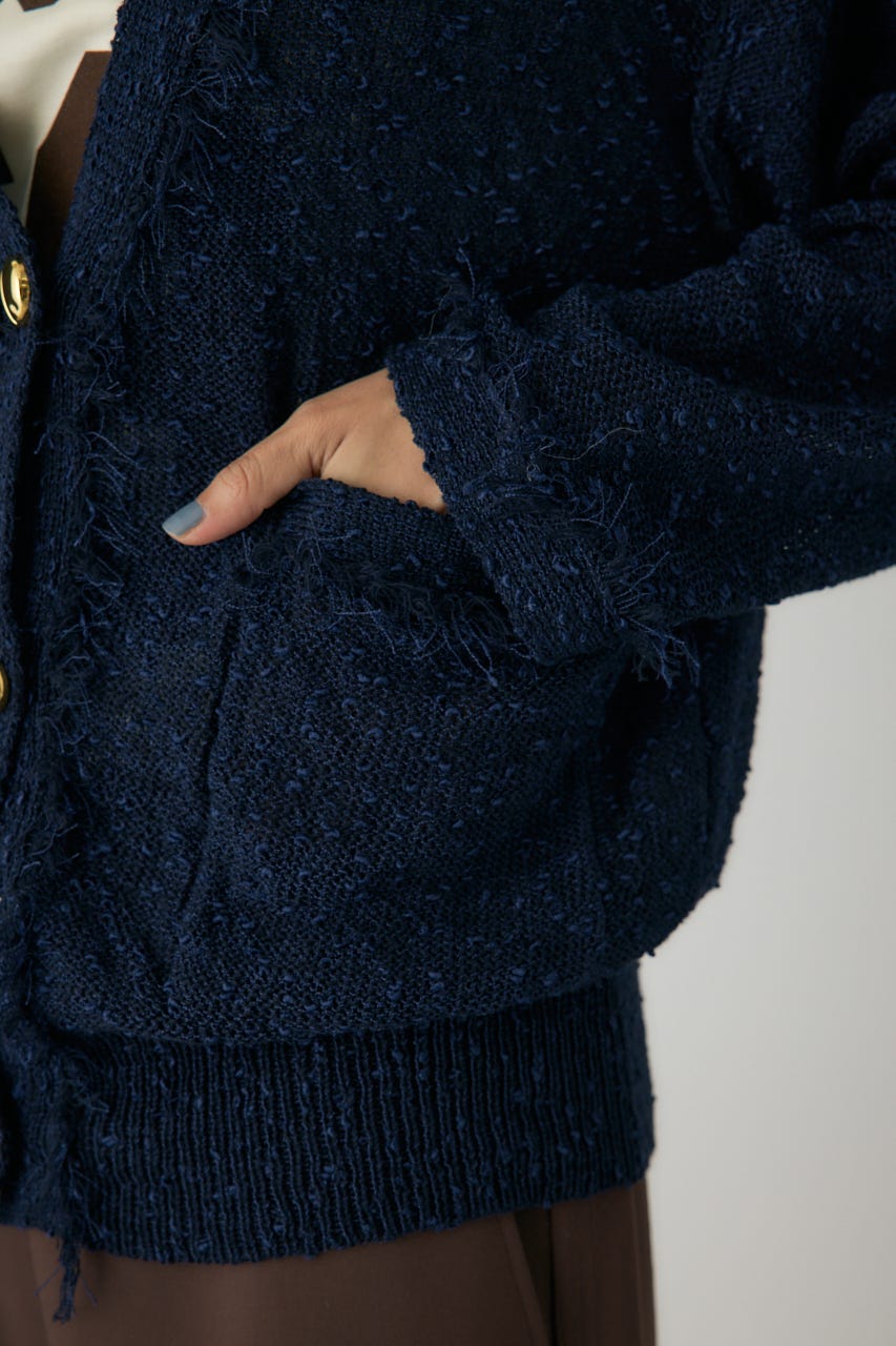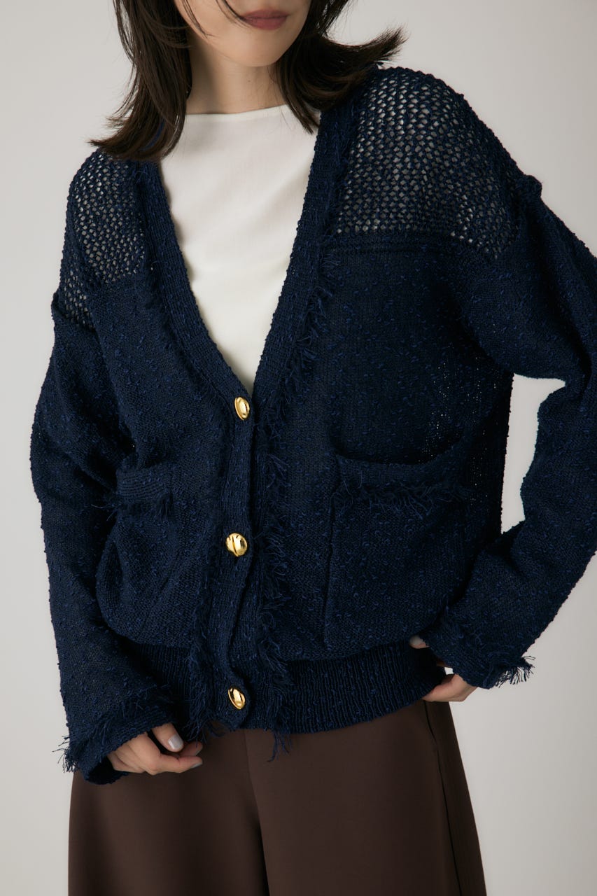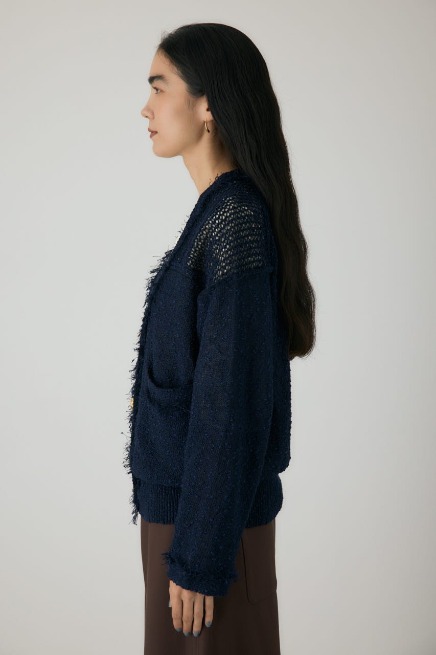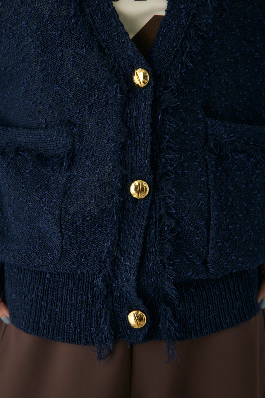 ツイードライクなスラブミックスの編み地がポイントのカーディガン。
