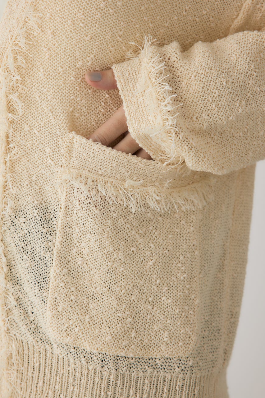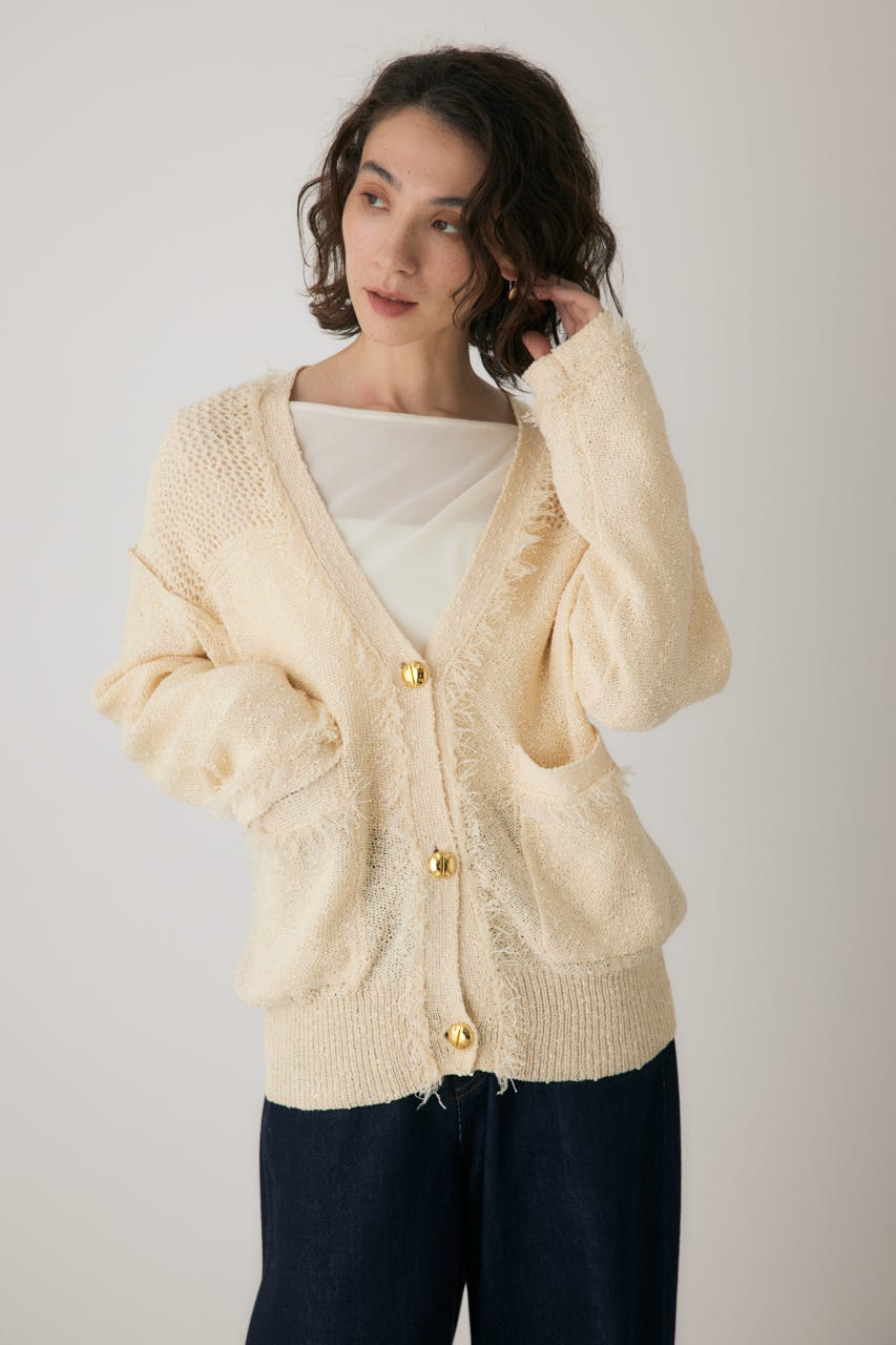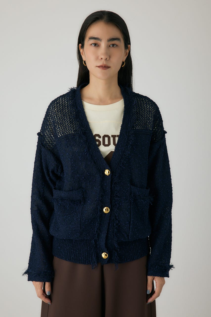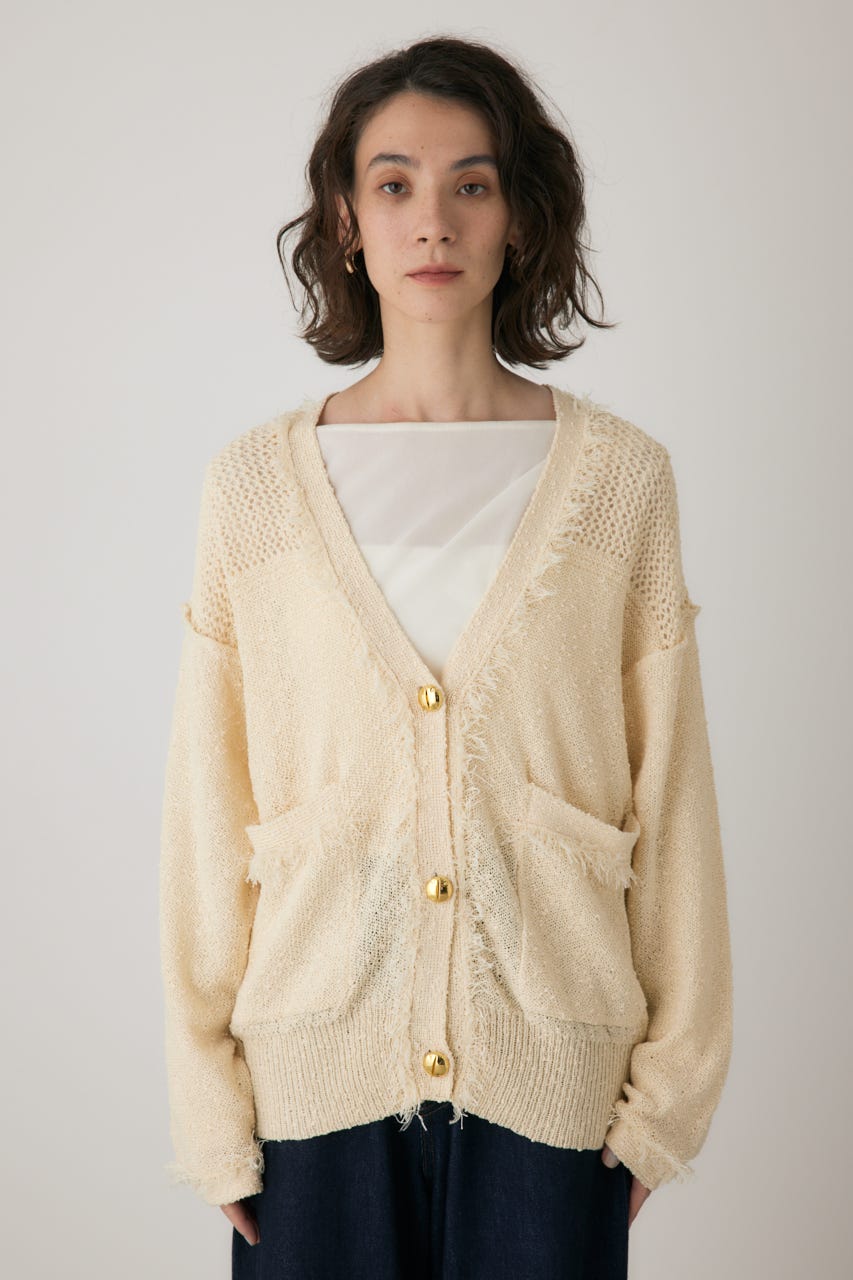 ツイードライクなスラブミックスの編み地がポイントのカーディガン。