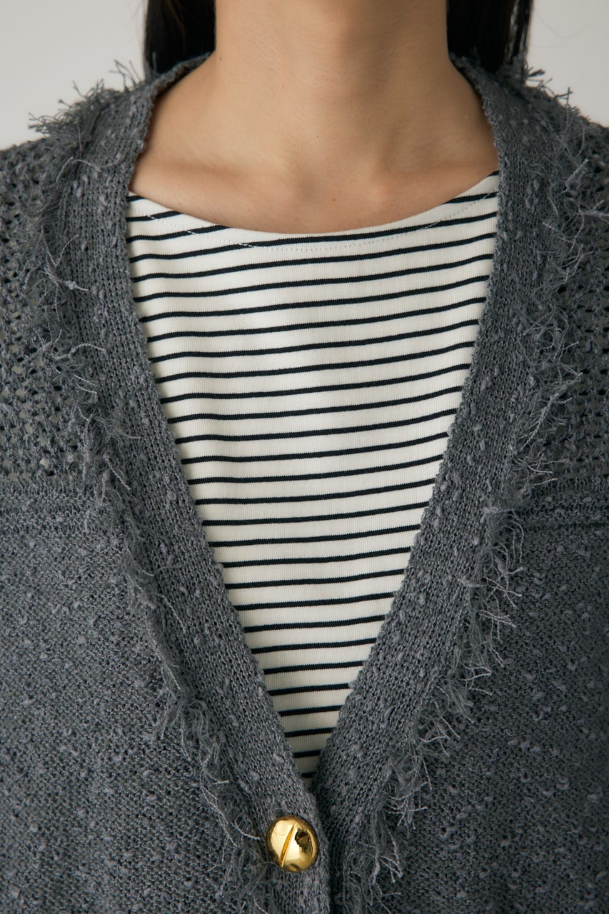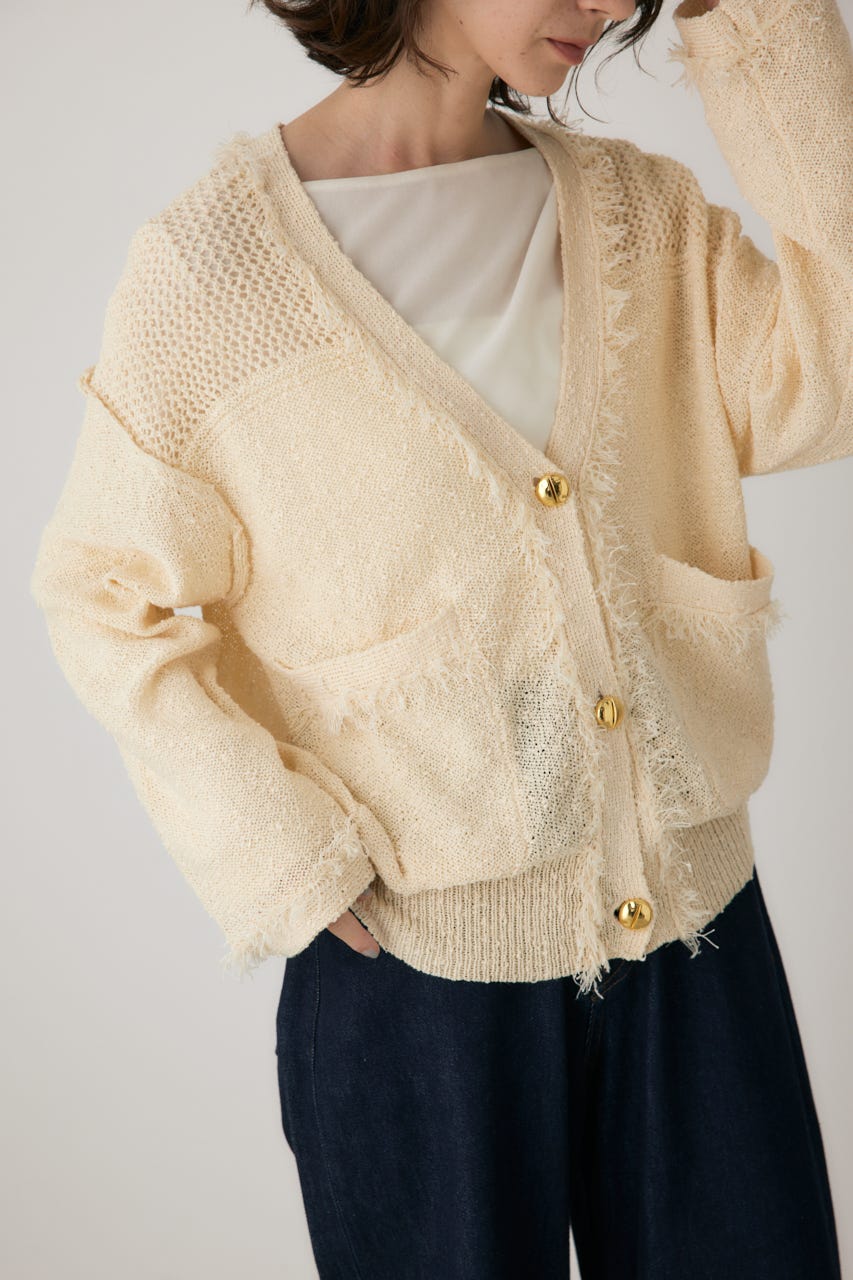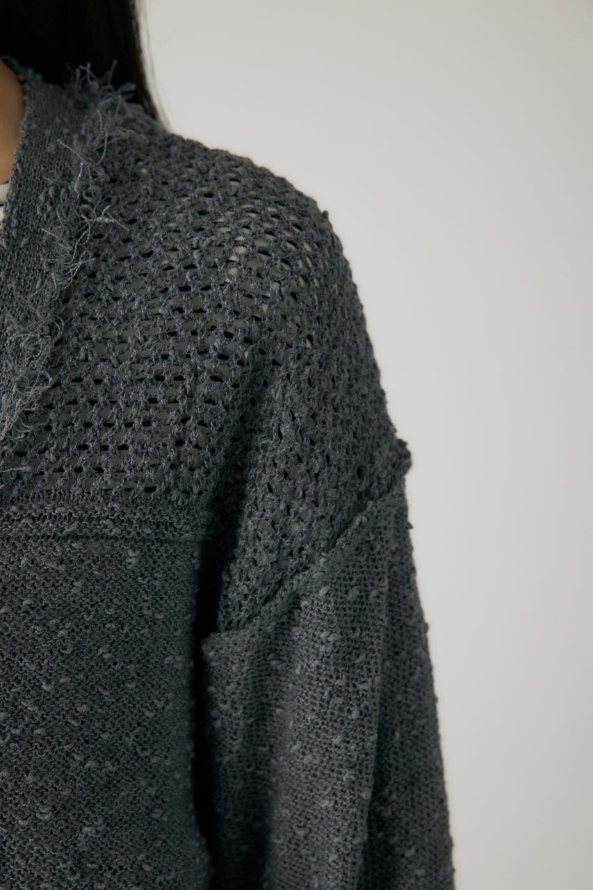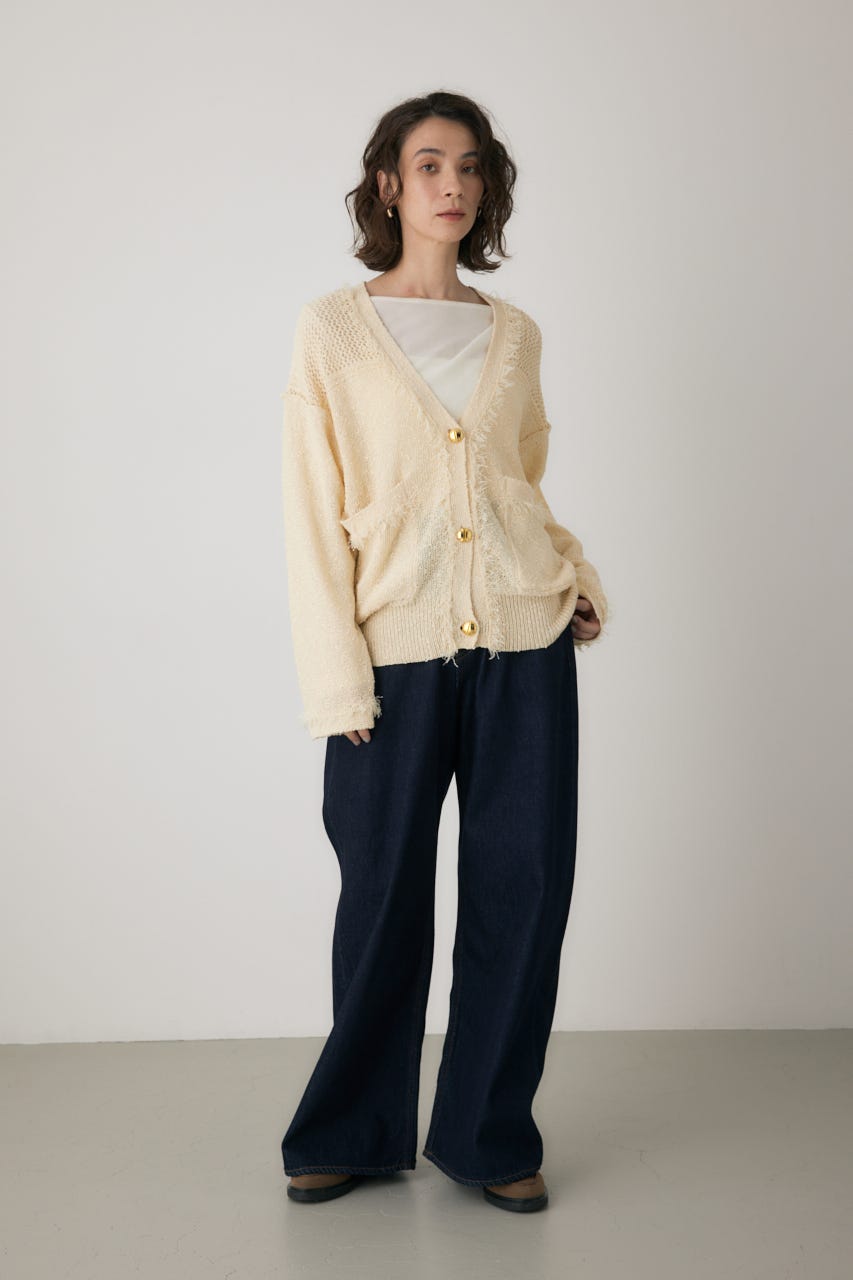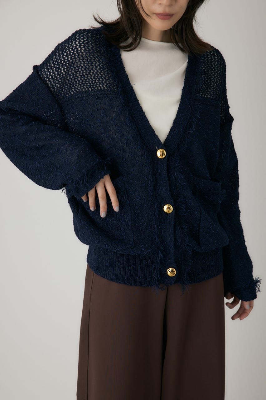 ツイードライクなスラブミックスの編み地がポイントのカーディガン。