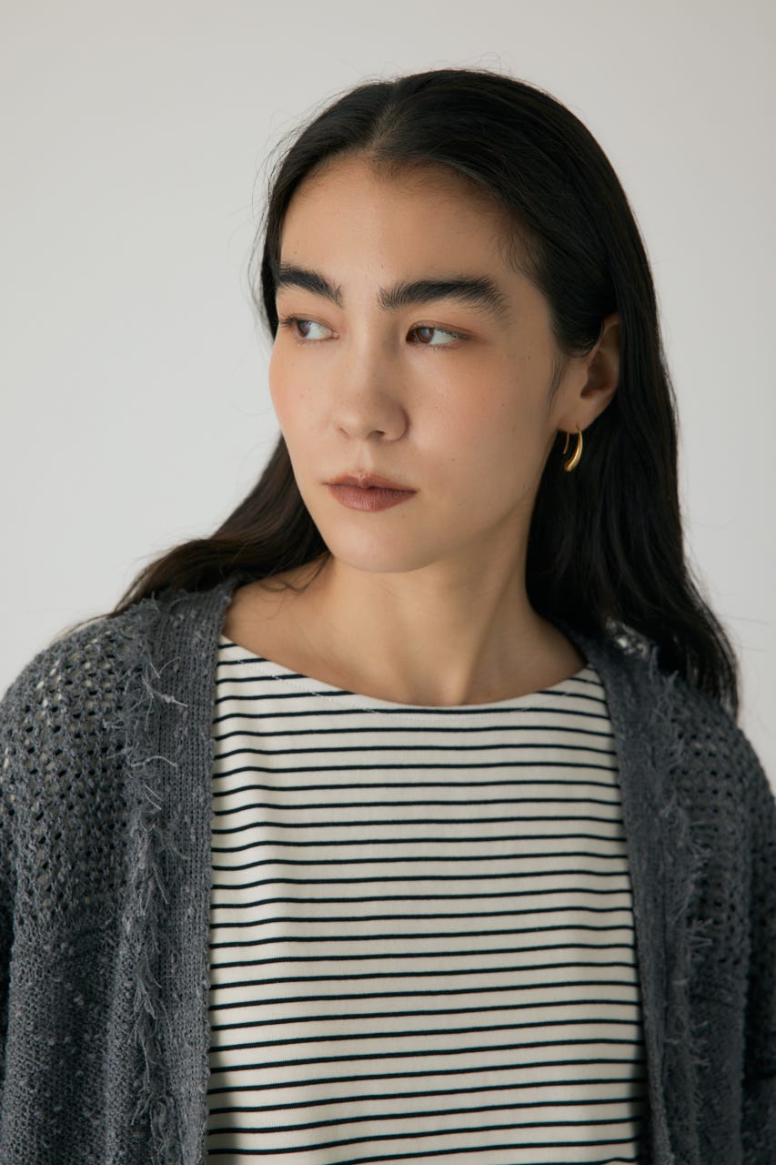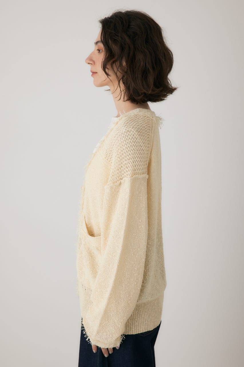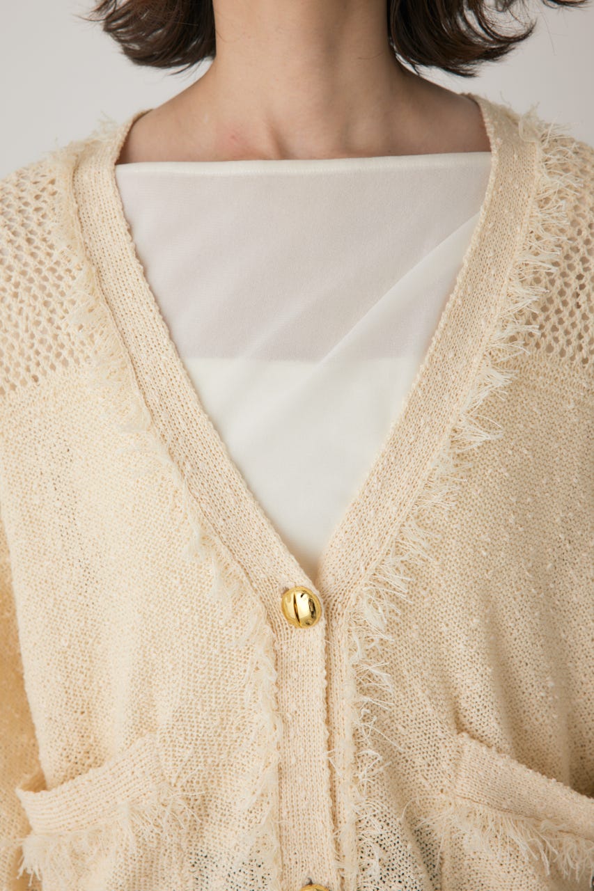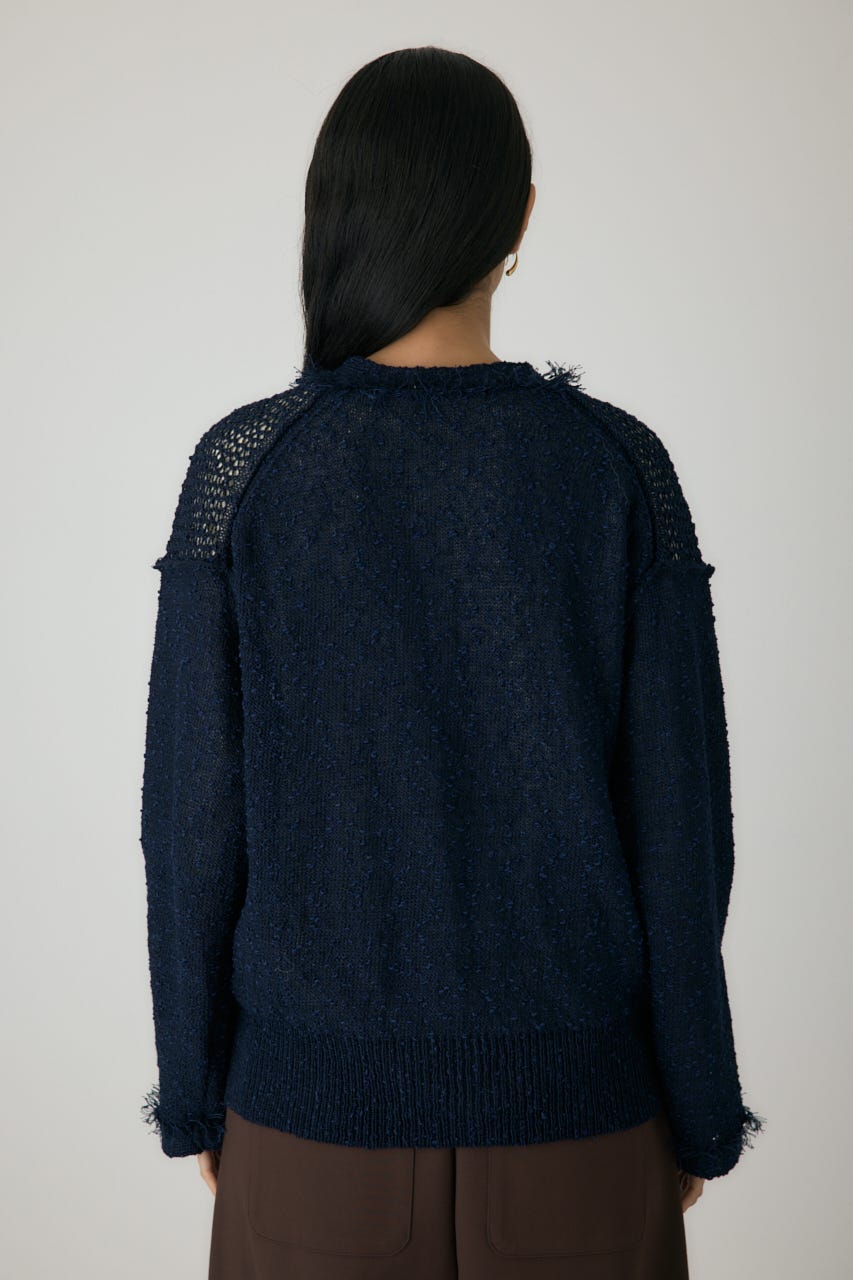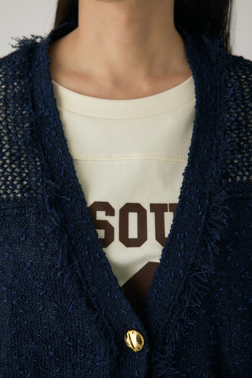 ツイードライクなスラブミックスの編み地がポイントのカーディガン。