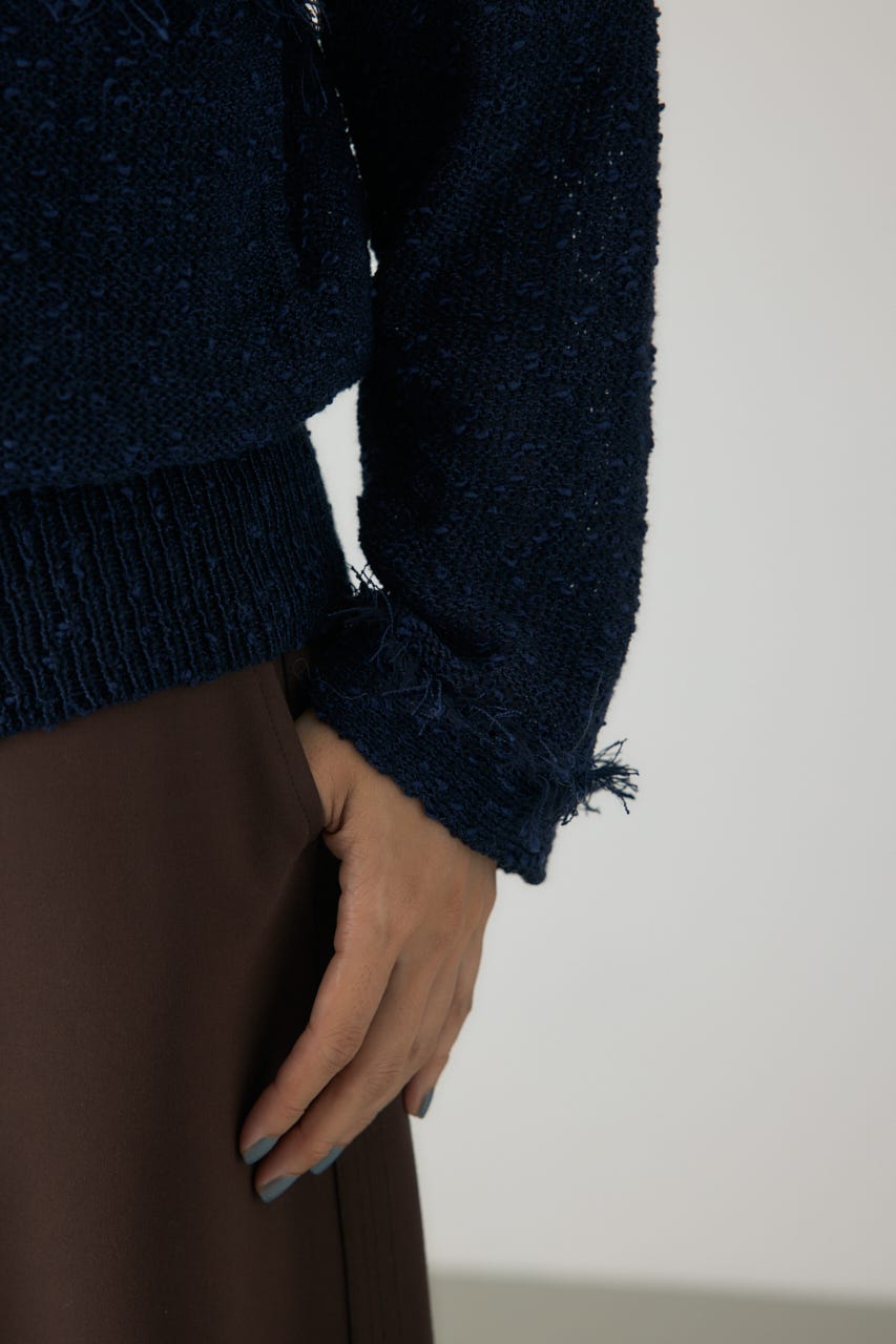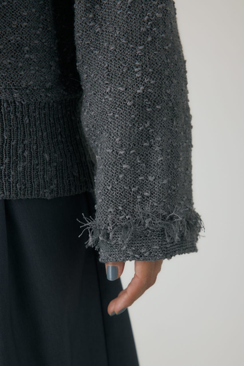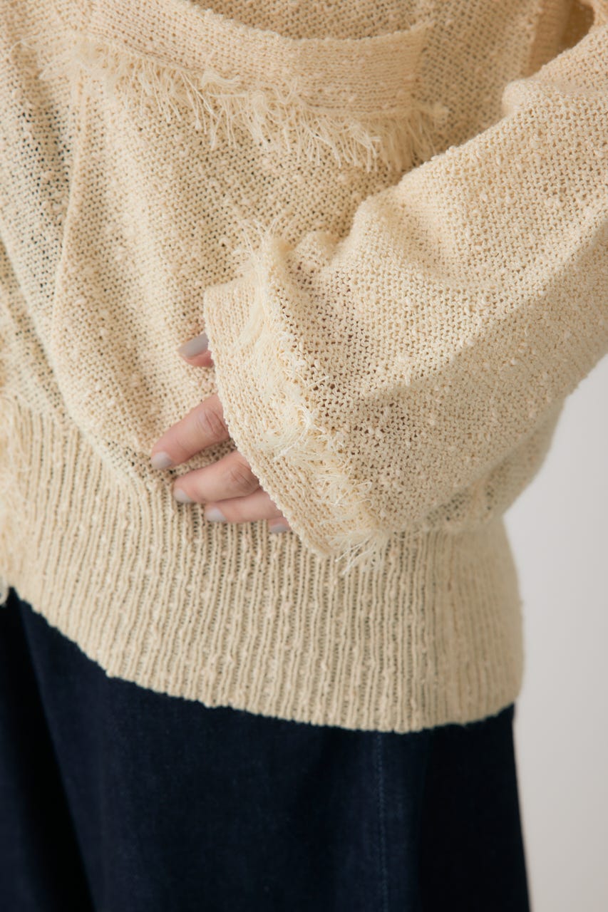 立体的なスラブ糸とストレートの糸を引き揃えて表情を作ったニットです。
