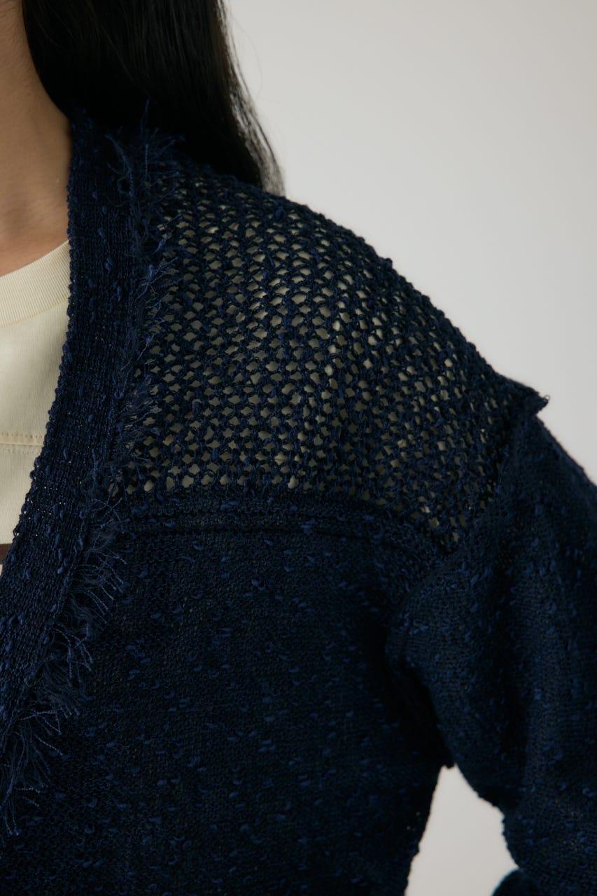 肩周りにはメッシュの編み地を入れて、軽さを出しています。