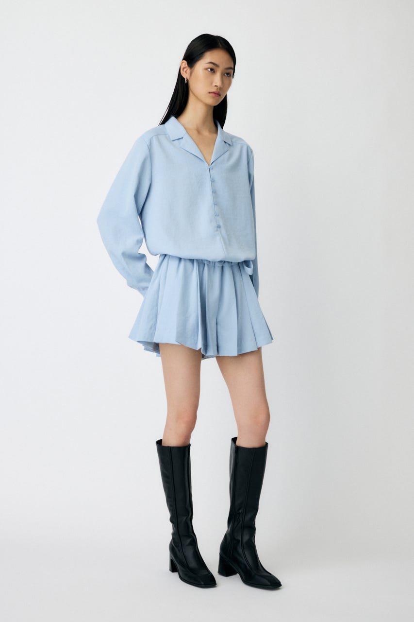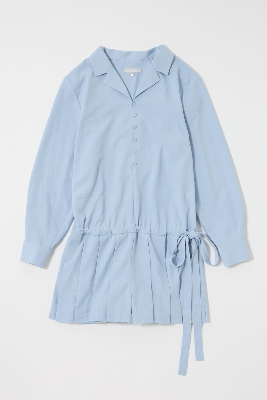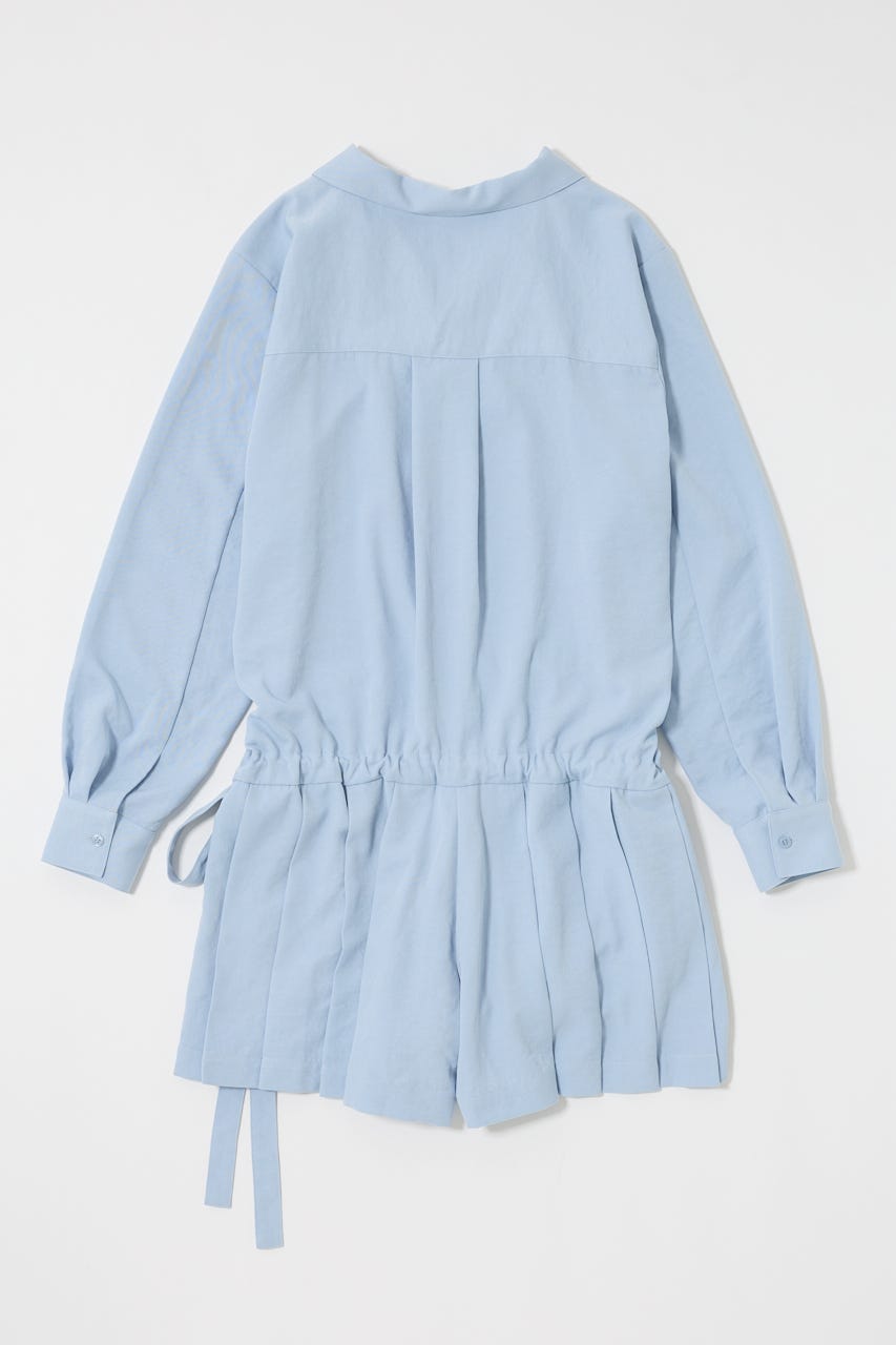 まるでミニワンピースのような印象の、プリーツジャンプスーツ。