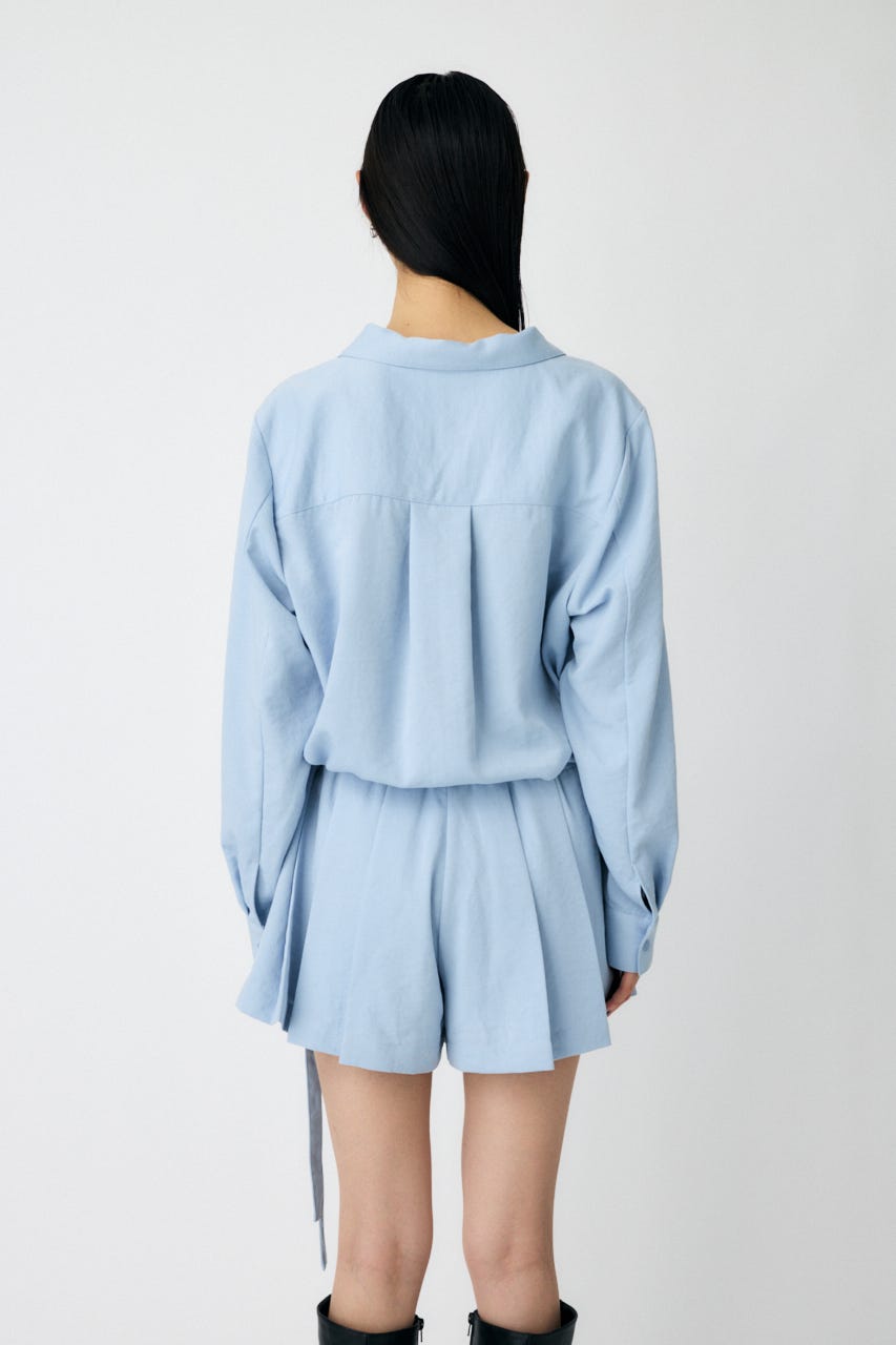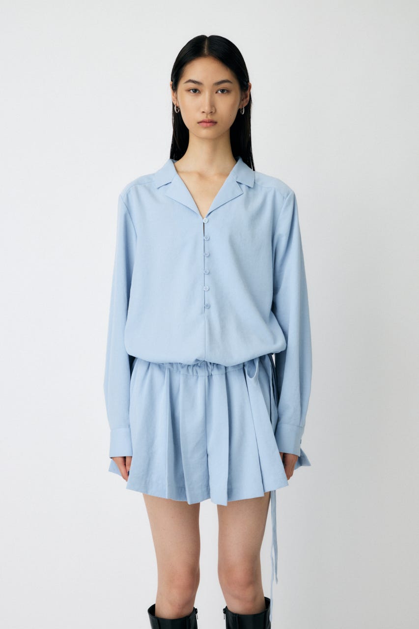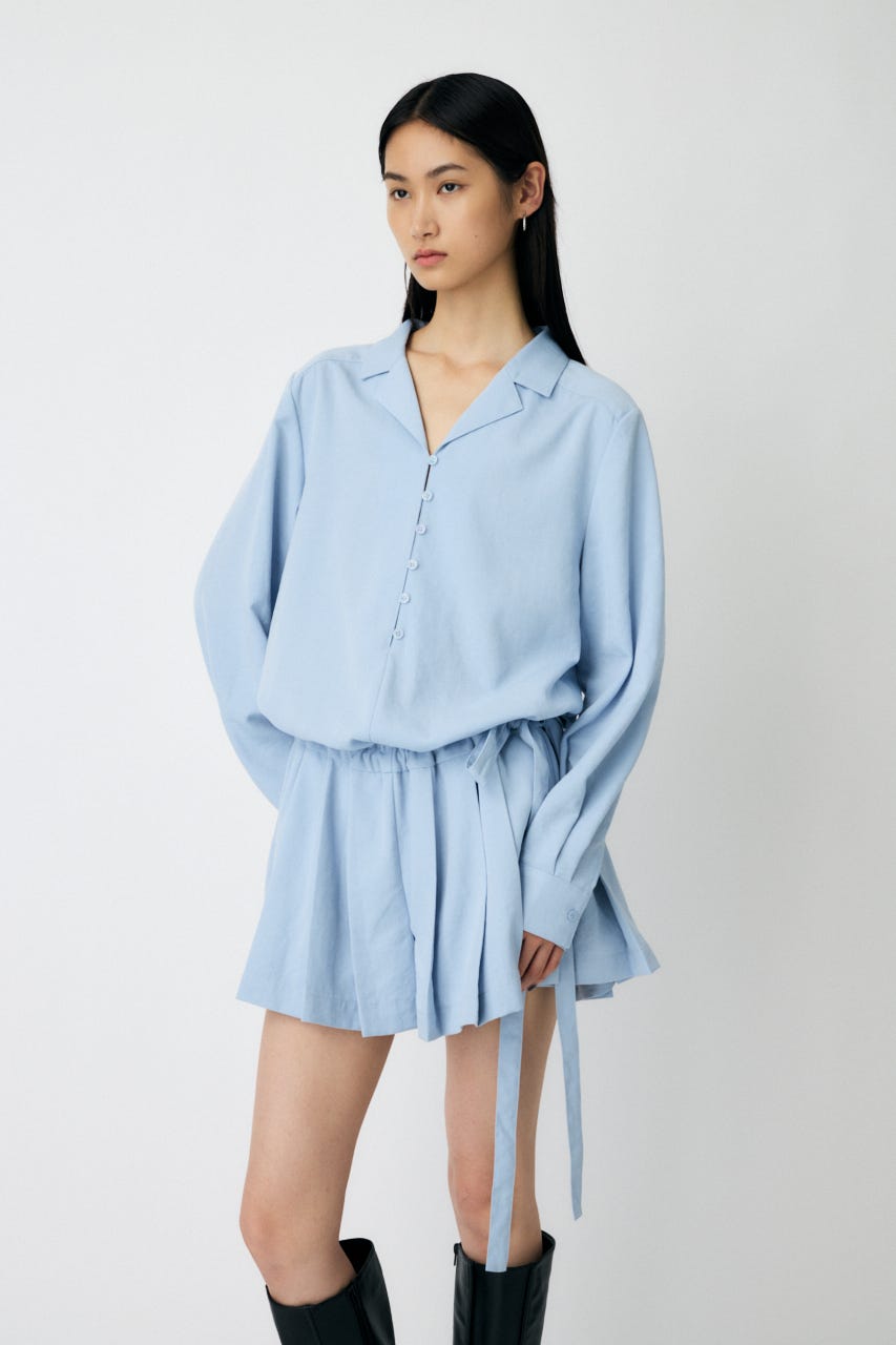 まるでミニワンピースのような印象の、プリーツジャンプスーツ。
